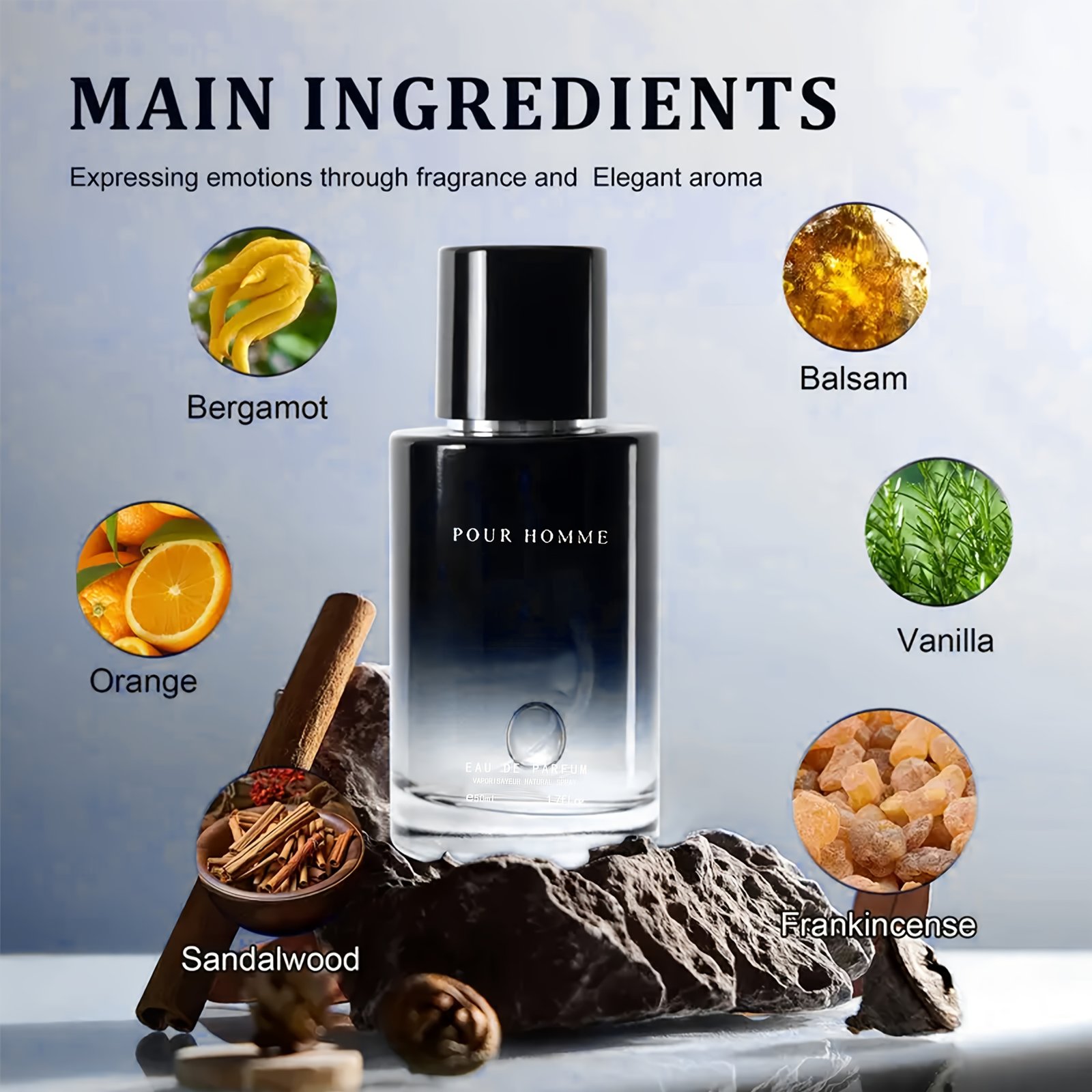 Men’s Eau De Cologne Spray – Men’s Fragrance – Long-lasting Fresh Scent with Bergamot And Sage, Elegant Gradient Minimalist Bottle, Perfect for Daily Wear – Ideal Holiday Gift In Portable Travel Size – 1.69fl.oz/ 50m