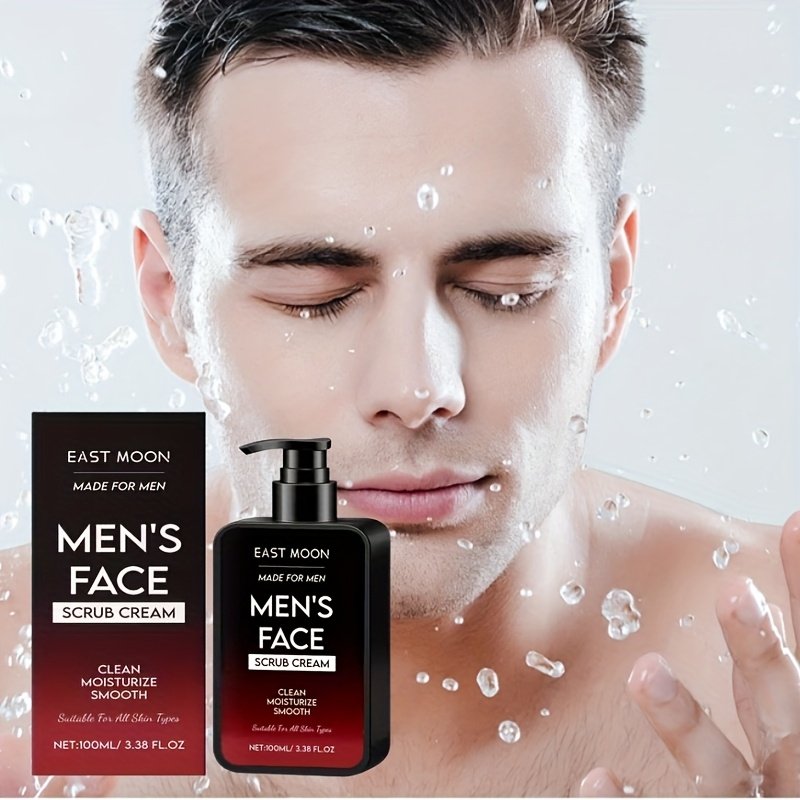 Men’s Facial Cleansing Scrub – Exfoliating & Moisturizing Face Wash with Rich Lather, Sensitive Beige, No Residue, Summer Scented (Formaldehyde-Free) – Ideal Men’s Grooming Gift for Sensitive/Oily/Combination Beige – Daily Use Soap