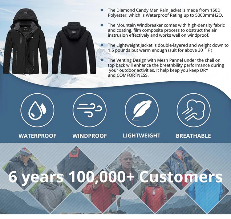 WATER RESISTANT: The men's lightweight jacket is made of 5000mm waterproof fabric, and all the zipper pockets are waterproof-designed, which is suitable for rainy or misty weather, keep you dry and comfortable throughout the day.