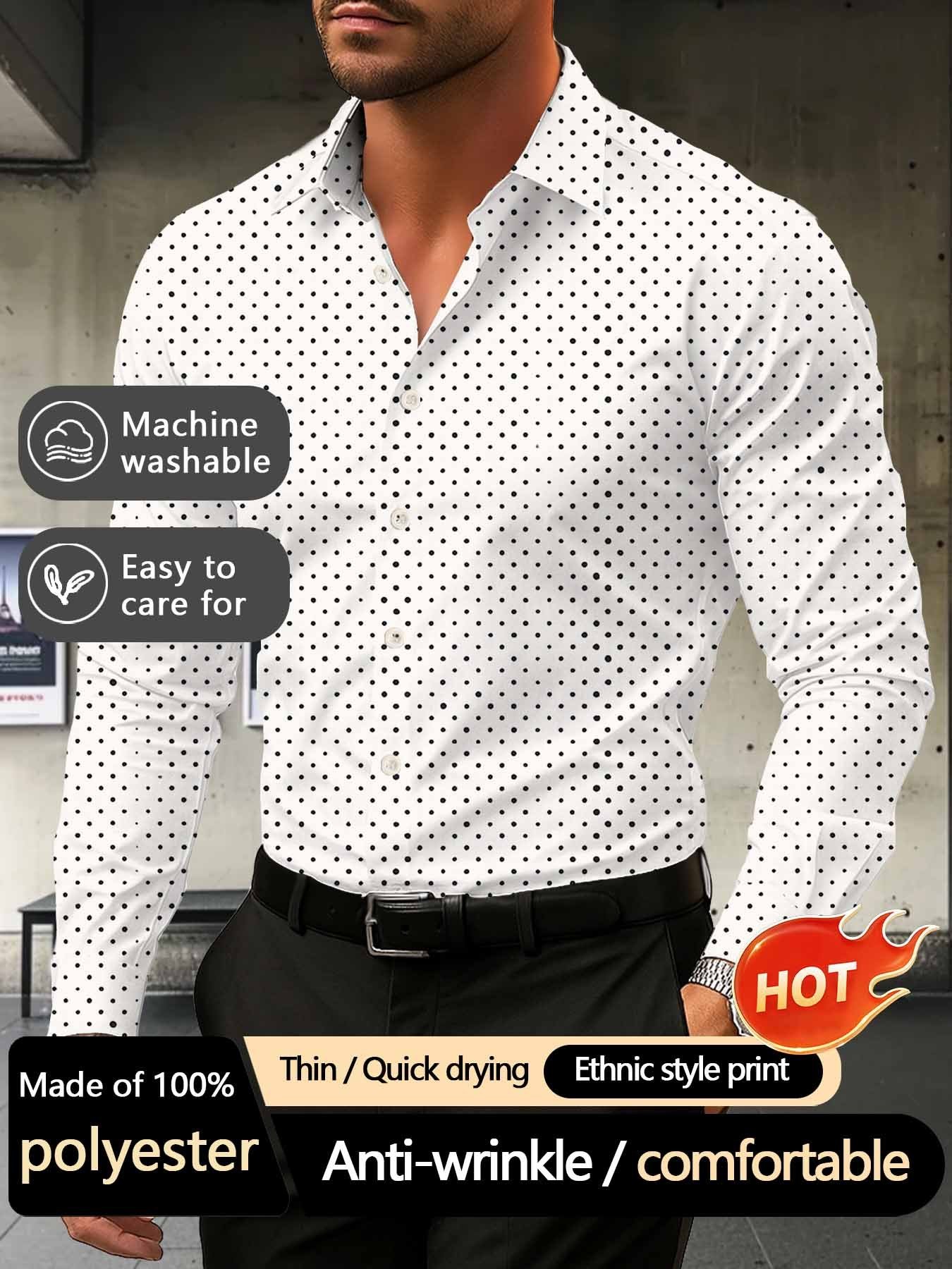 Men’s longsleeve halftone shirt Men’s shirt with digital print vintage and minimalist style turndown collar long sleeves slightly stretchy casual and comfortable.