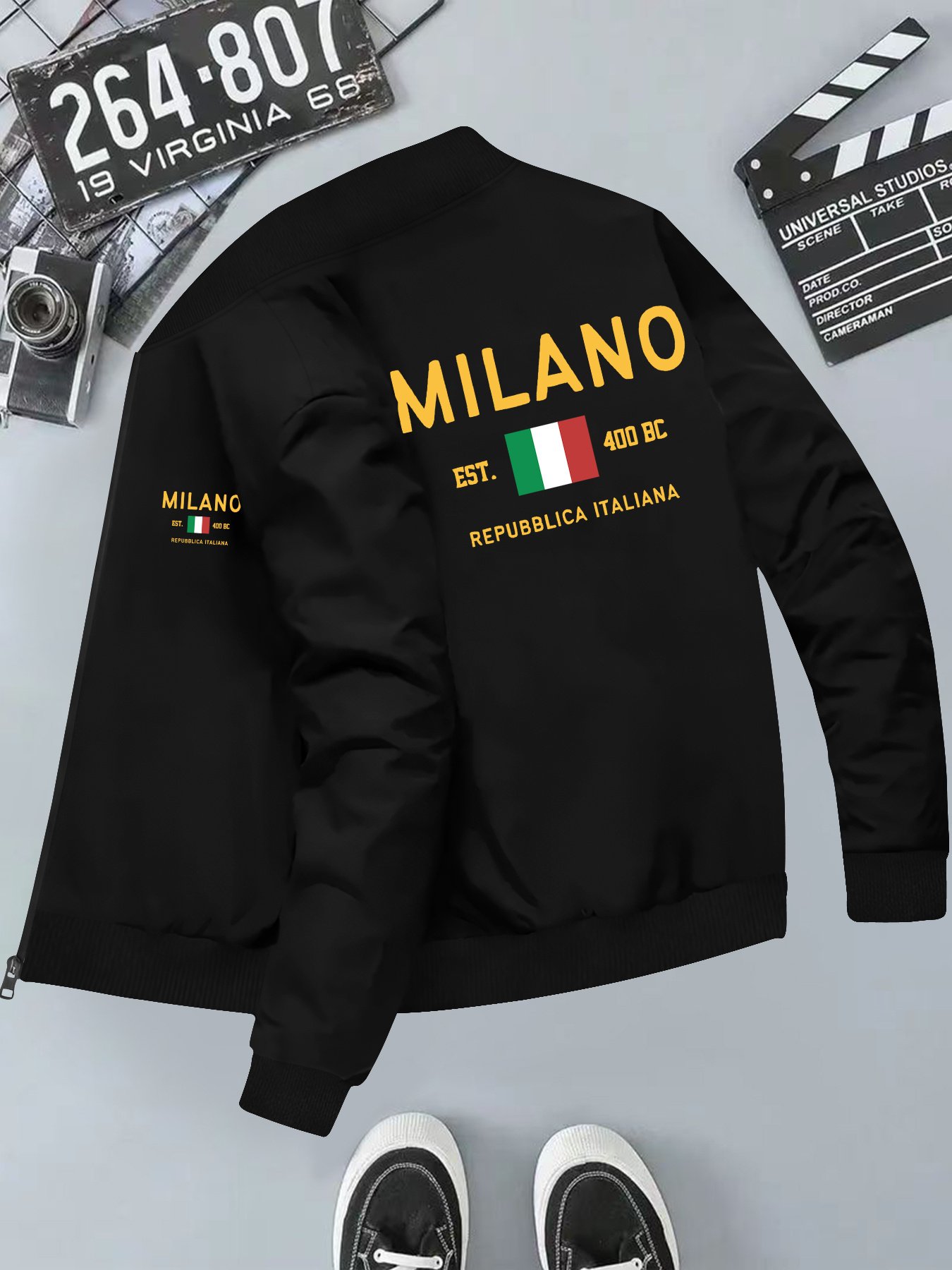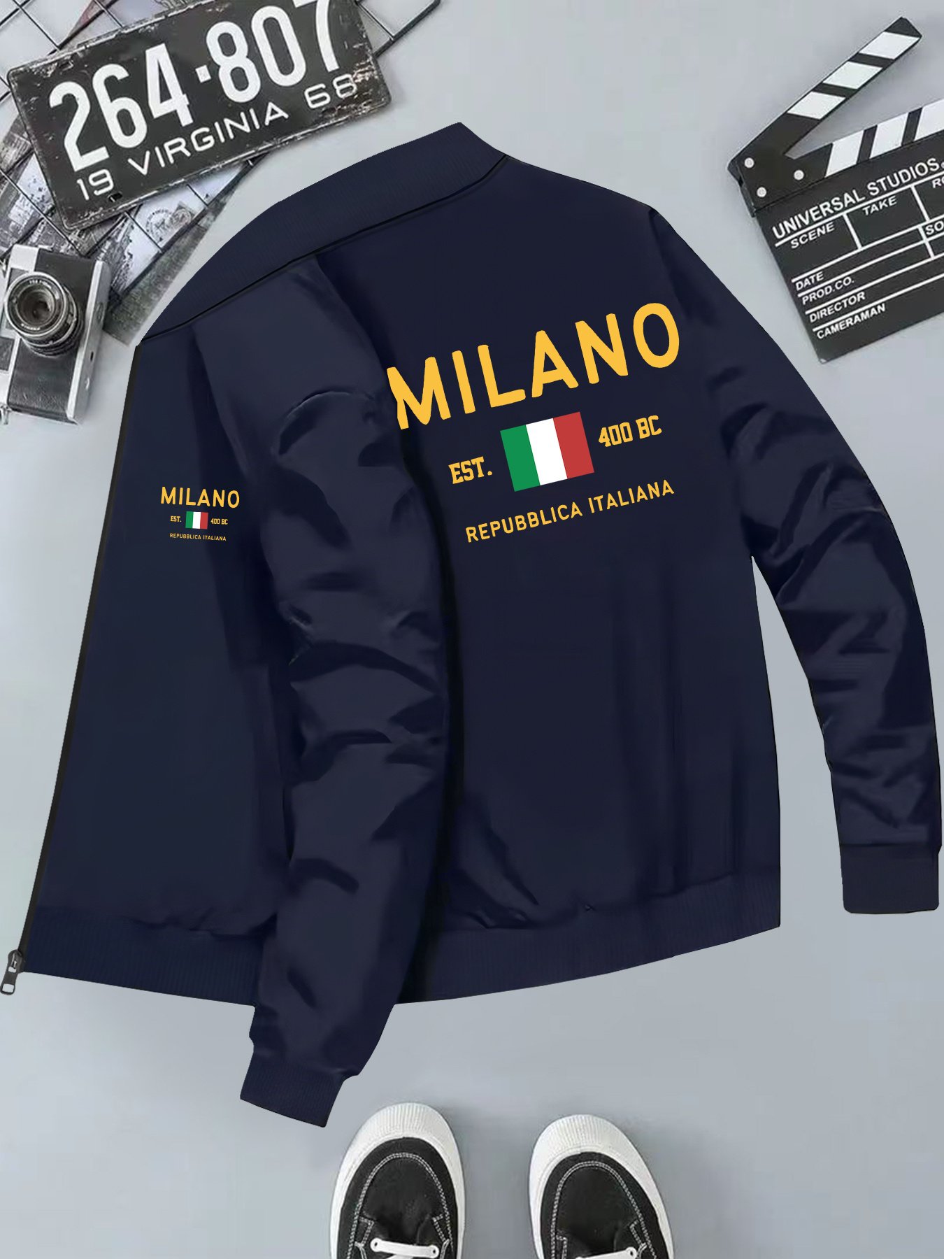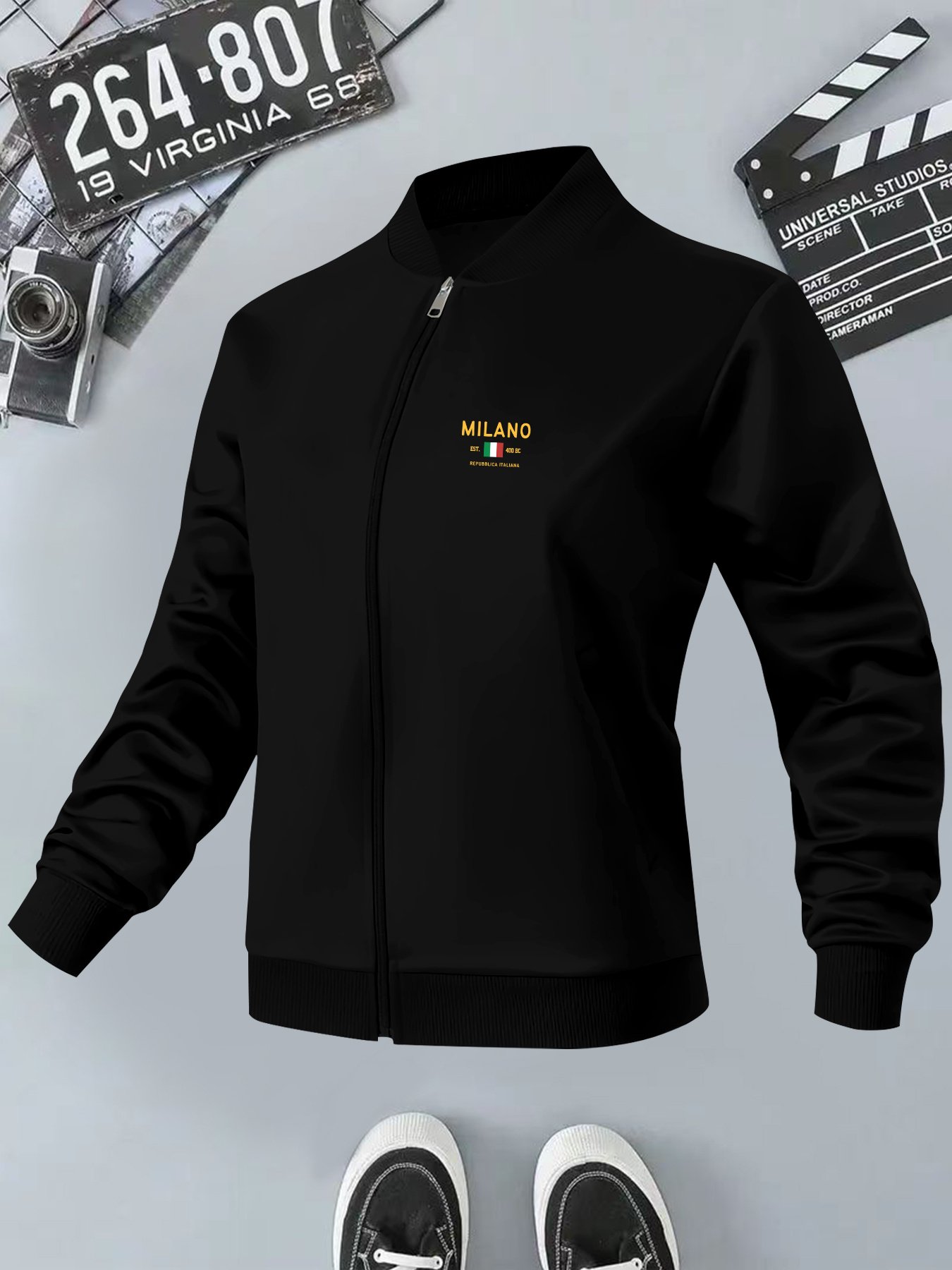 Men’S Milano REPUBBLICAITALIANA Print Casual Jacket | Stand Collar, Slight Stretch Fabric, Random Print, Fall/Winter Season, Zipper Closure, Pocket Details, Skinny Fit