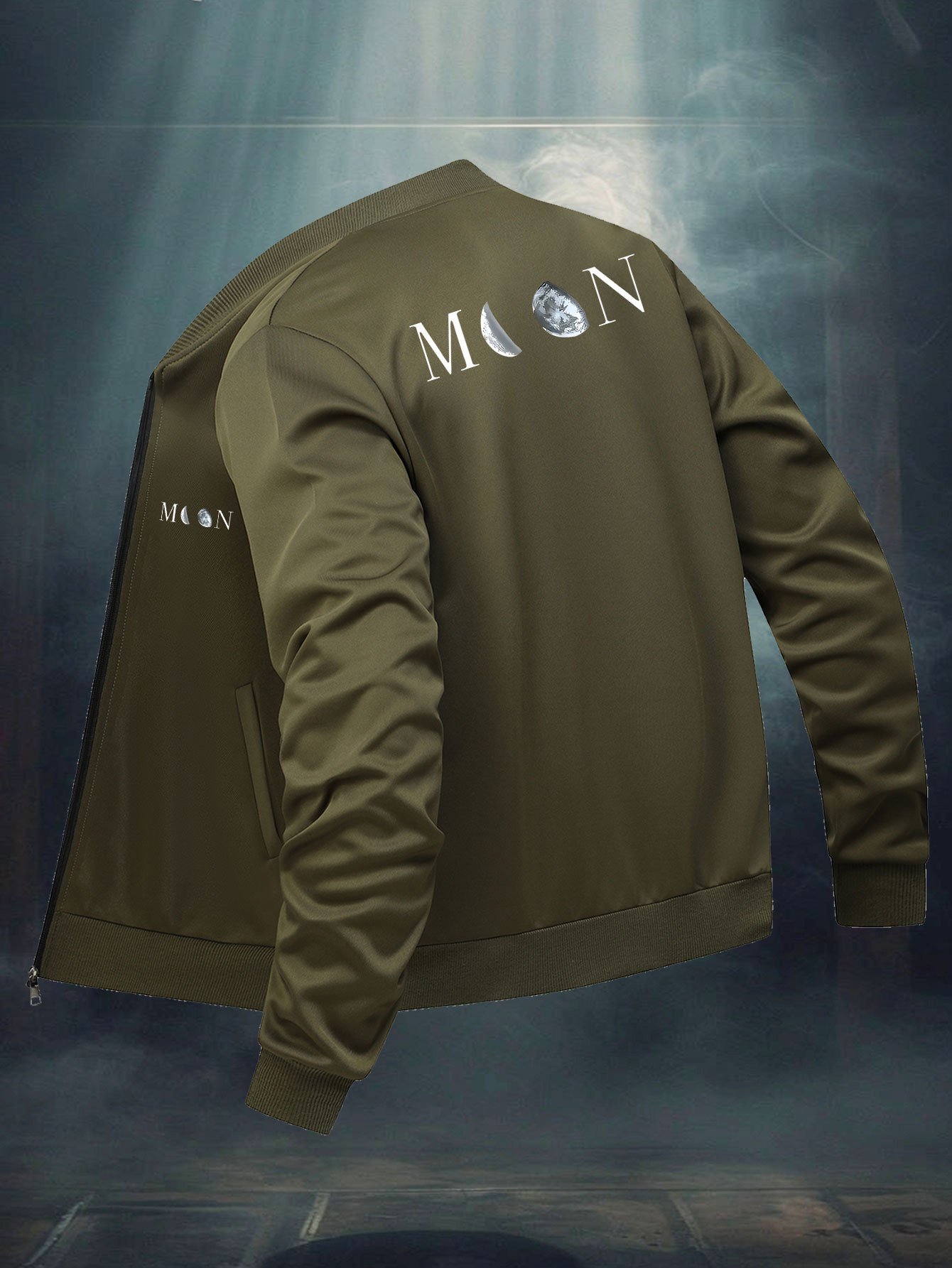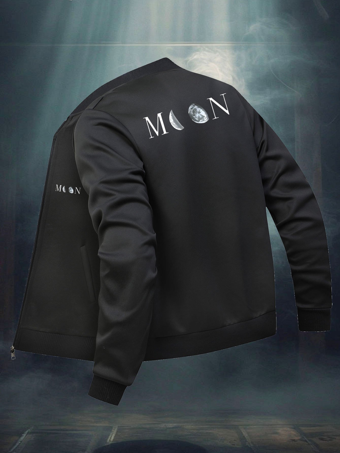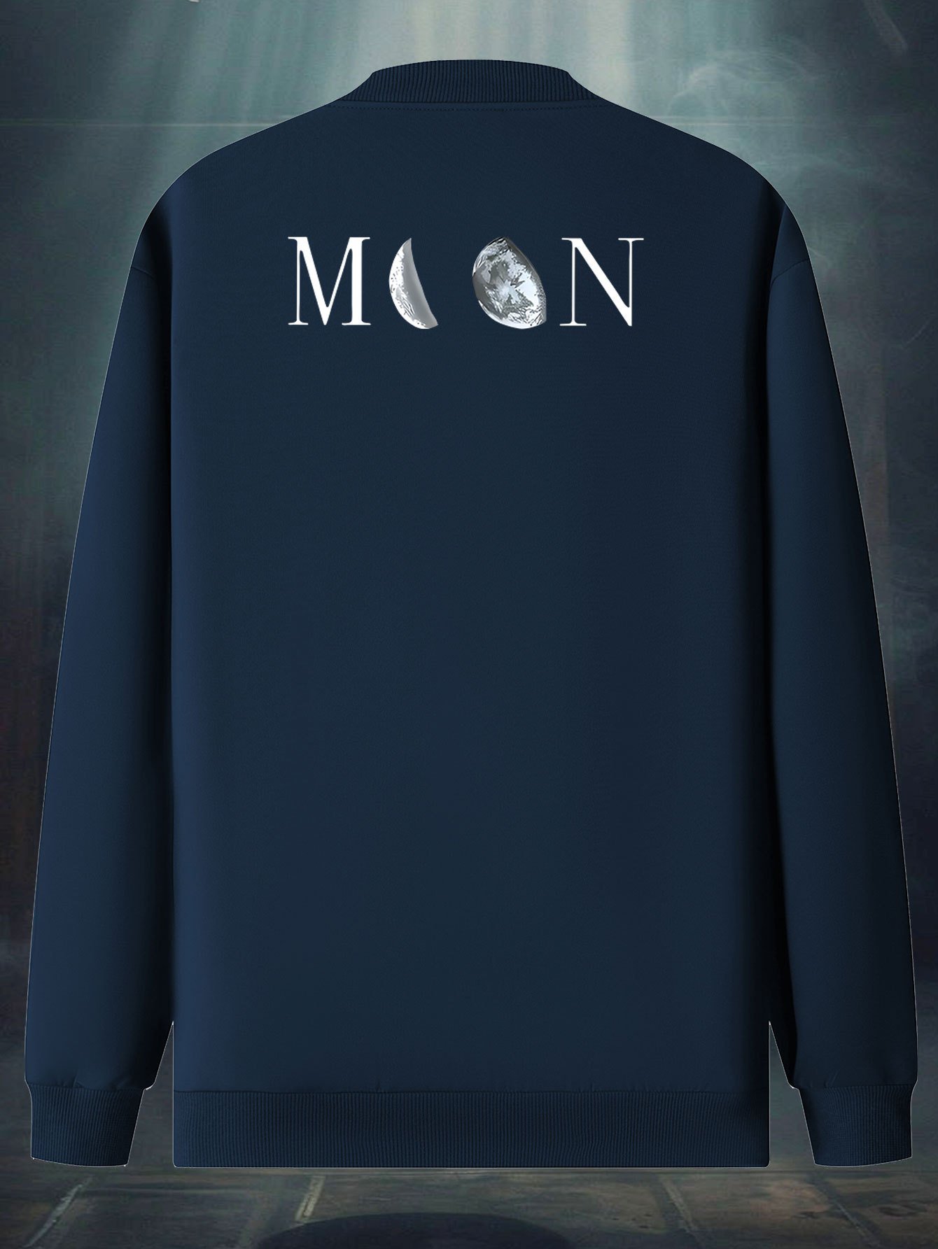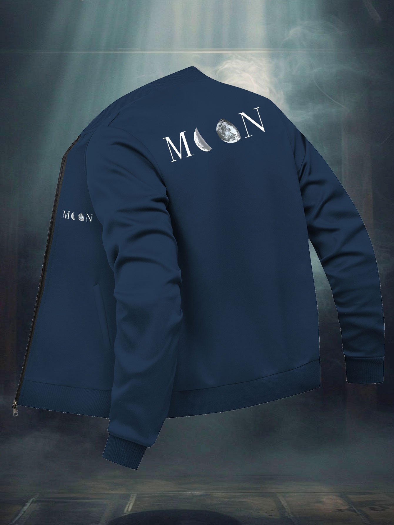 Men’S Navy Full-Zip Jacket with Moon & Sun Graphic Back Print – Full-Zip Closure, Stand Collar, Zippered Pockets – All-Season Casual & Formal Outerwear, Stylish Layering Piece for Men, Jackets For Men Winter, Mens Jackets And Coats, Jacket For Men