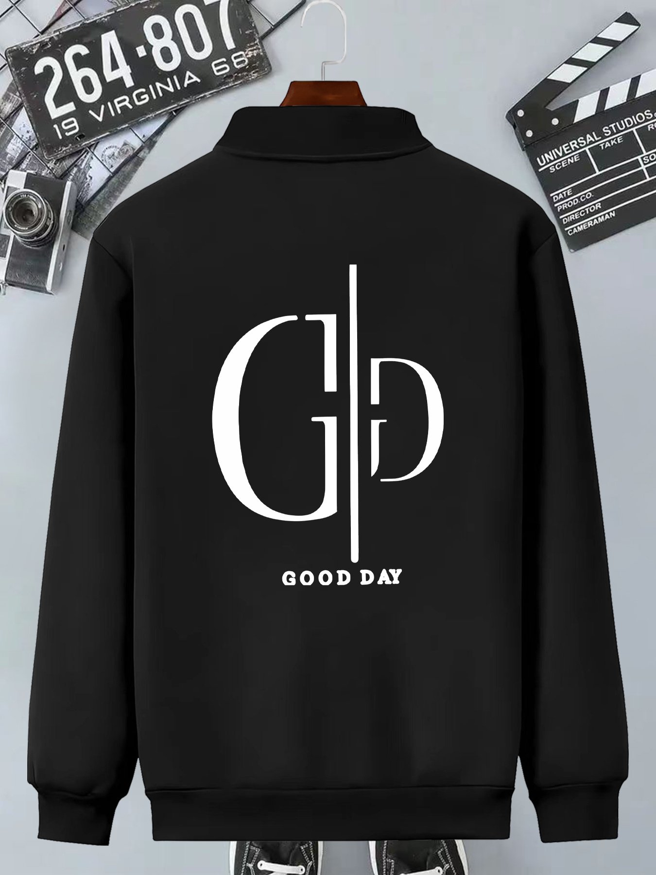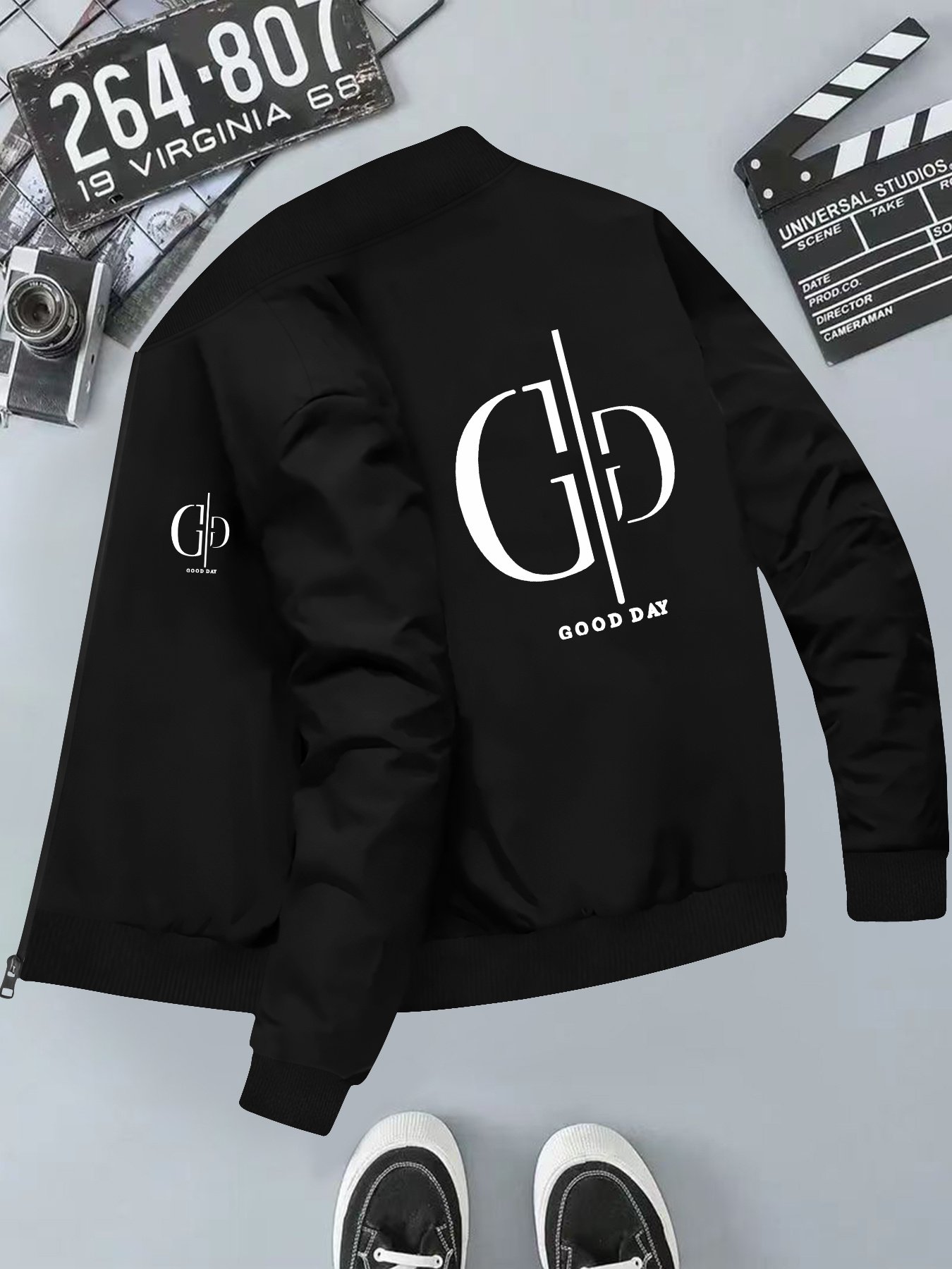 Men’s Round Neck Jacket GD with Beautiful Day Logo Pattern, Casual Round Neck Jacket