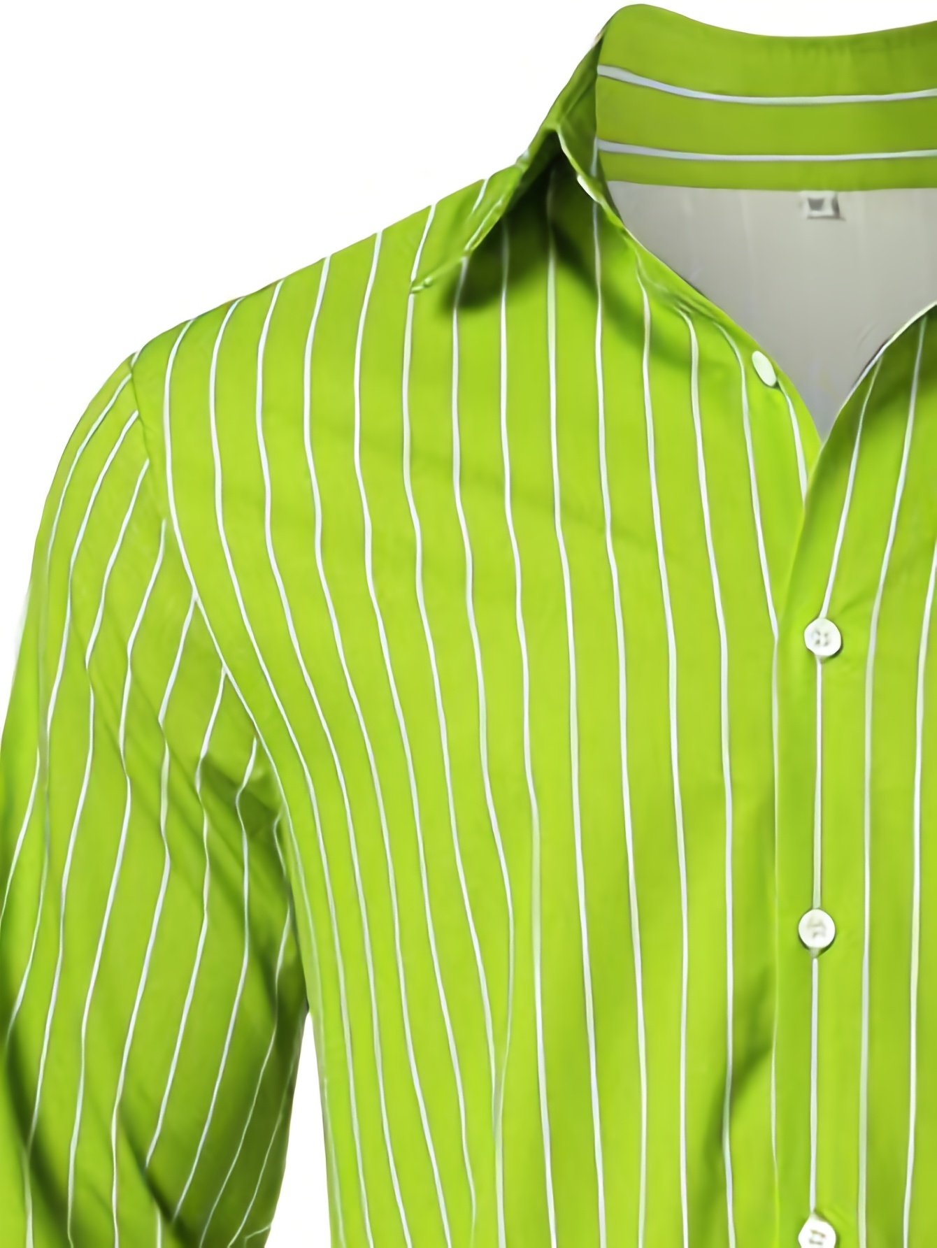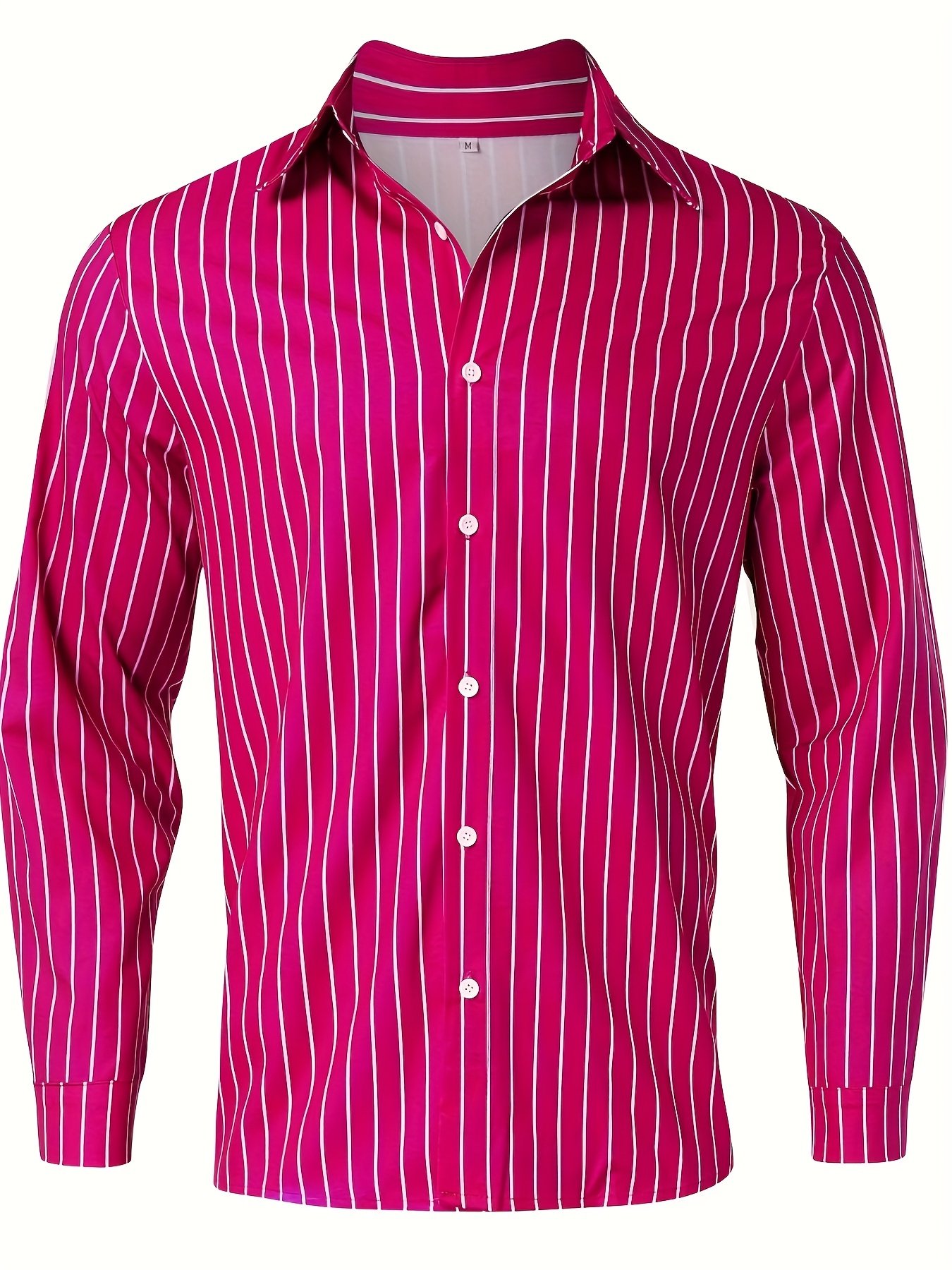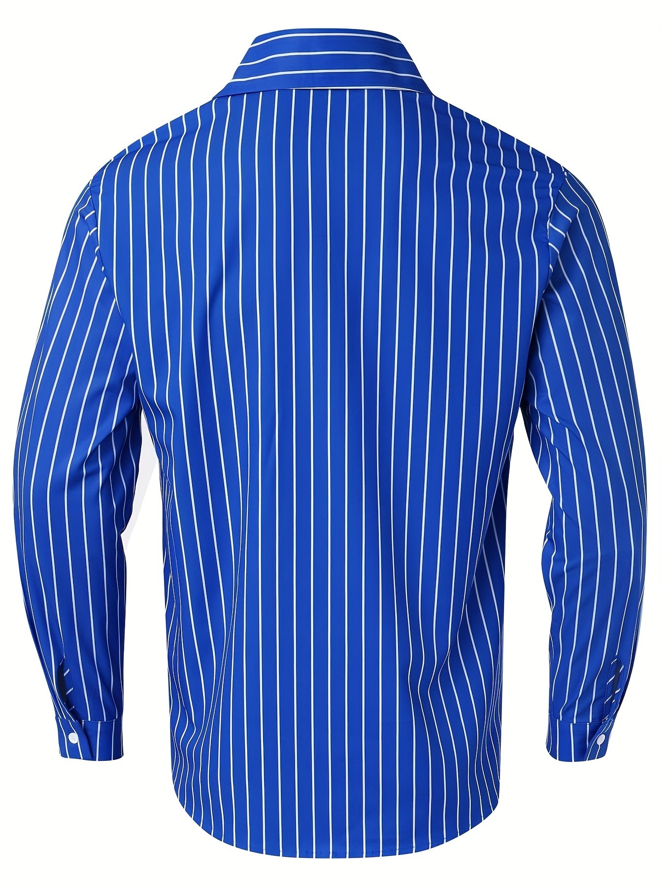 Men’s Shirt Classic Fit Long Sleeve Button Solid Color Stripe Basic Men’s Dress Shirt