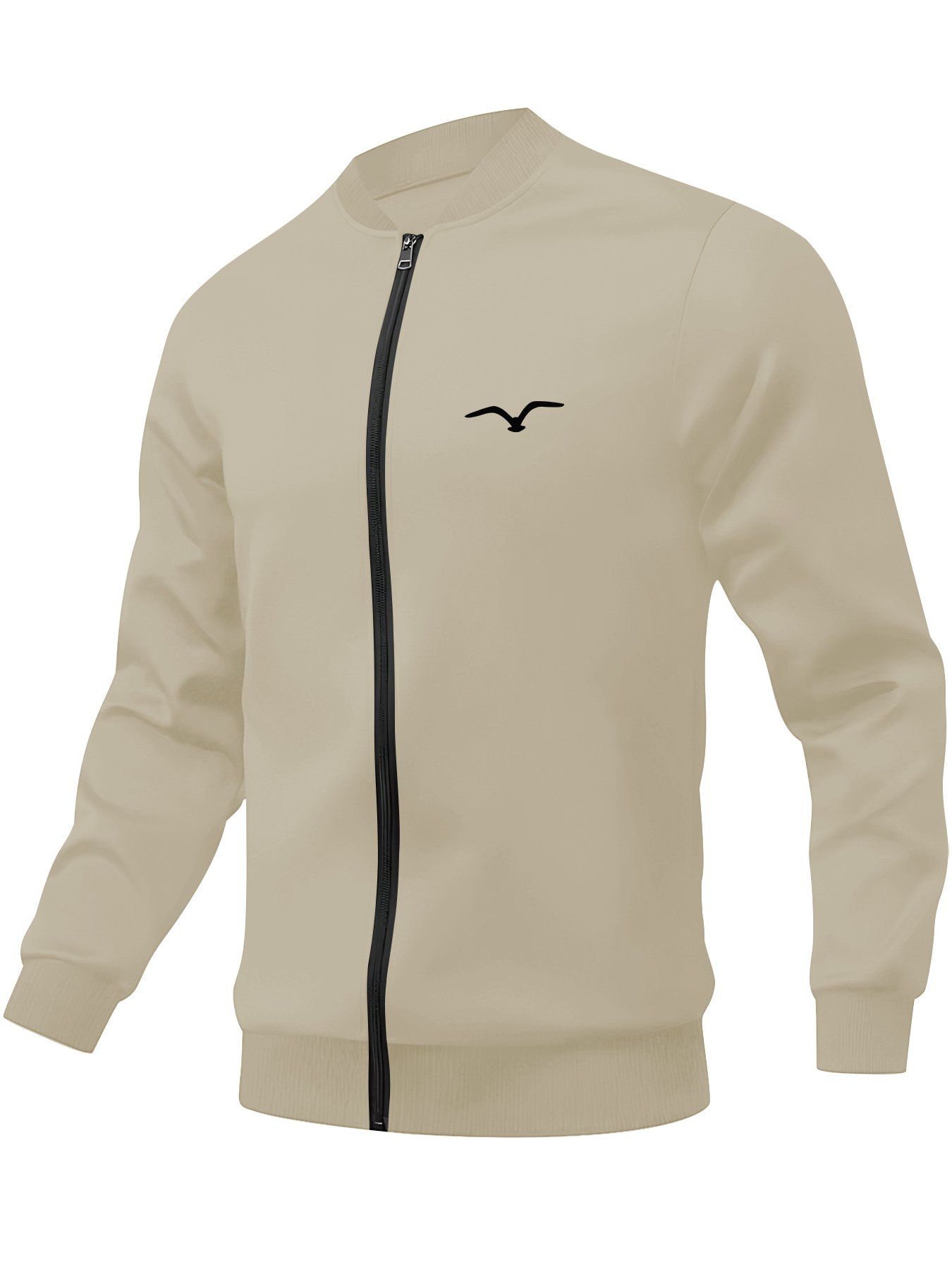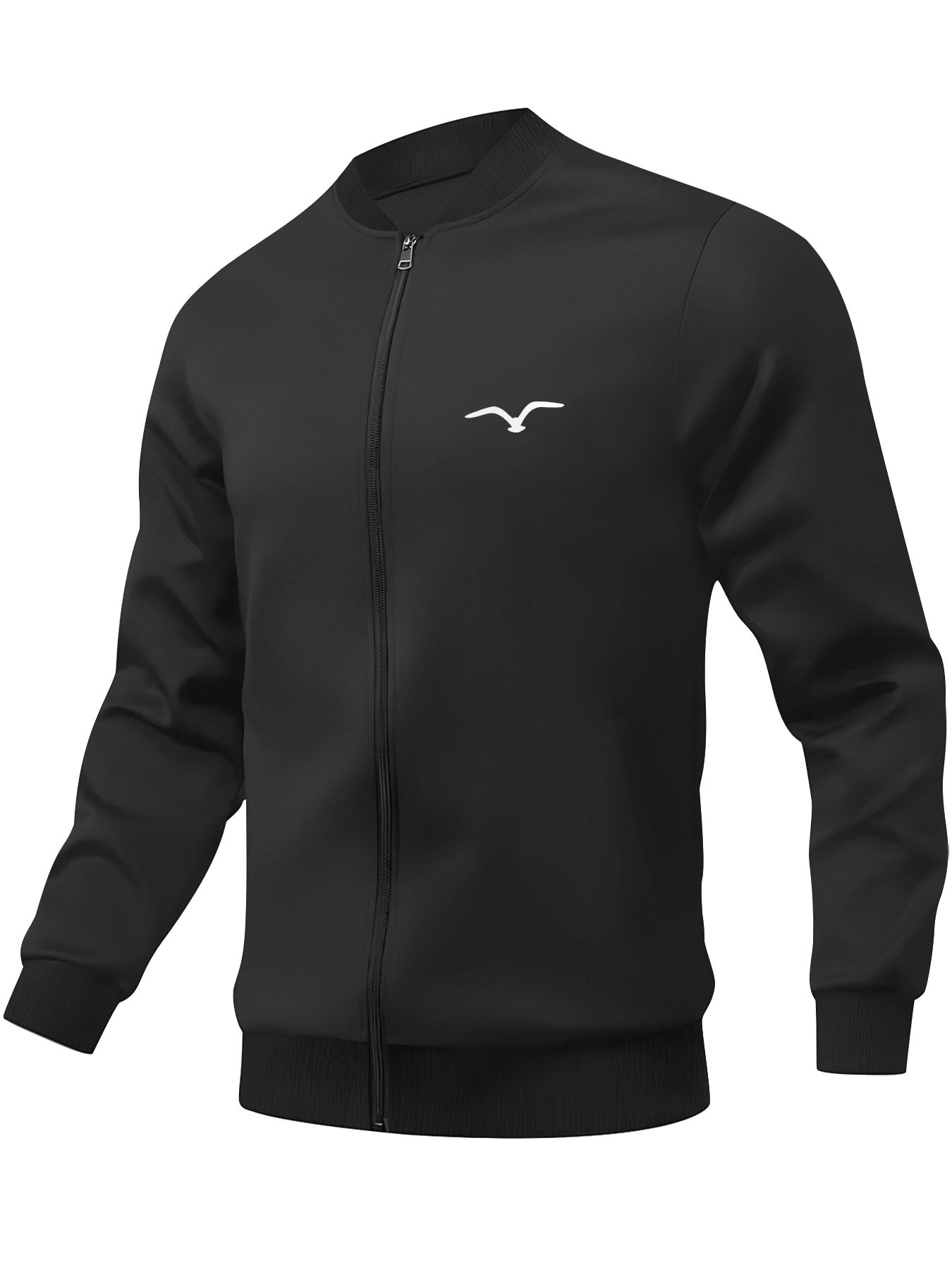 Men’s Slim-Fit Bird Print Bomber Jacket – Stand Collar Zipper Closure Winter Coat with Bird Pattern (Pigeon/Titel/Finch), Machine Washable /Elastane, Casual Outerwear for Fall & Winter, Pockets (No Bulk) – Coat for Young
