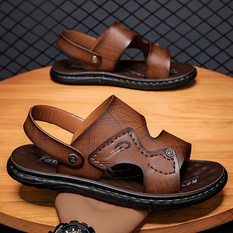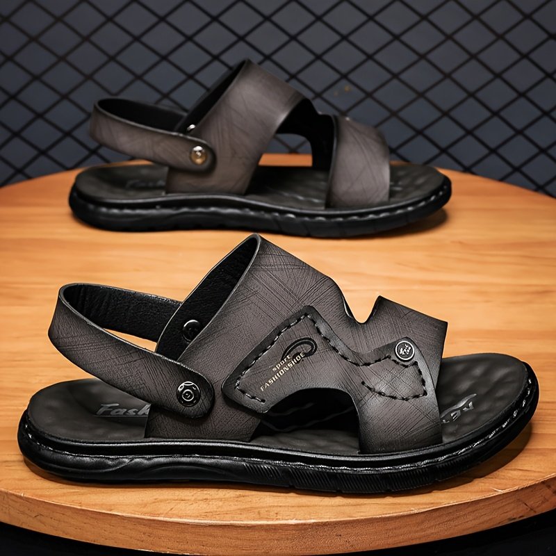 Men’s Stitched Slippers, Casual Non-Slip Slippers, Indoor/Outdoor Walking Open-Toe Hollow-Out Shoes, Spring/Summer/All-Season Beach Sandals