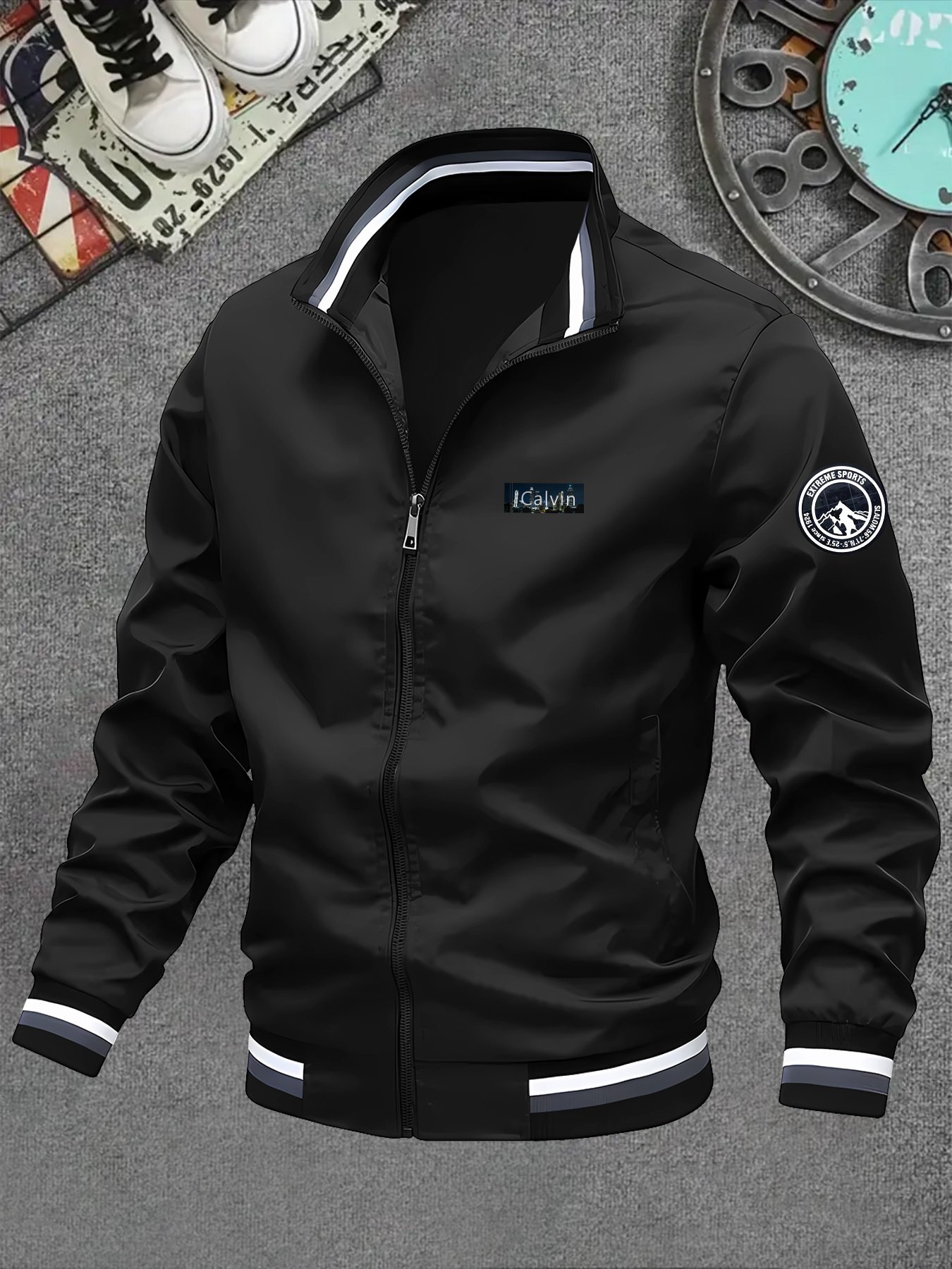 Men’S Stylish Stand-Collar Zip Jacket with Pockets, Featuring a Popular Print Design in Europe And America, with Prints on The Left Chest And Sleeves, a Versatile Fashion Outerwear Jacket for Autumn And Winter.