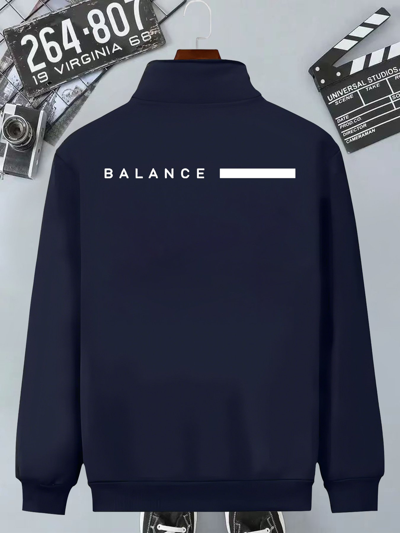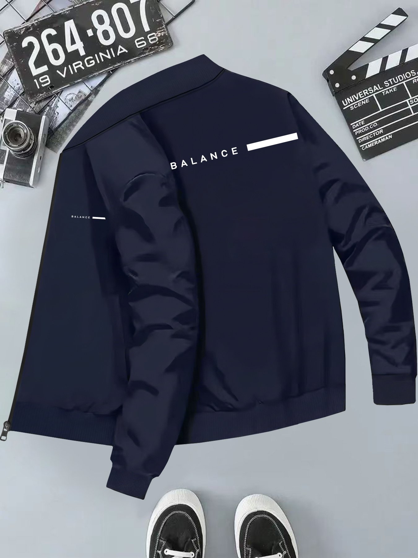 Men’s Trendy Jacket BALANCE Font Print, Youth Casual Sports Jacket for Men
