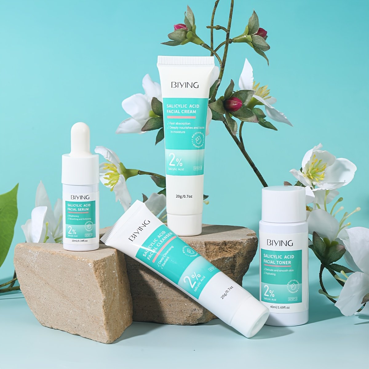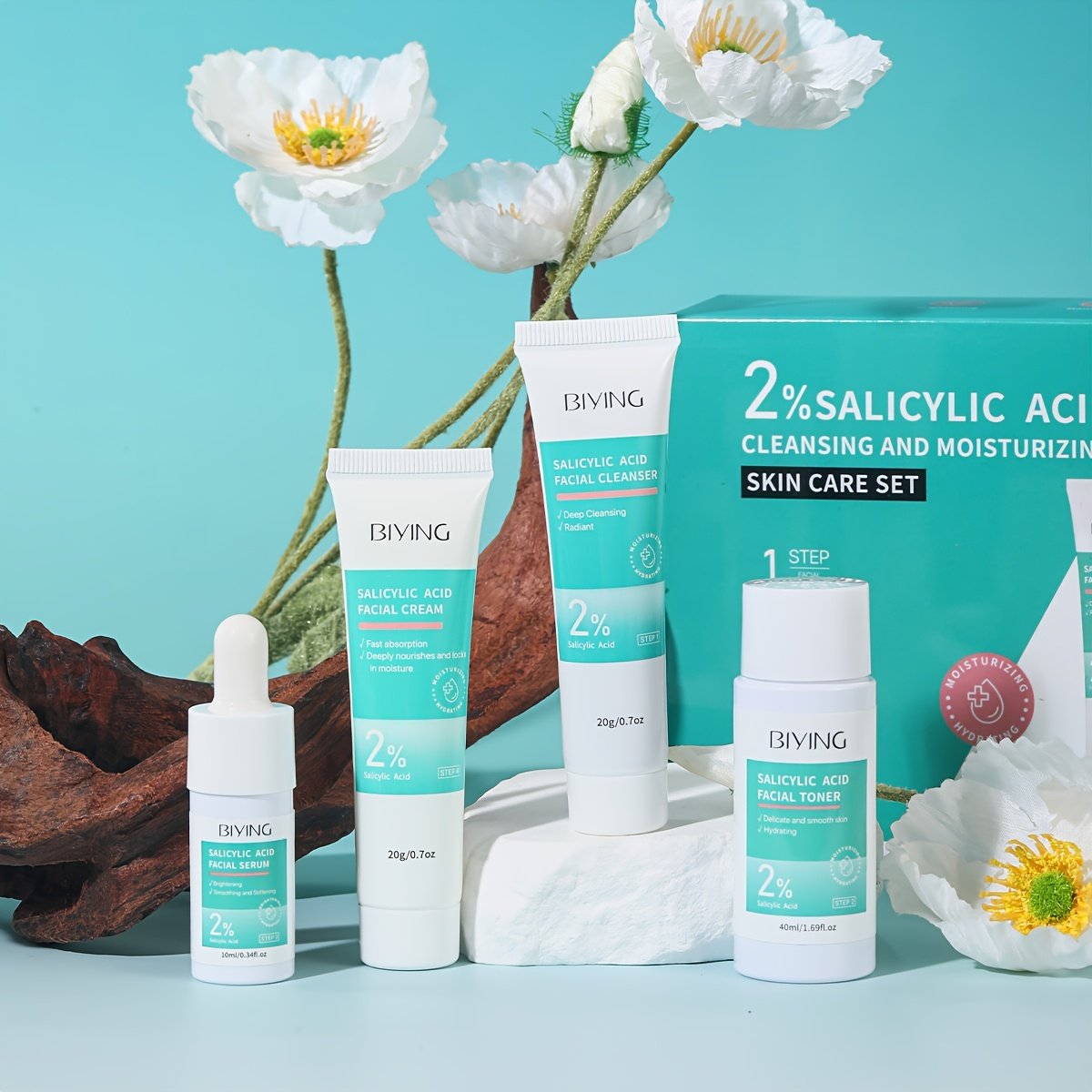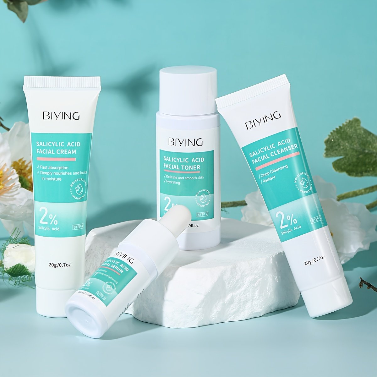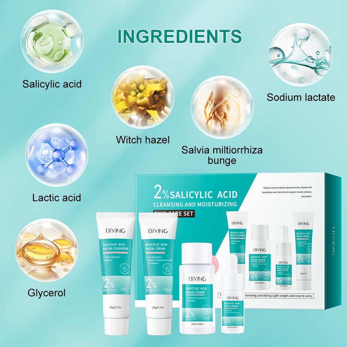 MOOYAM 4-in-1 Salicylic Acid Skincare Travel Gift Set | Includes Toner, Lotion, Serum, and Face Cream, Lightweight and Portable, Moisturizing with Glycerin, Suitable for All Skin Types