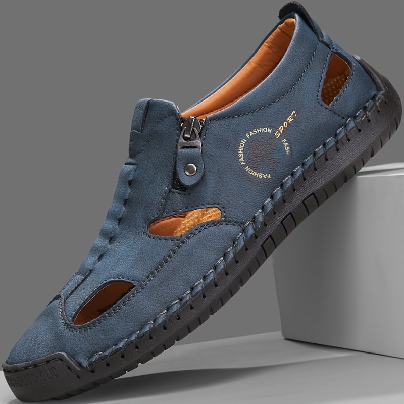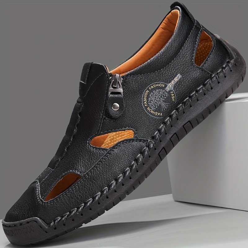 New Men’s Summer Sandals Men’s Cowhide Beach Shoes Casual Men’s Shoes Crocodile Pattern Thick-soled Dual-purpose Breathable Non-slip Slippers