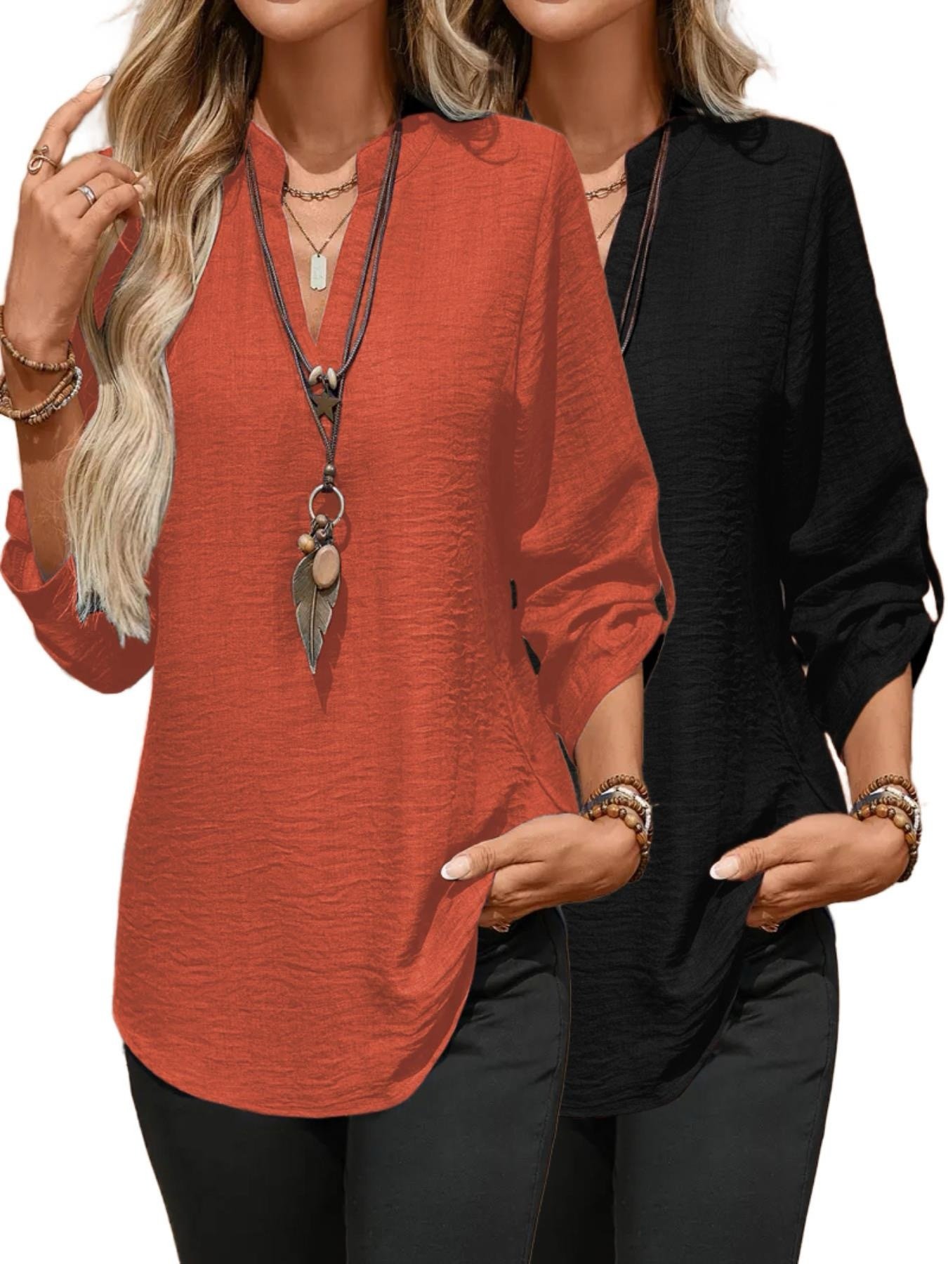 [New Women’s Shirts] 2pcs Set New Mixed Color Women’s Shirts | V-Neck, Small Stand Collar, Decorative Drawstring
