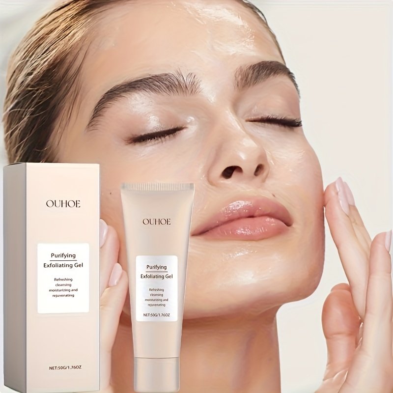 Plant-Based Exfoliating Gel | Formulated With Aloe Vera and Niacinamide, Nourishes Skin for Instant Renewal, Suitable for All Skin Types, Contains Salicylic Acid, Squalane, and Vitamin C – OUHOE