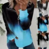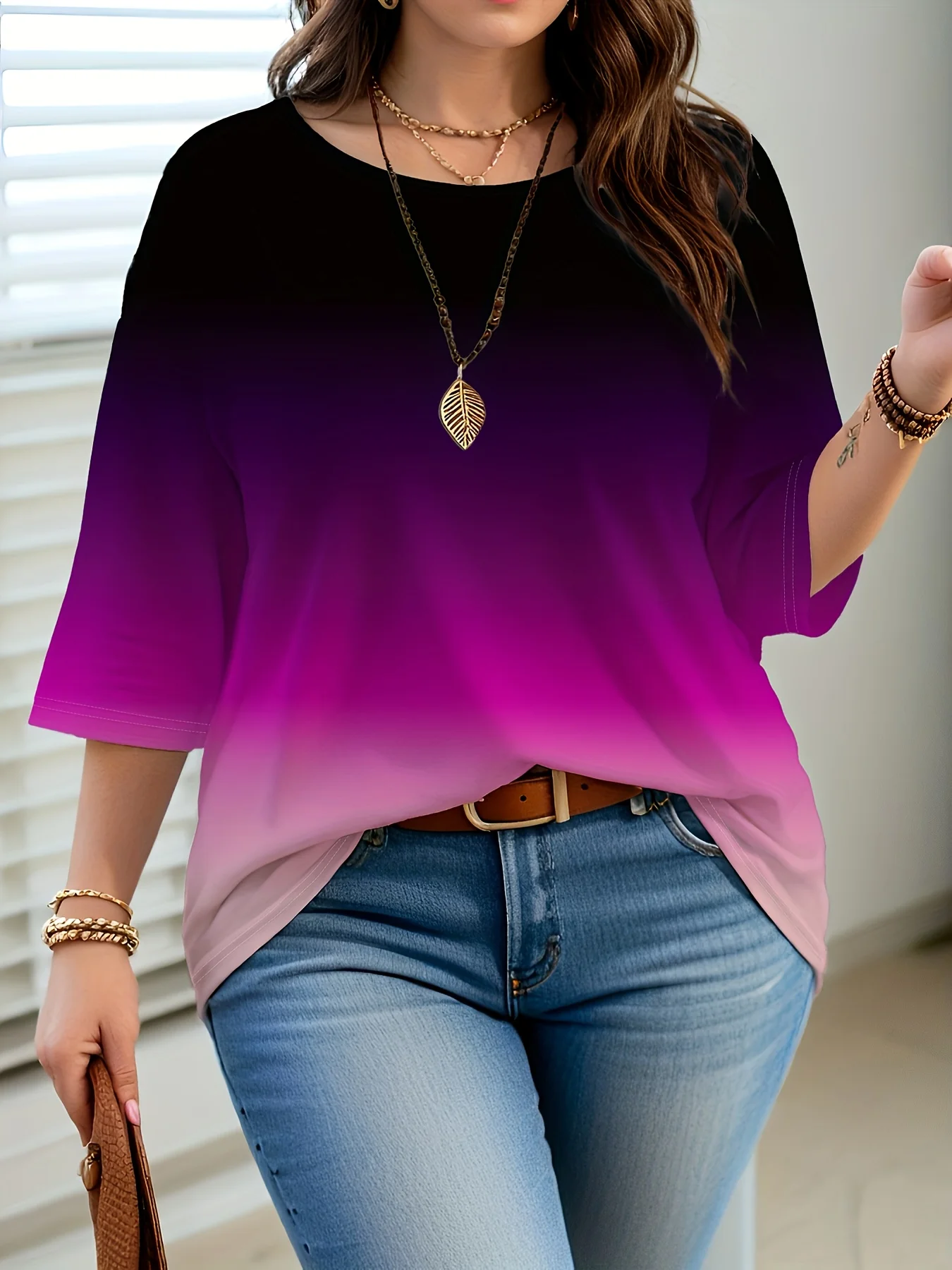 Elevate your casual wardrobe with this plus size gradient color three quarter sleeve top, perfect for any season. The round neck and gradient design offer a modern twist to a classic silhouette, ensuring you stand out effortlessly. Made from soft, breathable fabric, this top provides all-day comfort and a flattering fit. Its versatile style pairs beautifully with jeans, skirts, or trousers, making it ideal for both day and night looks. Whether you're running errands or meeting friends for coffee, this chic top adds a touch of elegance and sophistication to your ensemble.