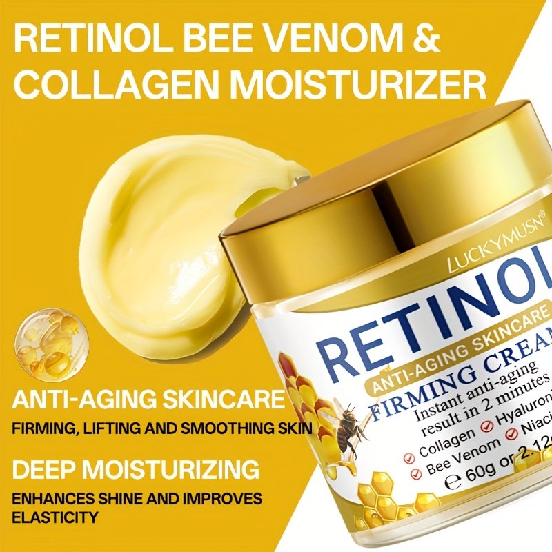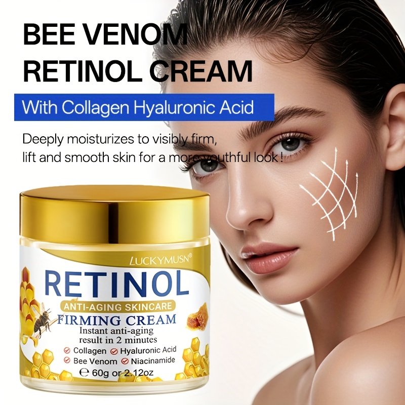 Retinol And Bee Venom Cream for Facial Lifting, Designed for Care. It Includes Hyaluronic Acid, Collagen, And Niacinamide to Hydrate, Firm, Lift, Smooth, Enhance Elasticity, And Increase Radiance
