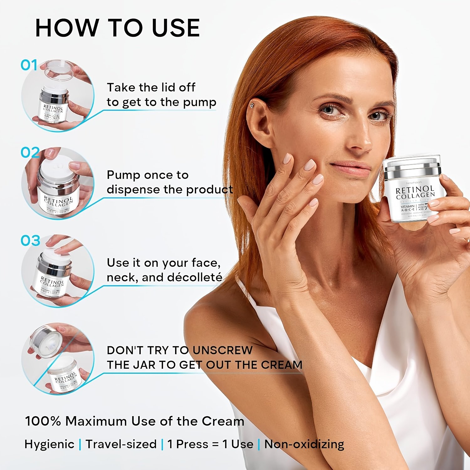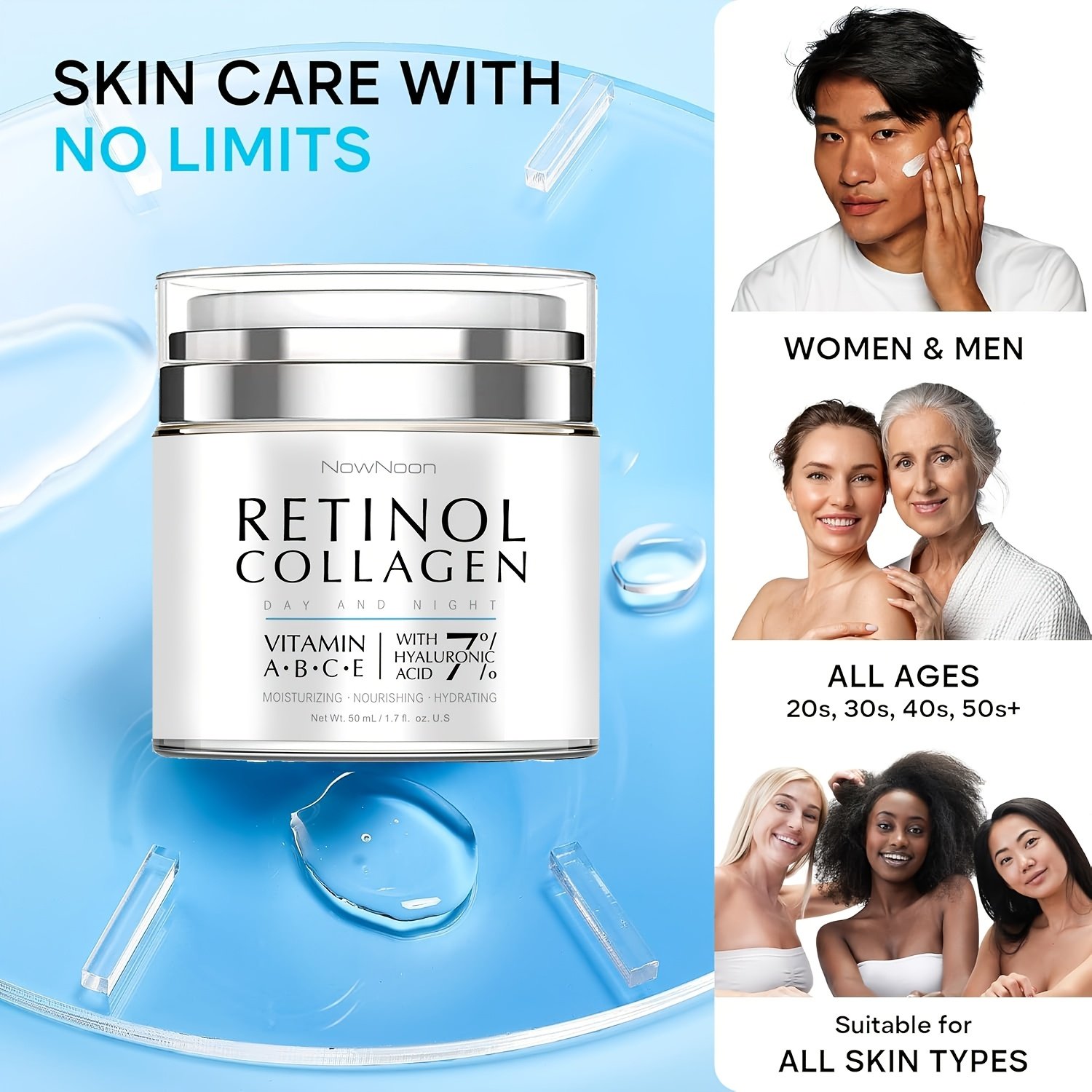 Dual-Action Retinol Face Cream – Skincare, Night & Day Moisturizer, Collagen, VitaminC – Visibly Rejuvenated, Replenish/Protect The Skin’s Moisture Barrier, Specially Formulated For All Skin, Color: White/Blue