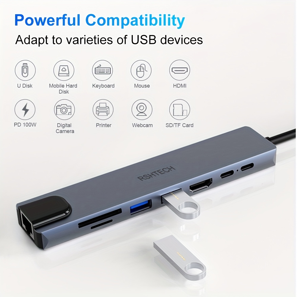 RSHTECH 8-in-1 Type C HUB Adapter - 4K HDTV, USB 3.0 5Gbps High-Speed Data Transmission, SD/TF Card Reader, RJ45 Ethernet, PD 100W USB C Docking Station for Mobile Hard Disk, Keyboard, Mouse, Digital Camera, Printer, Webcam, SD/TF CardRSHTECH 8-in-1 Type C HUB Adapter - 4K HDTV, USB 3.0 5Gbps High-Speed Data Transmission, SD/TF Card Reader, RJ45 Ethernet, PD 100W USB C Docking Station for Mobile Hard Disk, Keyboard, Mouse, Digital Camera, Printer, Webcam, SD/TF CardRSHTECH 8-in-1 Type C HUB Adapter - 4K HDTV, USB 3.0 5Gbps High-Speed Data Transmission, SD/TF Card Reader, RJ45 Ethernet, PD 100W USB C Docking Station for Mobile Hard Disk, Keyboard, Mouse, Digital Camera, Printer, Webcam, SD/TF CardRSHTECH 8-in-1 Type C HUB Adapter - 4K HDTV, USB 3.0 5Gbps High-Speed Data Transmission, SD/TF Card Reader, RJ45 Ethernet, PD 100W USB C Docking Station for Mobile Hard Disk, Keyboard, Mouse, Digital Camera, Printer, Webcam, SD/TF CardRSHTECH 8-in-1 Type C HUB Adapter - 4K HDTV, USB 3.0 5Gbps High-Speed Data Transmission, SD/TF Card Reader, RJ45 Ethernet, PD 100W USB C Docking Station for Mobile Hard Disk, Keyboard, Mouse, Digital Camera, Printer, Webcam, SD/TF CardRSHTECH 8-in-1 Type C HUB Adapter - 4K HDTV, USB 3.0 5Gbps High-Speed Data Transmission, SD/TF Card Reader, RJ45 Ethernet, PD 100W USB C Docking Station for Mobile Hard Disk, Keyboard, Mouse, Digital Camera, Printer, Webcam, SD/TF CardRSHTECH 8-in-1 Type C HUB Adapter - 4K HDTV, USB 3.0 5Gbps High-Speed Data Transmission, SD/TF Card Reader, RJ45 Ethernet, PD 100W USB C Docking Station for Mobile Hard Disk, Keyboard, Mouse, Digital Camera, Printer, Webcam, SD/TF CardRSHTECH 8-in-1 Type C HUB Adapter - 4K HDTV, USB 3.0 5Gbps High-Speed Data Transmission, SD/TF Card Reader, RJ45 Ethernet, PD 100W USB C Docking Station for Mobile Hard Disk, Keyboard, Mouse, Digital Camera, Printer, Webcam, SD/TF Card