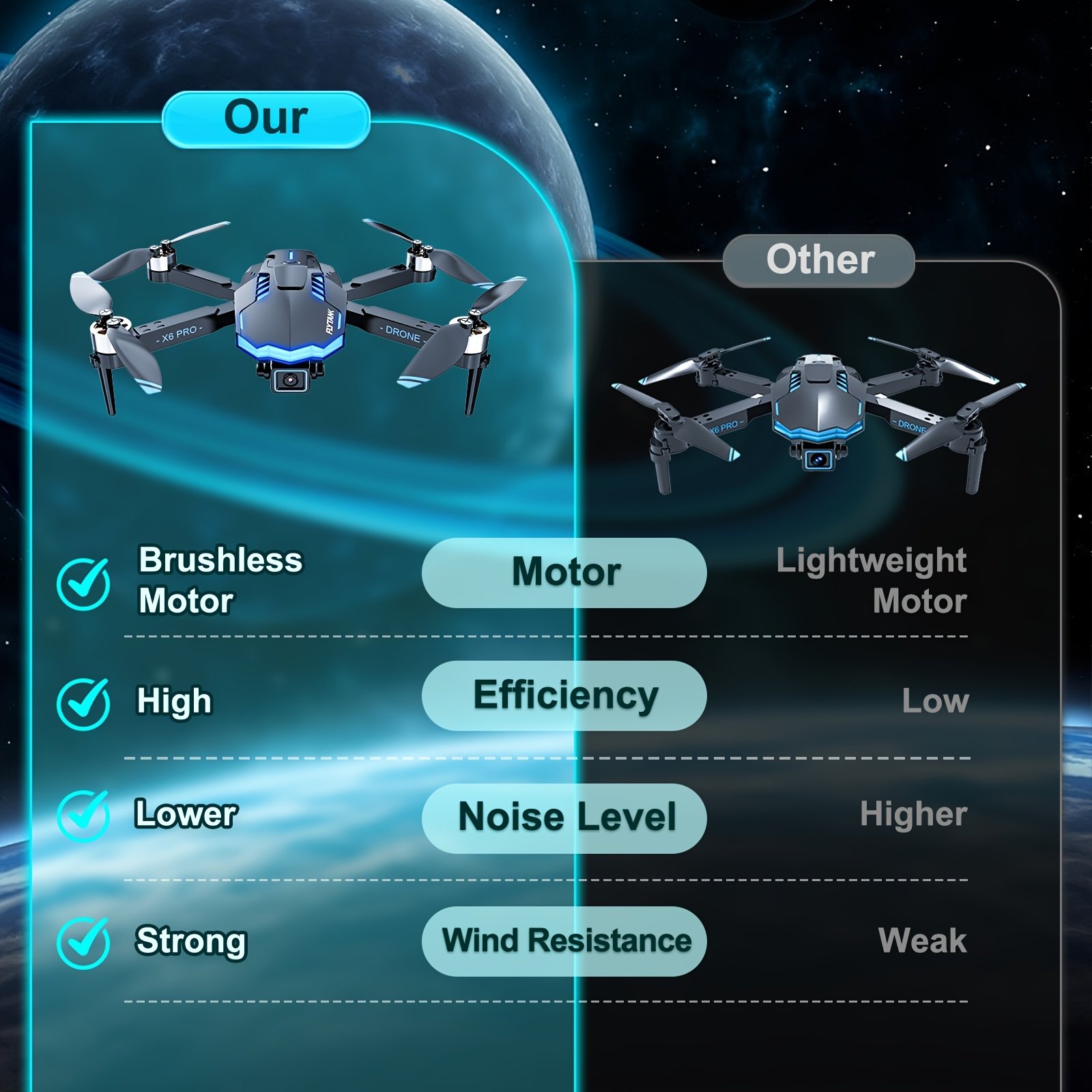 Say Goodbye To Weak Motors – X6 PRO Brushless Drone With Dual Camera, Stable Flight, 30 Ft/s Speed, Built For Performance
