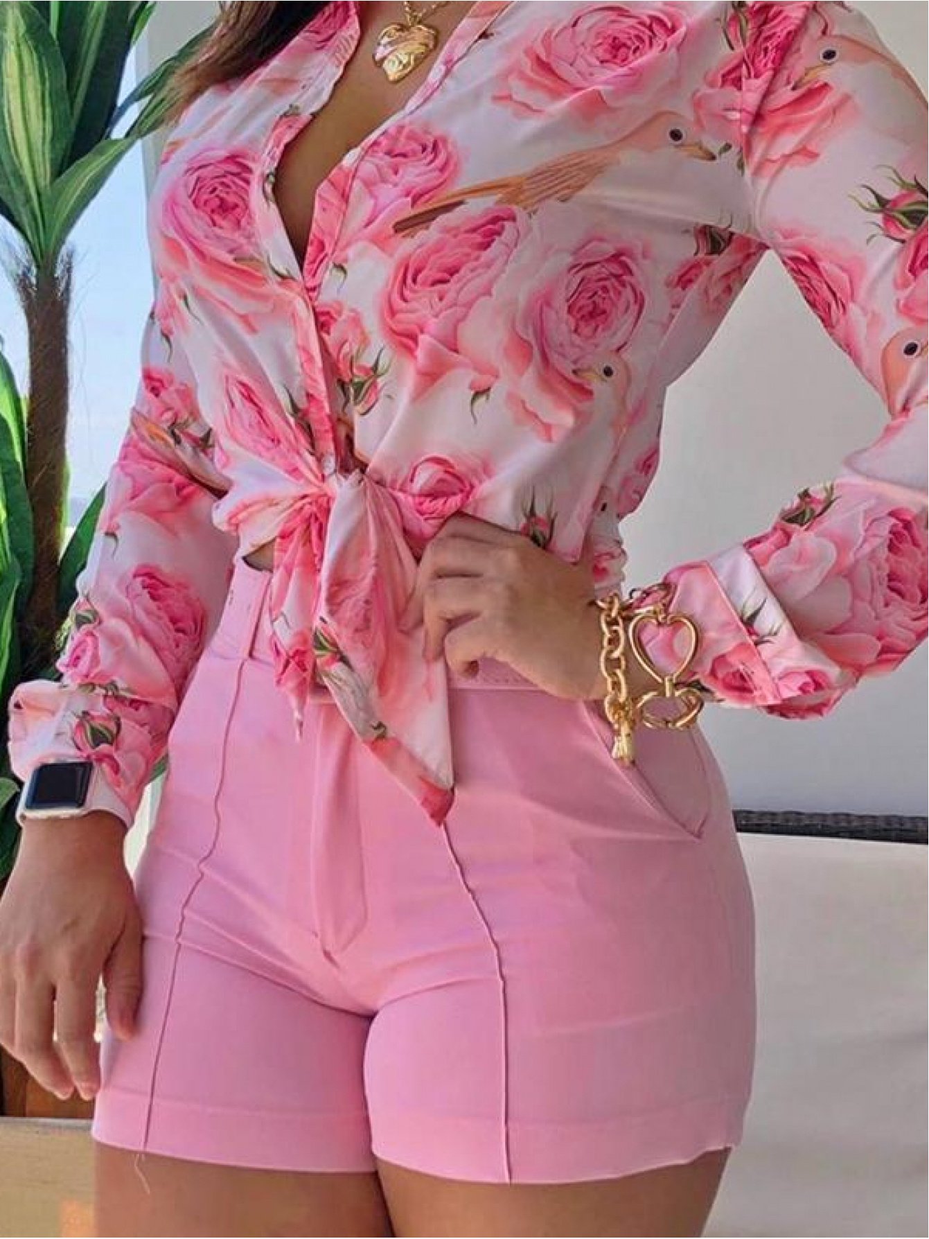 SCACTO Women’S Elegant Floral Print & Embellished Stand Collar Blouse – Long Sleeve Button-Front Top with Stand Collar, All-Season Versatile Shirt for Casual & Formal Wear, Pink & White Floral Design, Structured Fit (Size Up Recommended), Blouse For Women Elegant/classy/casual/dressy, Beautiful Blouse For Women, Elegant Blouse For Women, Blouse For Women, Women Top And Blouse, Shirt For Women, Top For Women, Dressy Shirt, Elegant Clothing For Women, Long Blouse For Women, Summer Shirt