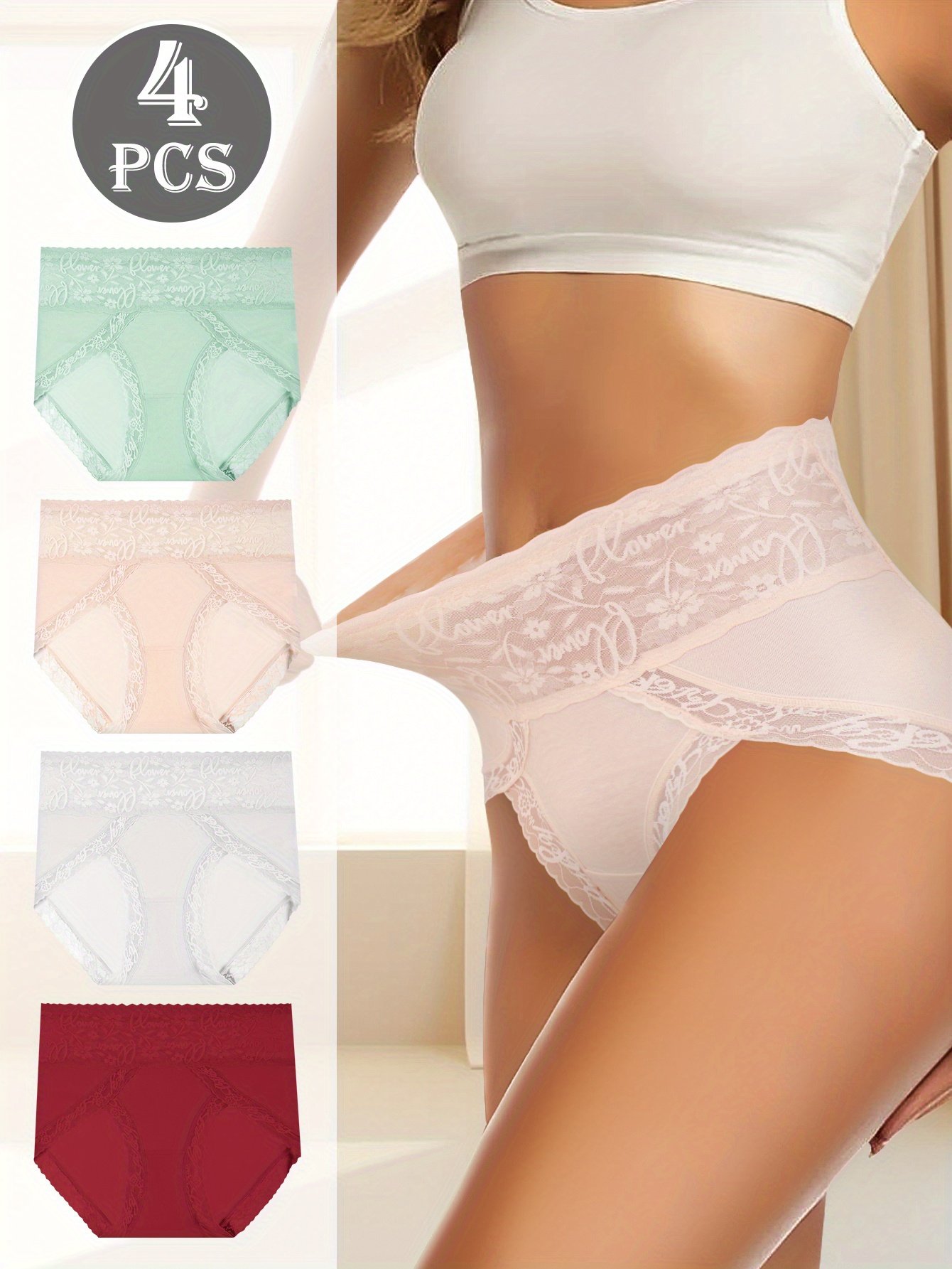 [QUASTI Seamless Underwear] 4pcs QUASTI Women’s Seamless High Waist Tummy Control Underwear | Mid-Rise Breathable Body Shaper with Butt Lifting & Stretching, Lace Trim for Yoga, Office, Bridal, Swimwear (4 Colors), Yoga Underwear, Romantic Underwear, Stretchy Fabric