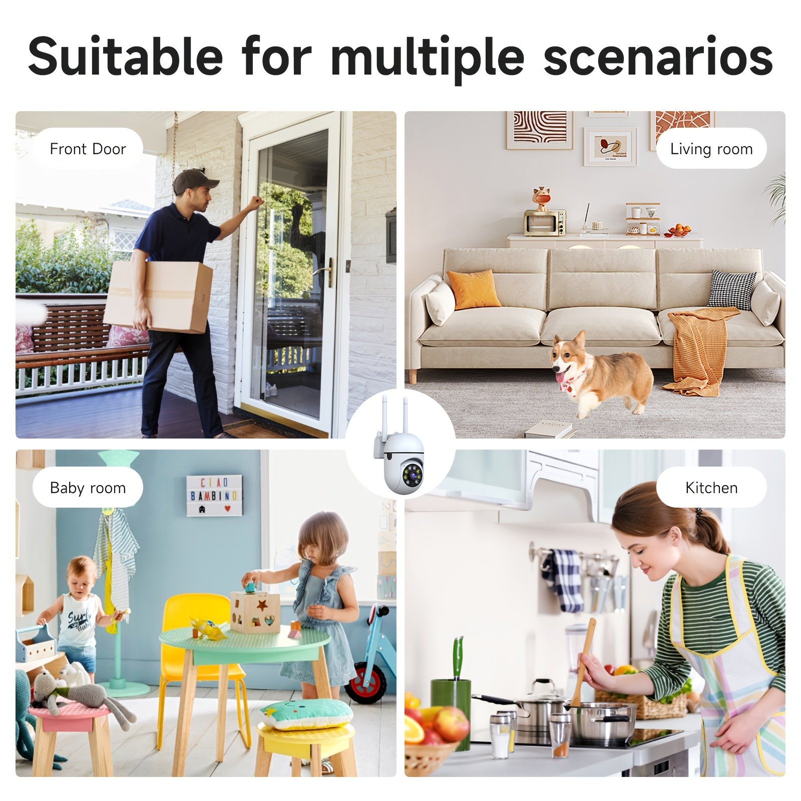 Set of 2 Wireless Cameras Featuring AI Motion Detection, Dual-Band Wifi, 355° Pan And Tilt Capabilities, Video Recording, Two-Way Audio, Full Color Night Vision, And Options for Cloud And SD Storage