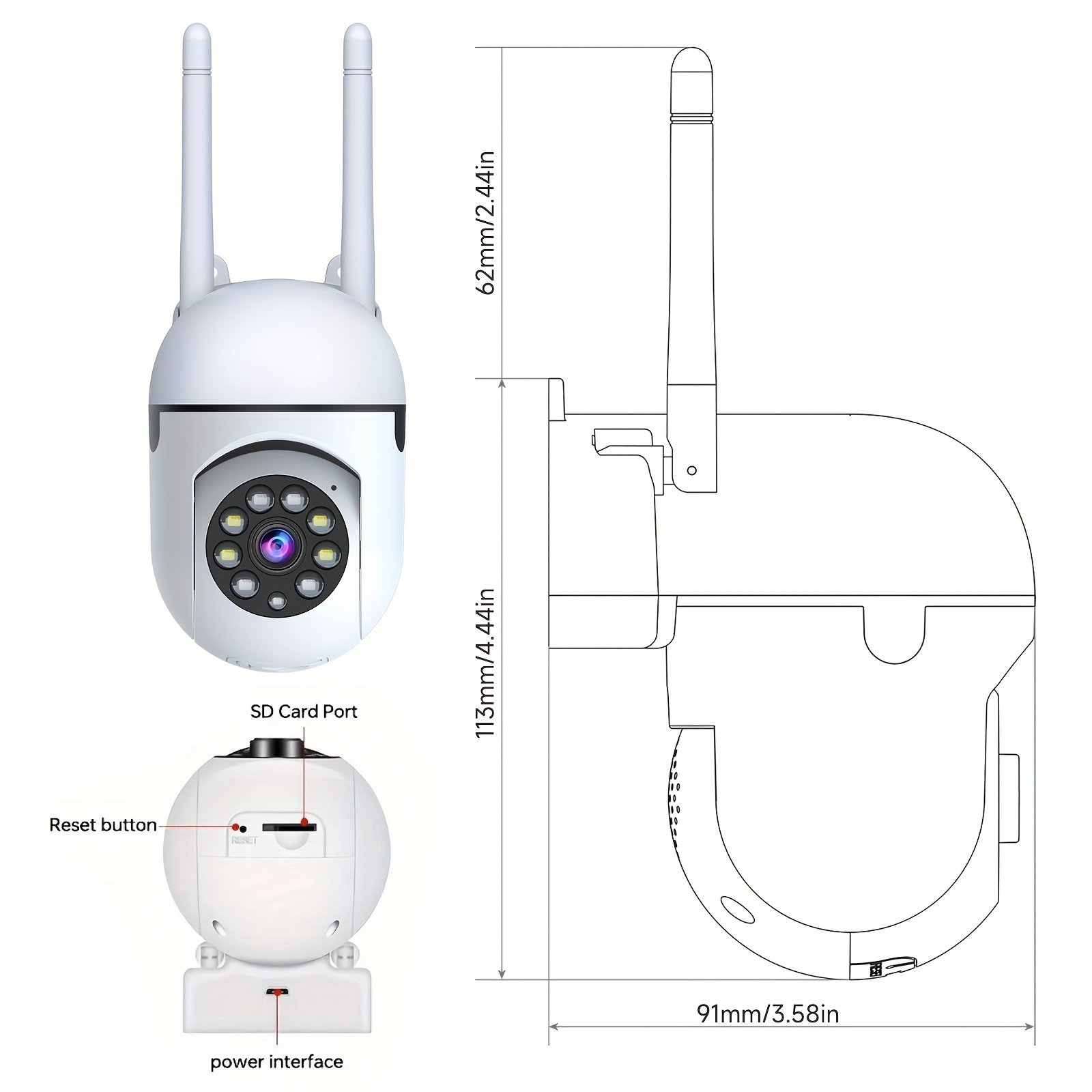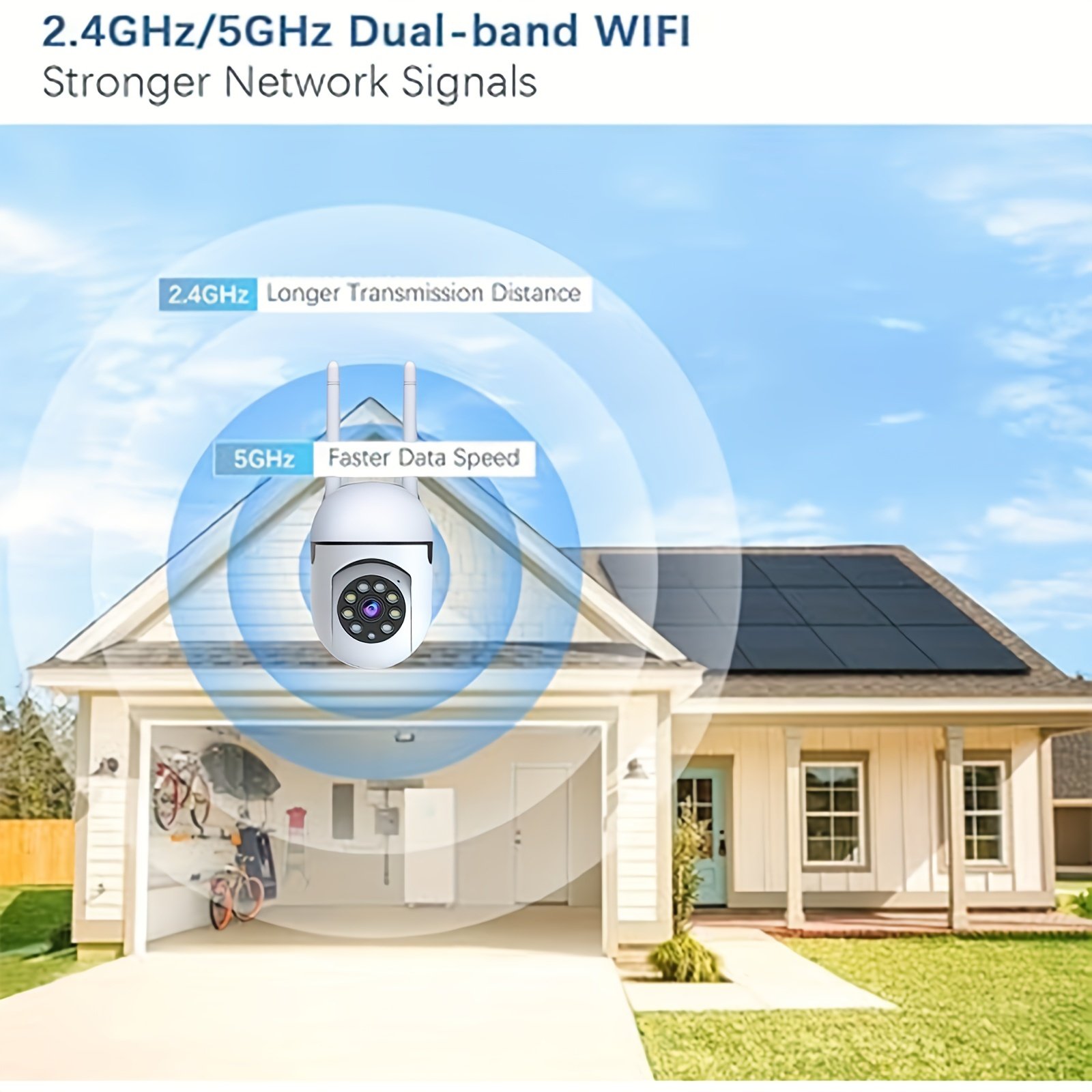 Set of 4 Wireless Cameras with a 355° Pan Feature, Supporting Dual-Band 2.4/5G Wifi, Equipped with AI Motion Detection, Two-Way Audio, Full-Color Night Vision, And Options for Cloud And SD Storage.