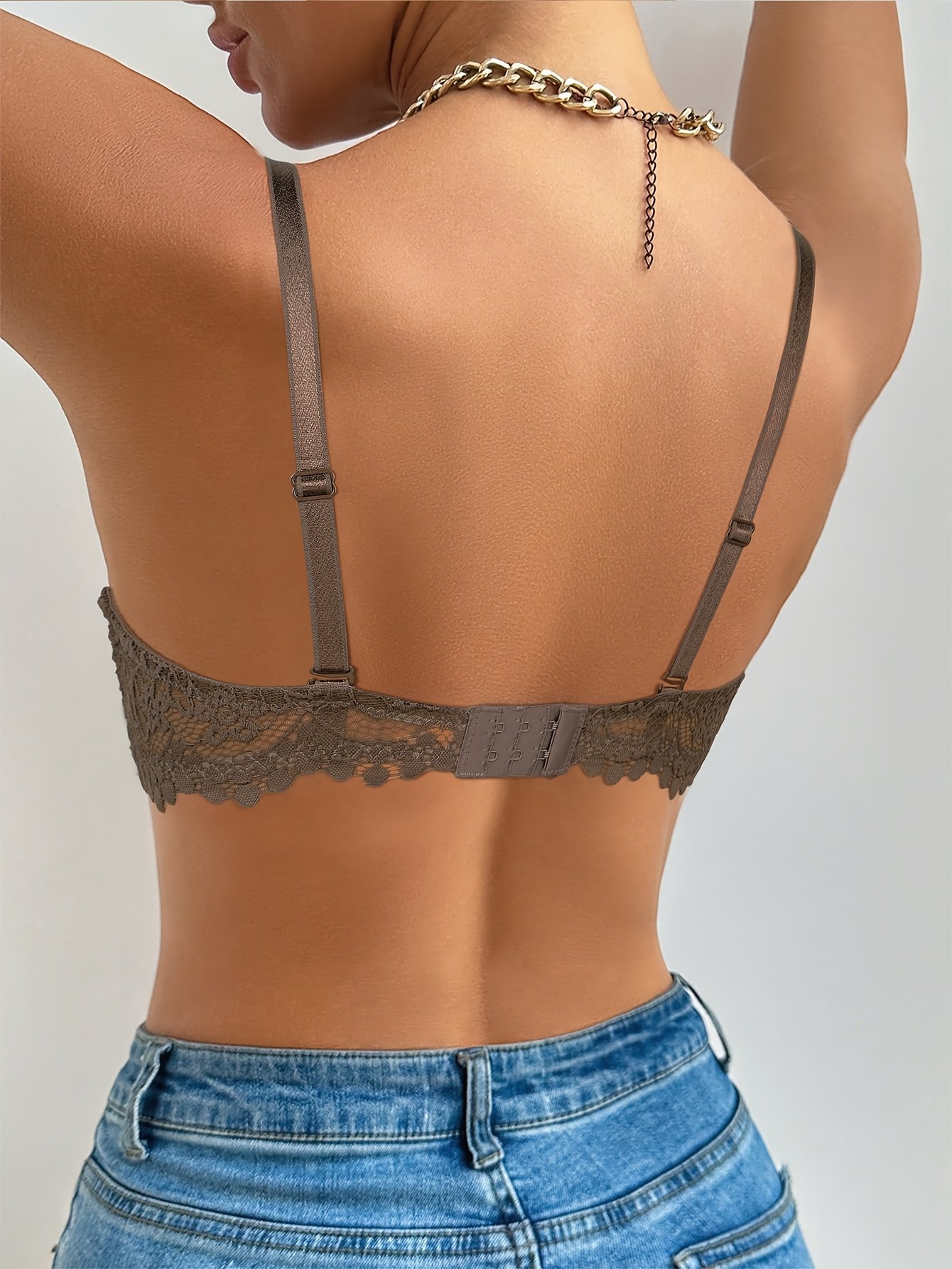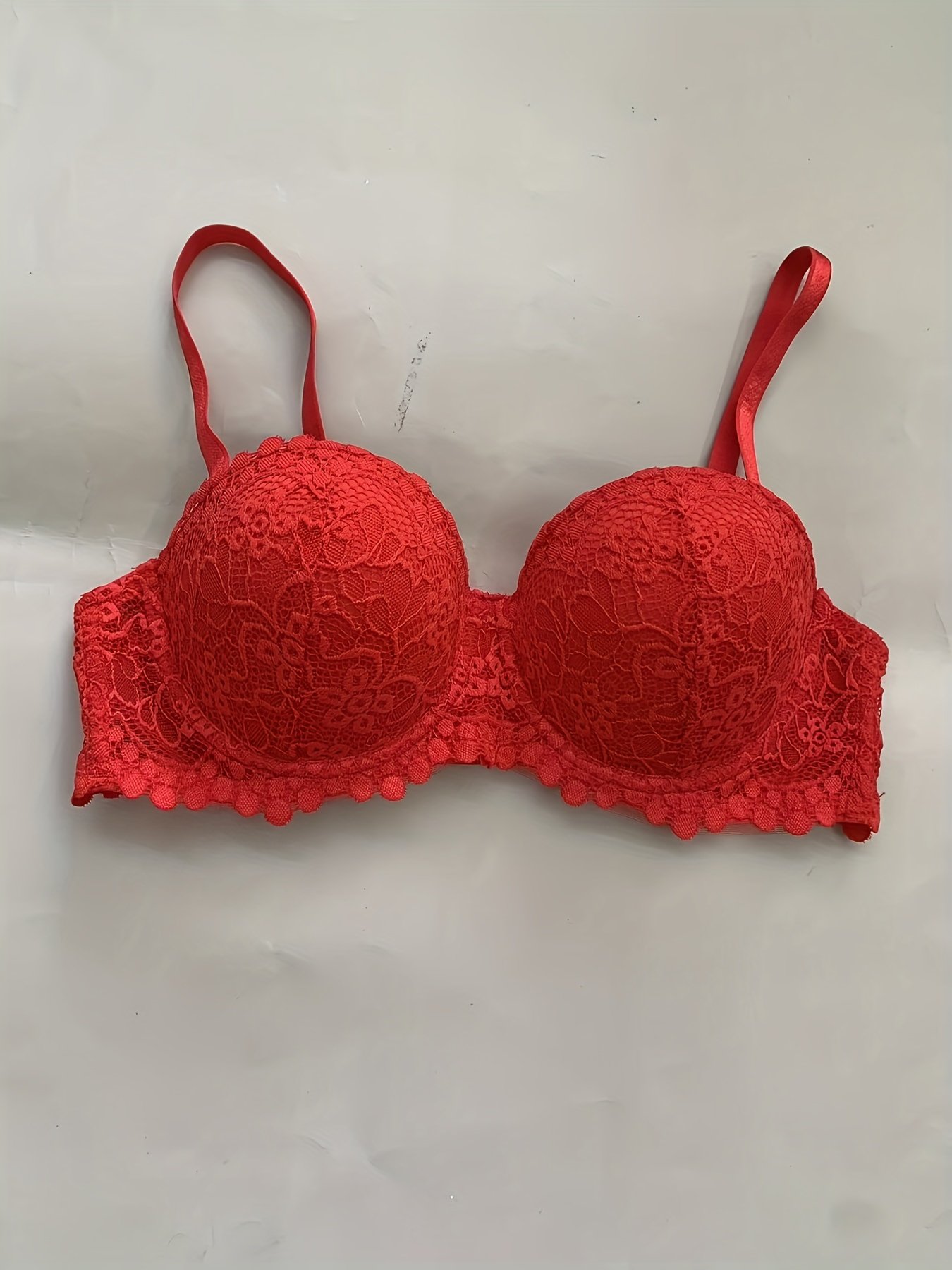 Sexy Half-Cup Lace Bra with Underwire | Comfortable Gathered Design, Non-Removable Padding, Solid Color – Hersunei