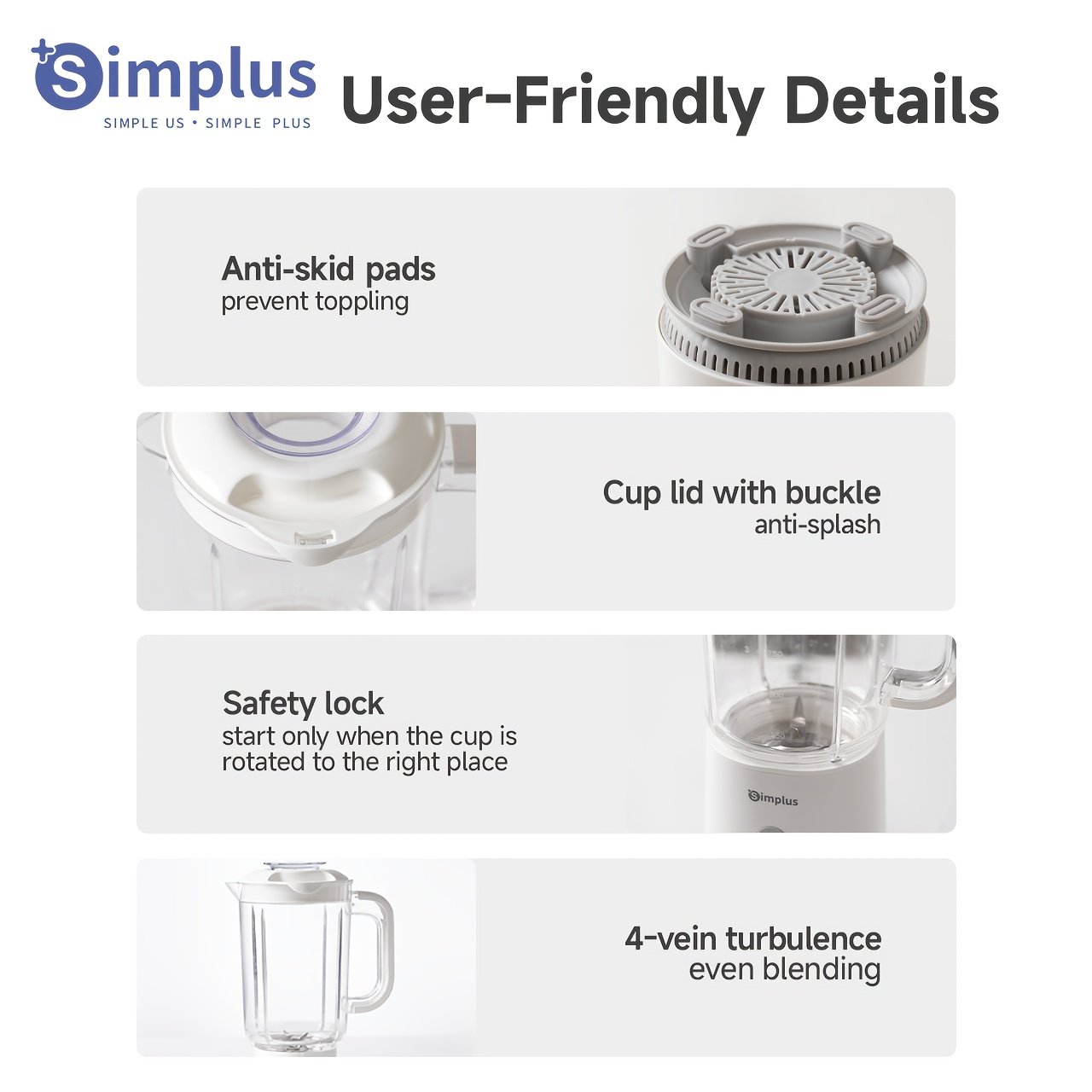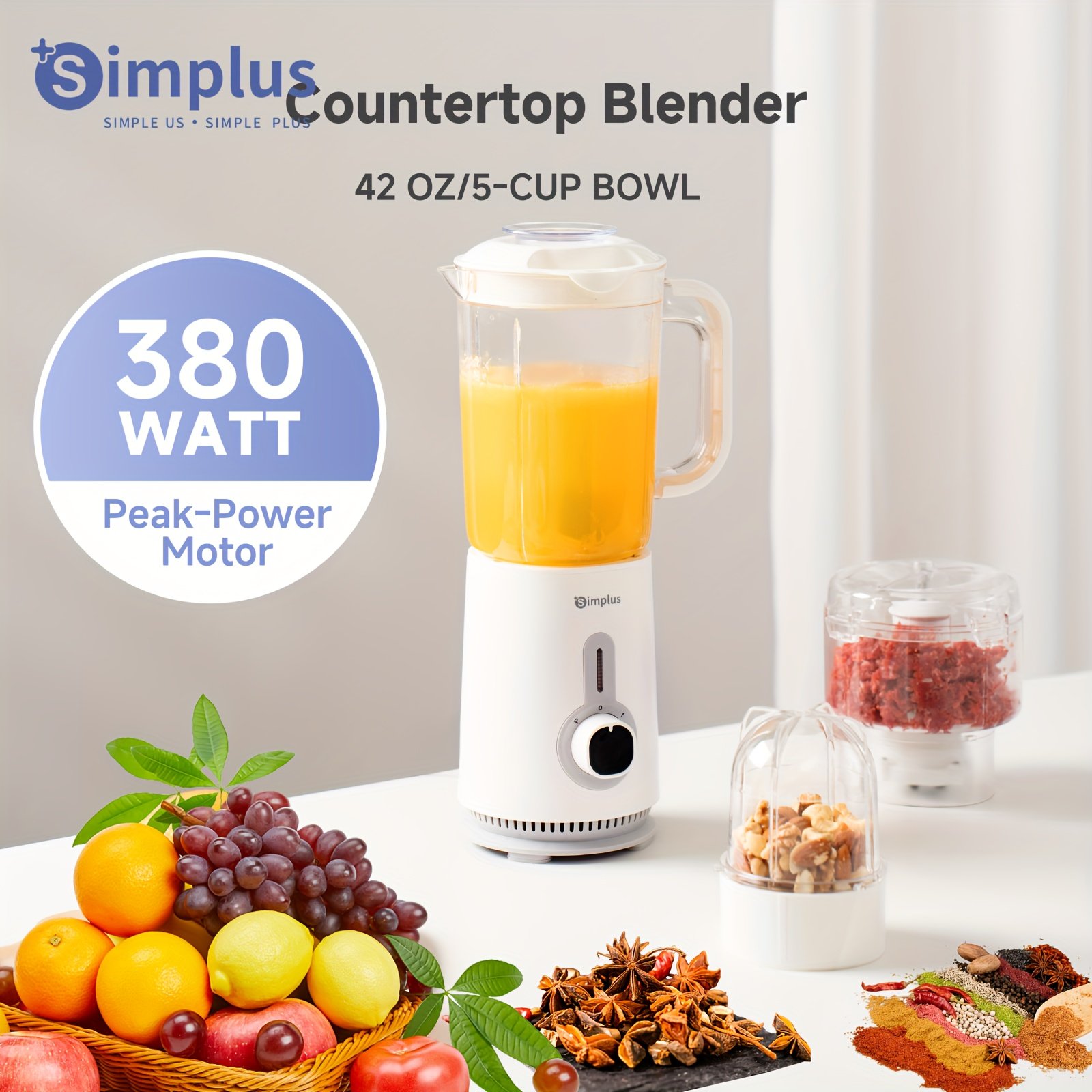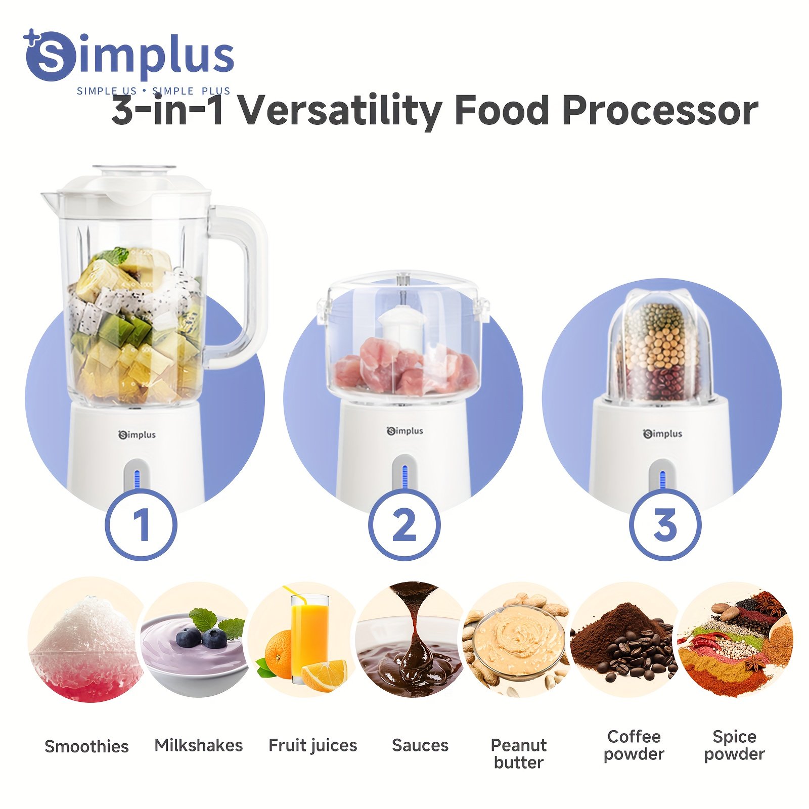 Simplus 42oz Powerful Home Kitchen Blender with Easy-Disassemble Design, 3-Cup Accessories, Food Processor, 3 Adjustable Speeds, Stainless Steel Blades – Ideal for Smoothies, Soups, And More | Modern Kitchen Blender | Durable Plastic Base, Blender