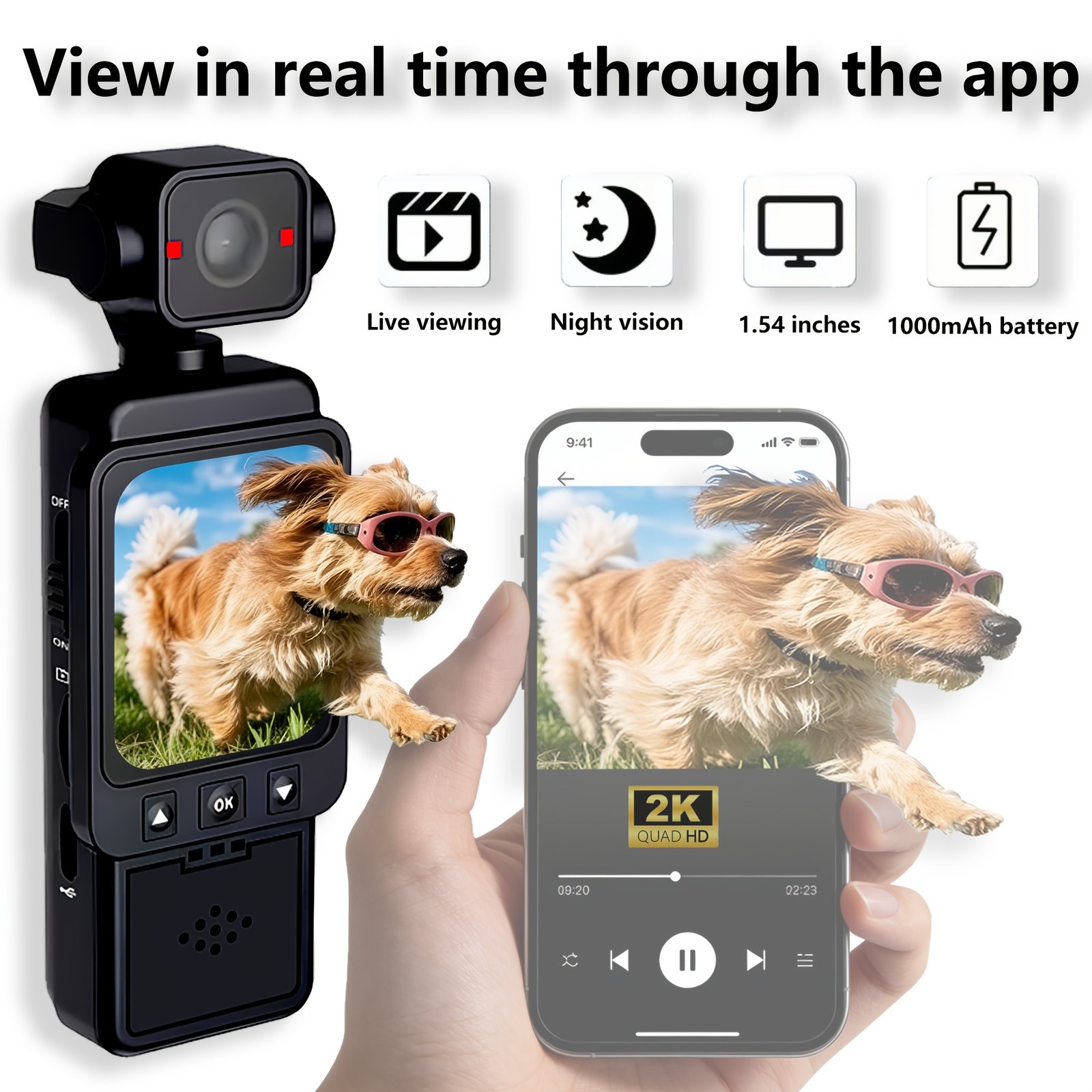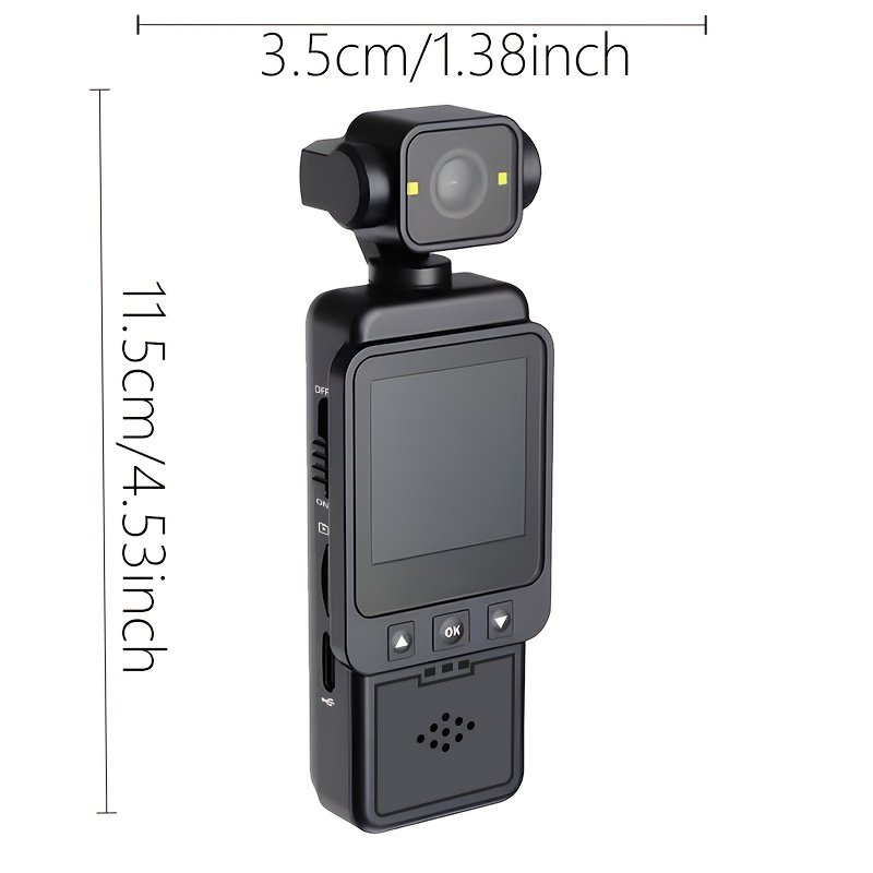 Single-board Pocket Action Camera | 270-Degree Rotation Design, Portable and Compact, Hand-Held Stabilization, Real-Time Synchronization via Wi-Fi, ABS Material, USB Charging, Non