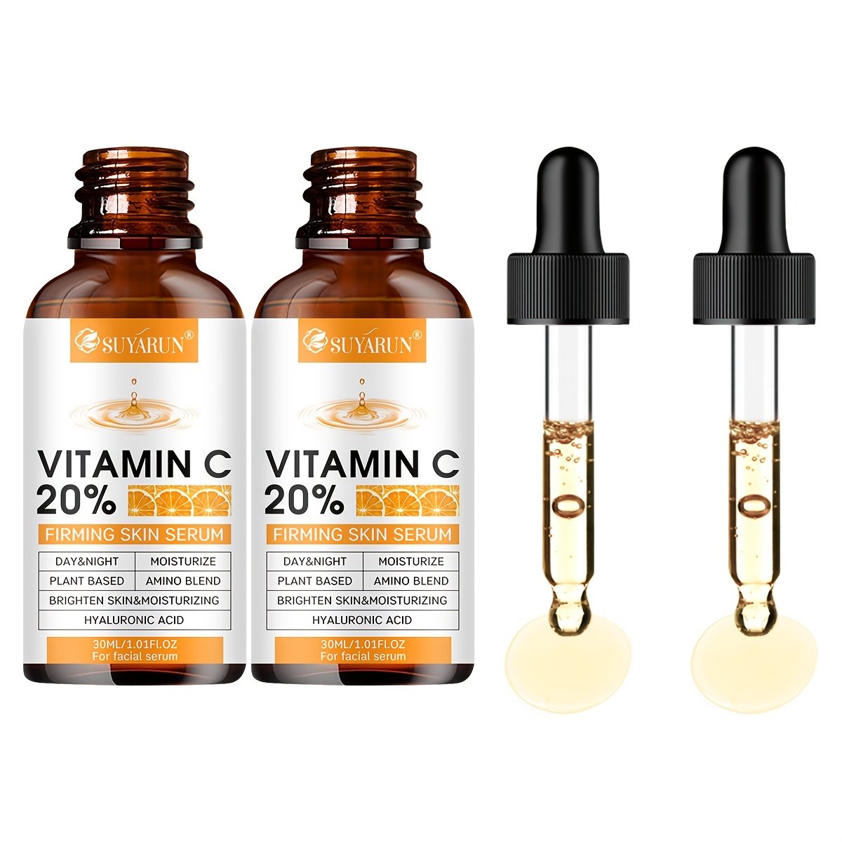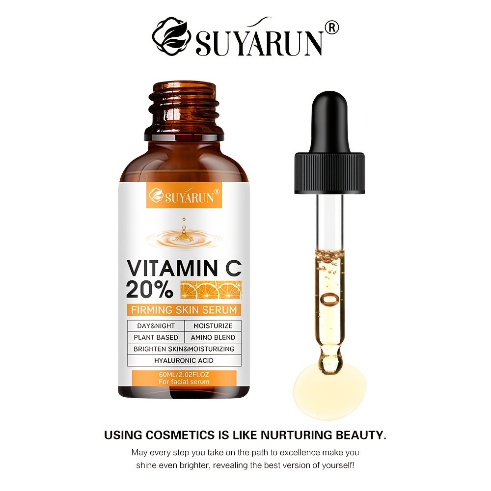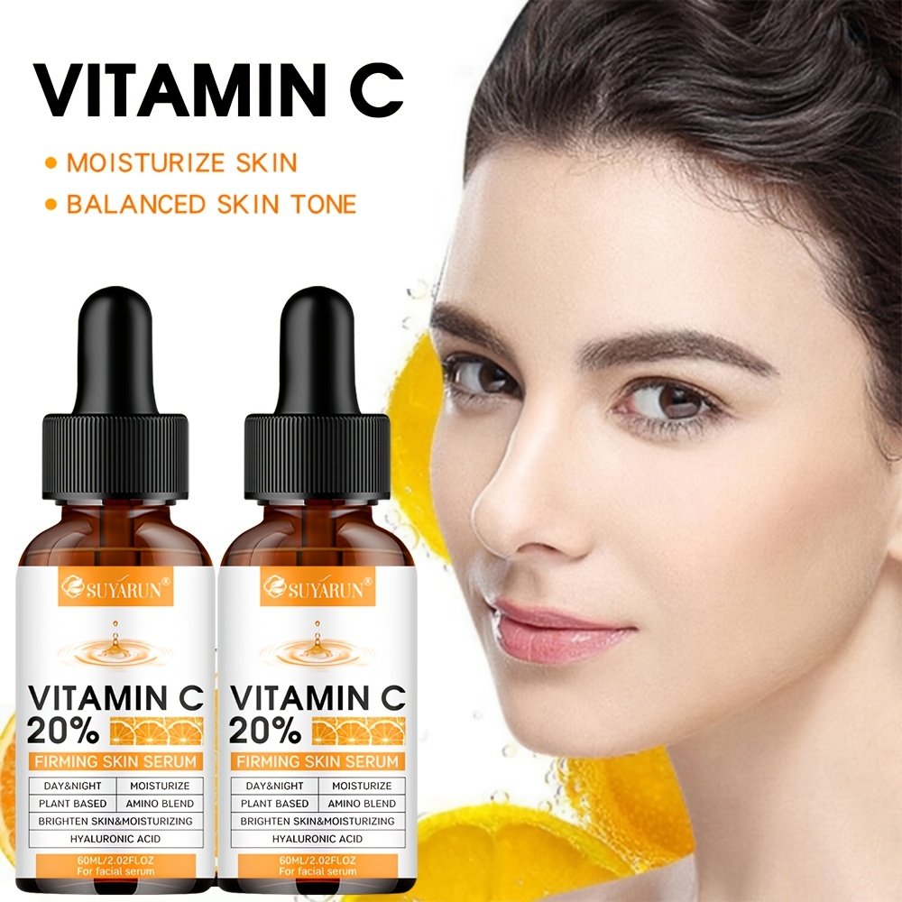 SUYARUN 2pcs Vitamin C Brightening Essence, Enriched with Niacinamide + Ceramide + Peptides + Retinol, Evens Out Light Beige, Tightens Skin, and Controls Oil.Moisturizes Skin to Make Wrinkles Less Noticeable. Dry Skin.