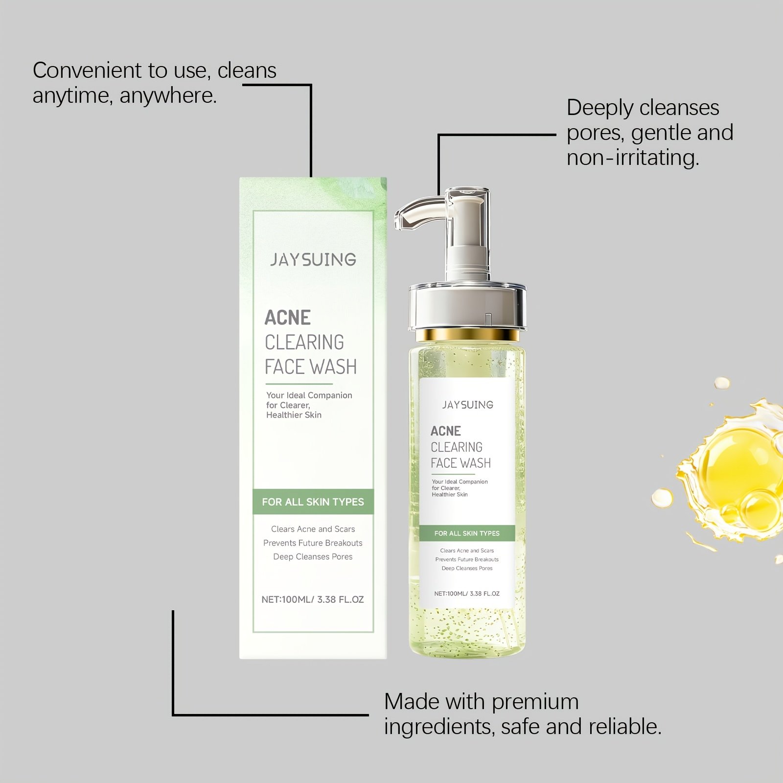 Tea-Scented Cleansing Gel, Infused with Tea Extracts for Oil Control, Deeply Cleanses Pores, Providing a Refreshing Tea Aroma Experience. The Gel Has a Light Texture That Lathers Easily, Suitable for Daily Use