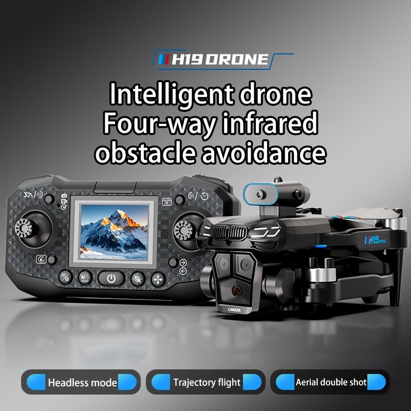 Thanksgiving/Black Friday/Christmas Gift, H19 Airplane QC Drone-Electrically Adjustable Dual HD Cameras With Screen, Brushless Motor, Four-sided Obstacle Avoidance Optical Flow Hovering, Indoor And Outdoor Drone For Beginners, Holiday Gift