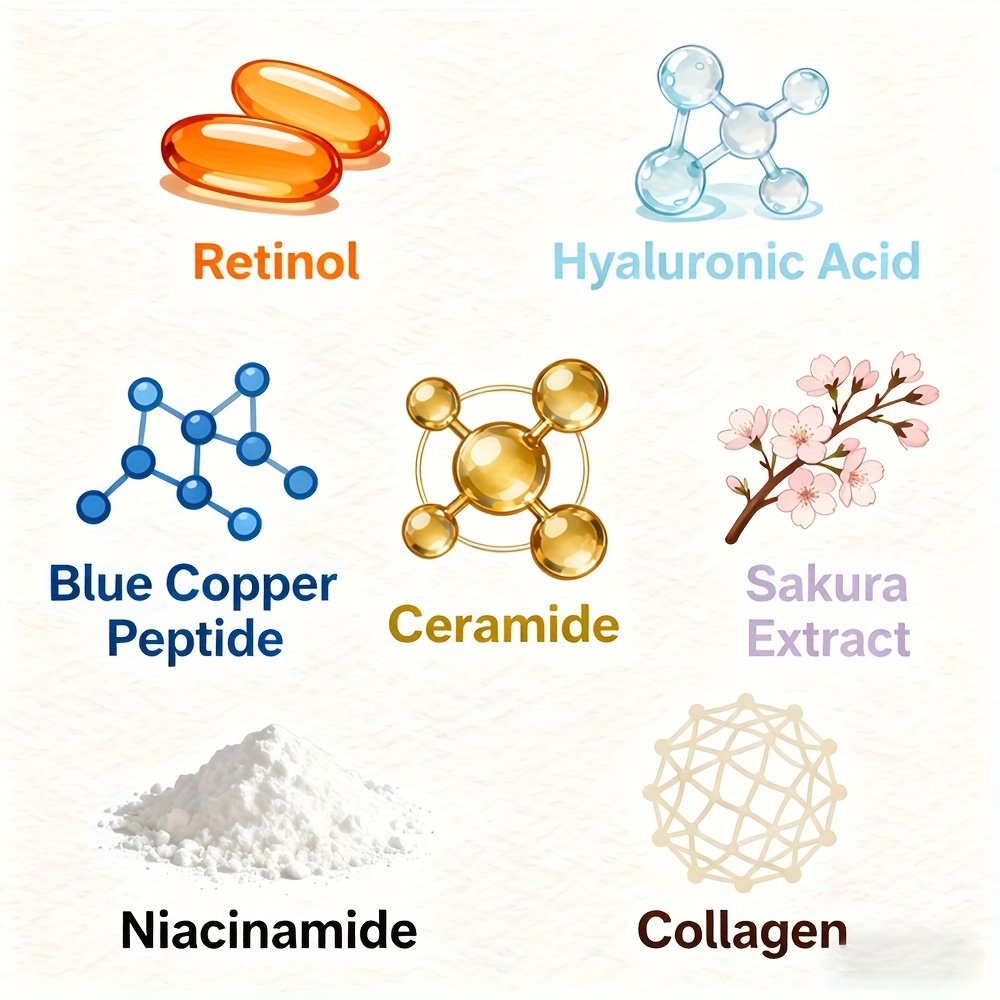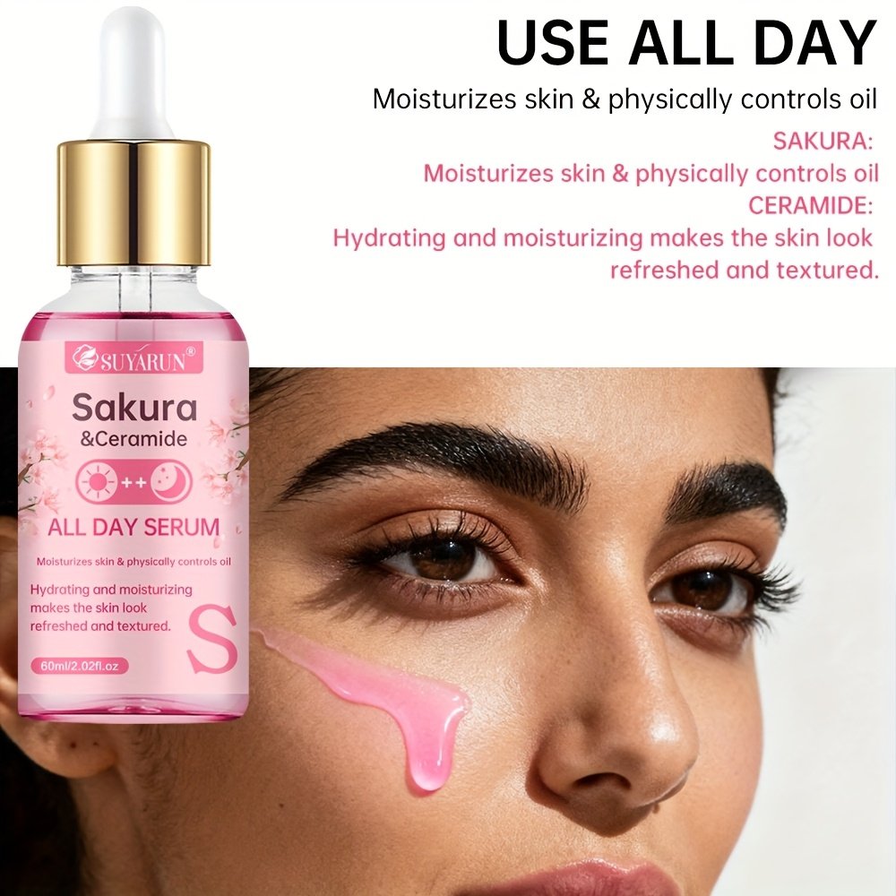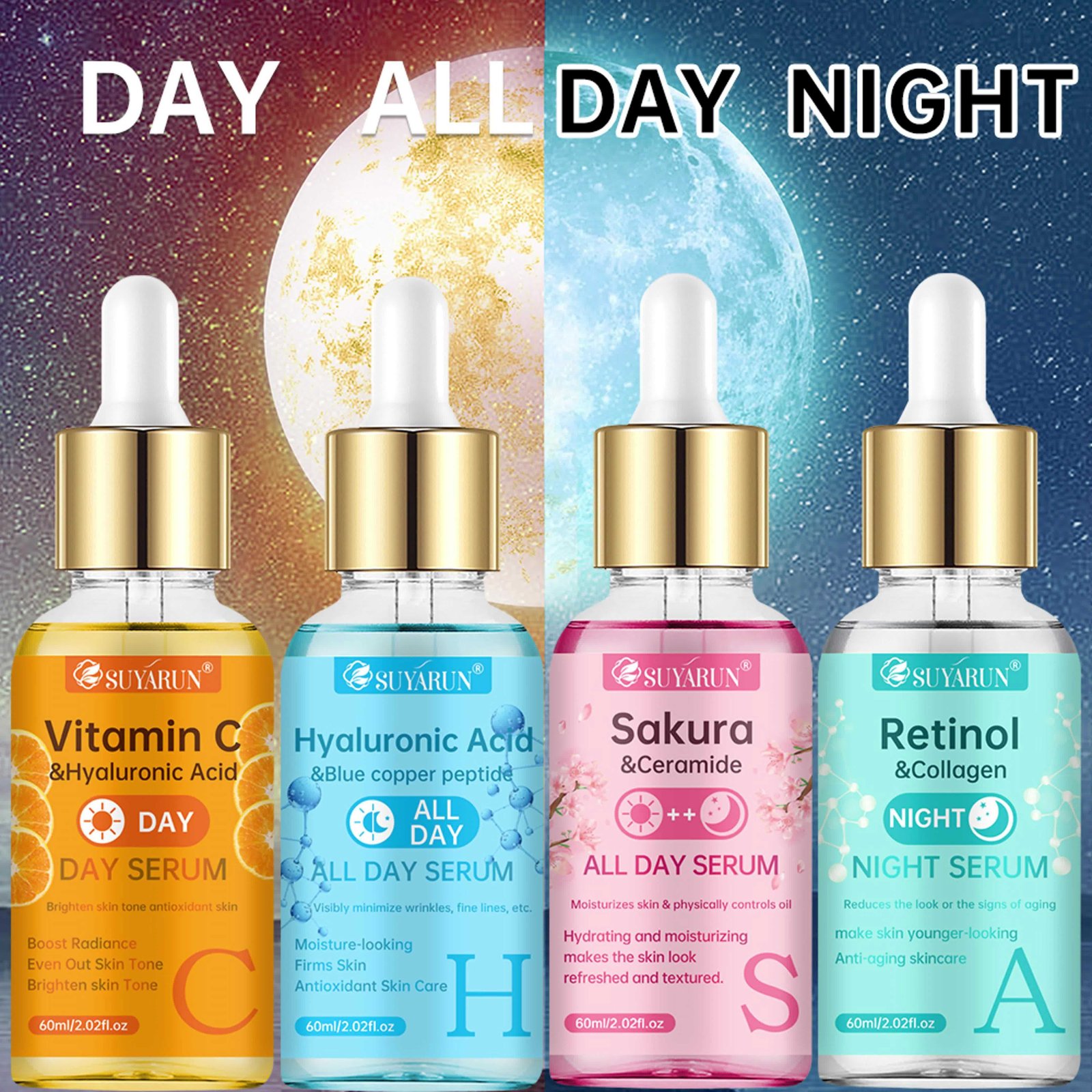 The SUYARUN 4pcs Day And Night Set Includes Vitamin C, Retinol, Hyaluronic Acid, And Cherry Blossom Ceramide Essence, Featuring Collagen, Aloe Vera, And Niacinamide to Brighten Skin Tone, Firm The Skin, Deeply Hydrate