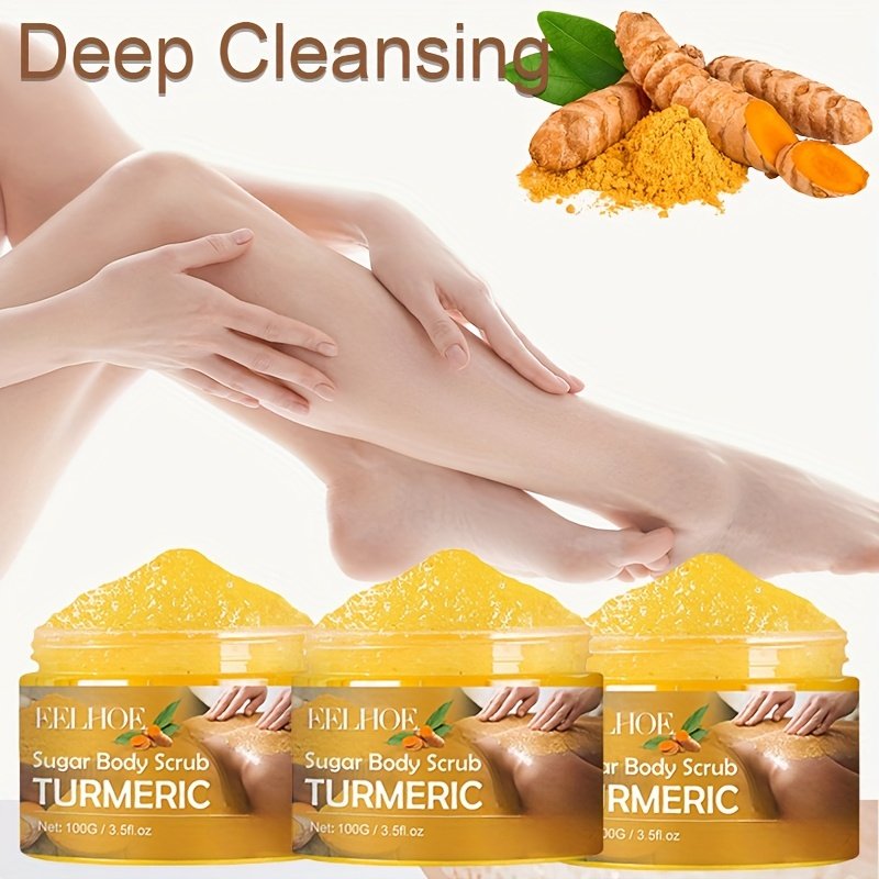 Turmeric Body Scrub – Physical Exfoliation Cleanses And Smooths Light While And Moisturizing. Leaves Light Looking Smoother And Softer. Suitable for Men And Women. Perfect Christmas Gift.