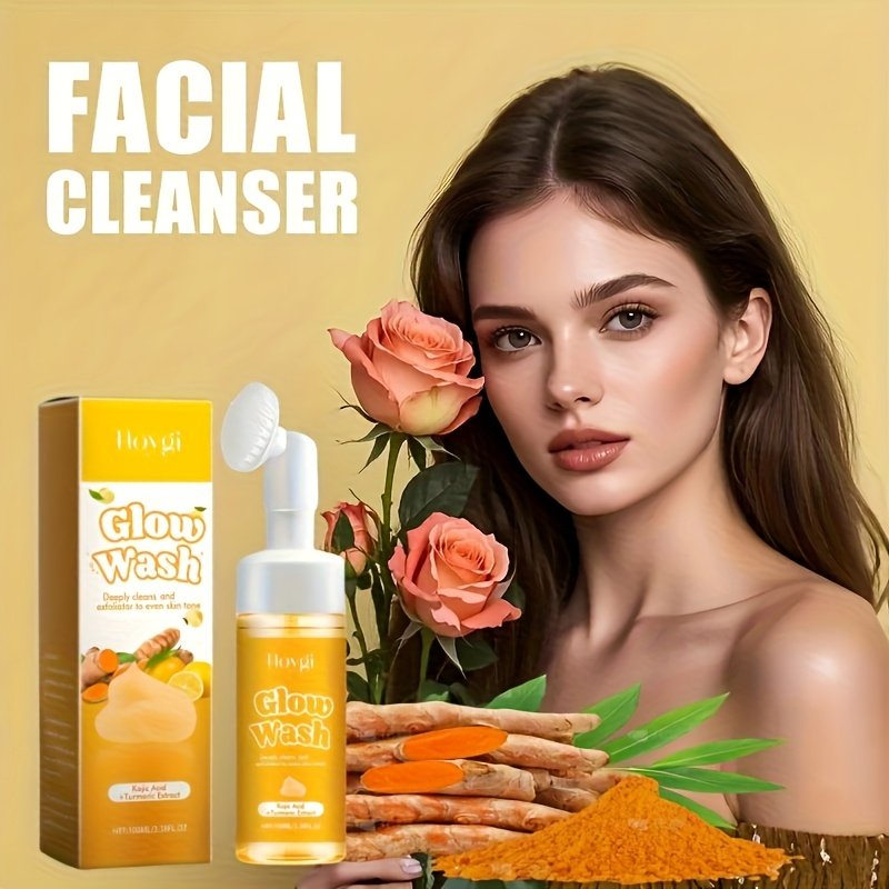Turmeric Cleansing Foam And Brush – Gentle Daily Cleanser, Pore Tightening, Nourishing Formula, Non-drying Lather, Glowing Complexion