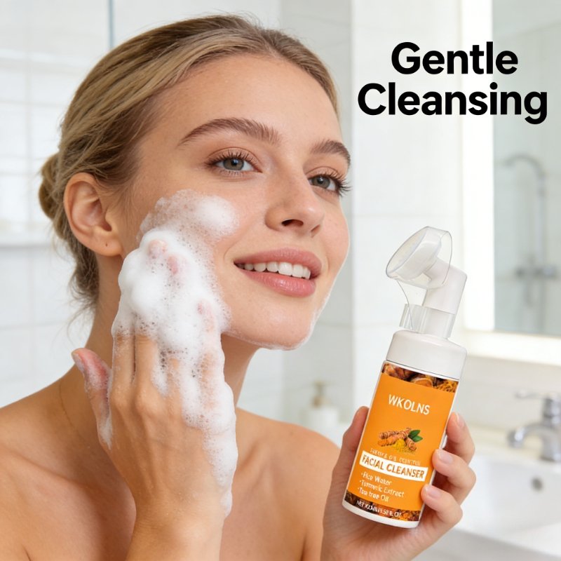 Turmeric Facial Cleanser | Mild, Oil-Free, Deep Cleaning, Oil Control, Physical Exfoliation, Suitable for All Light Skin, Unscented, Contains Hyaluronic Acid, Nicotinamide, Glycerin, 3.72oz – Daily Skin Care Products