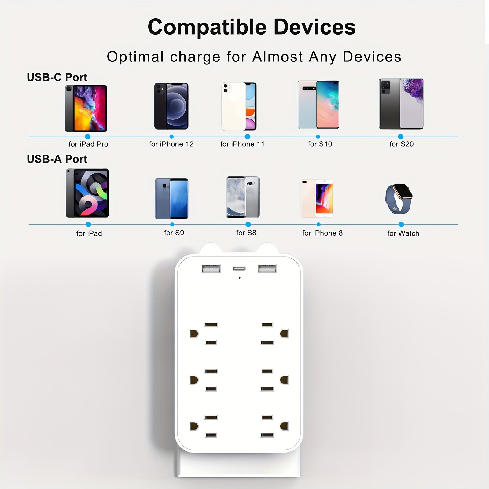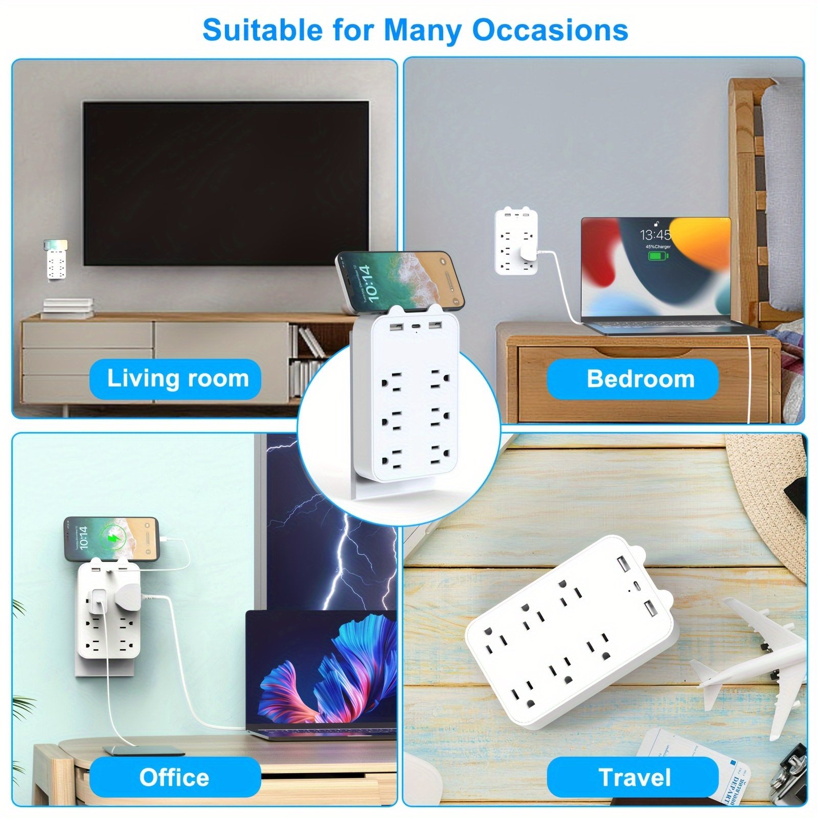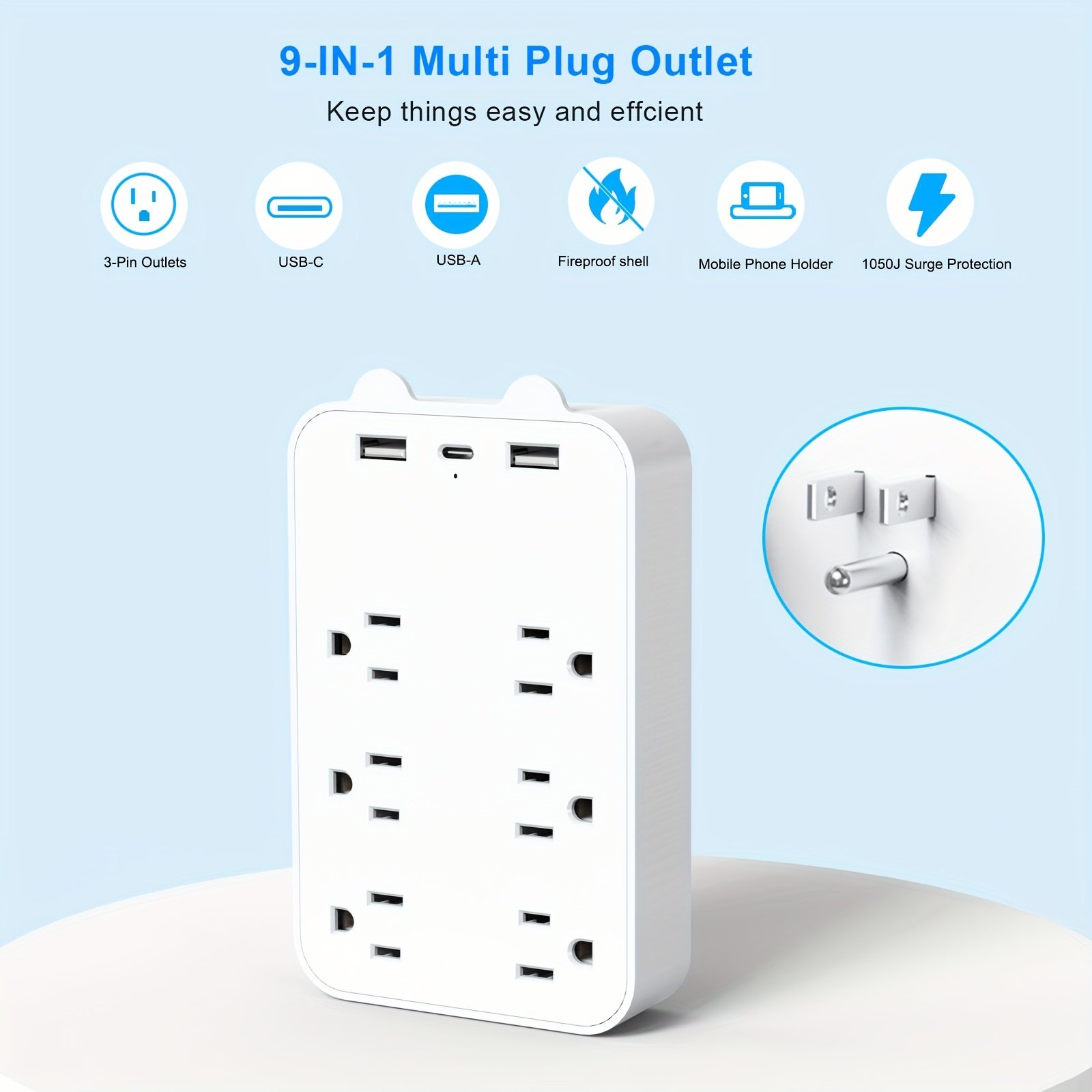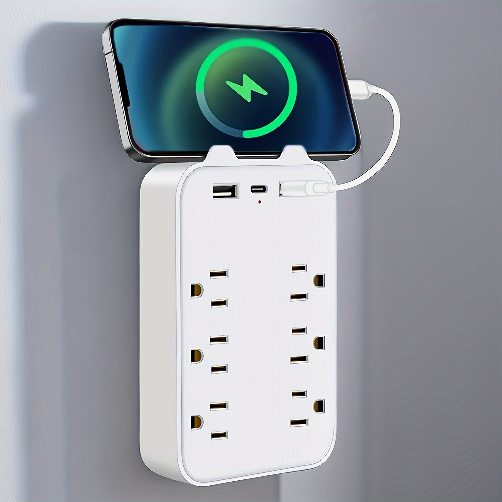 USB Wall Charger Surge Protector 6 Outlet Extender With 3 USB Charging Ports (1 USB C Outlet) 1050J Power Strip Multi Plug Outlets Wall Adapter Spaced For Home Travel Office