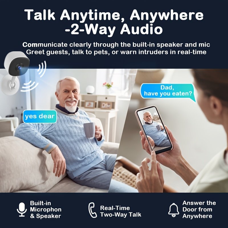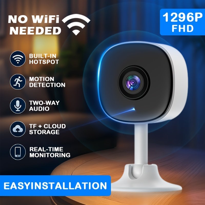 VEESKY No WiFi Needed Security Camera, 3MP Mini Indoor Camera With Built-in Hotspot, 2.4G WiFi & Wireless, IR Night Vision, Human Detection & Zone Monitoring, Two-Way Audio, Free Cloud + SD Card, For Home Baby Pet Shop Doorway