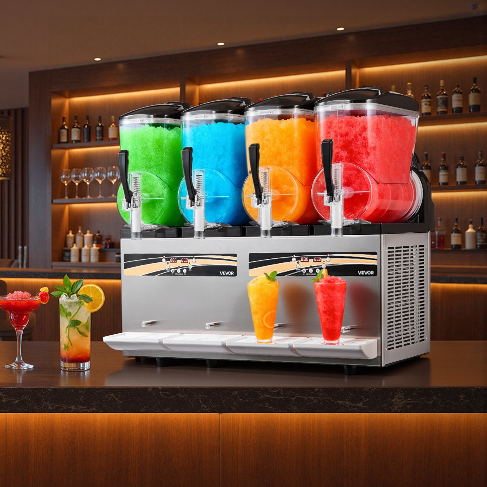 VEVOR Slushie Machine, 12L/3.17Gal x 4 Tank Commercial Slushy Maker, Frozen Drink Maker with Self-Cleaning, Margarita Machine for Restaurants Bars Party for Slushie, Margaritas, Milkshake & More
