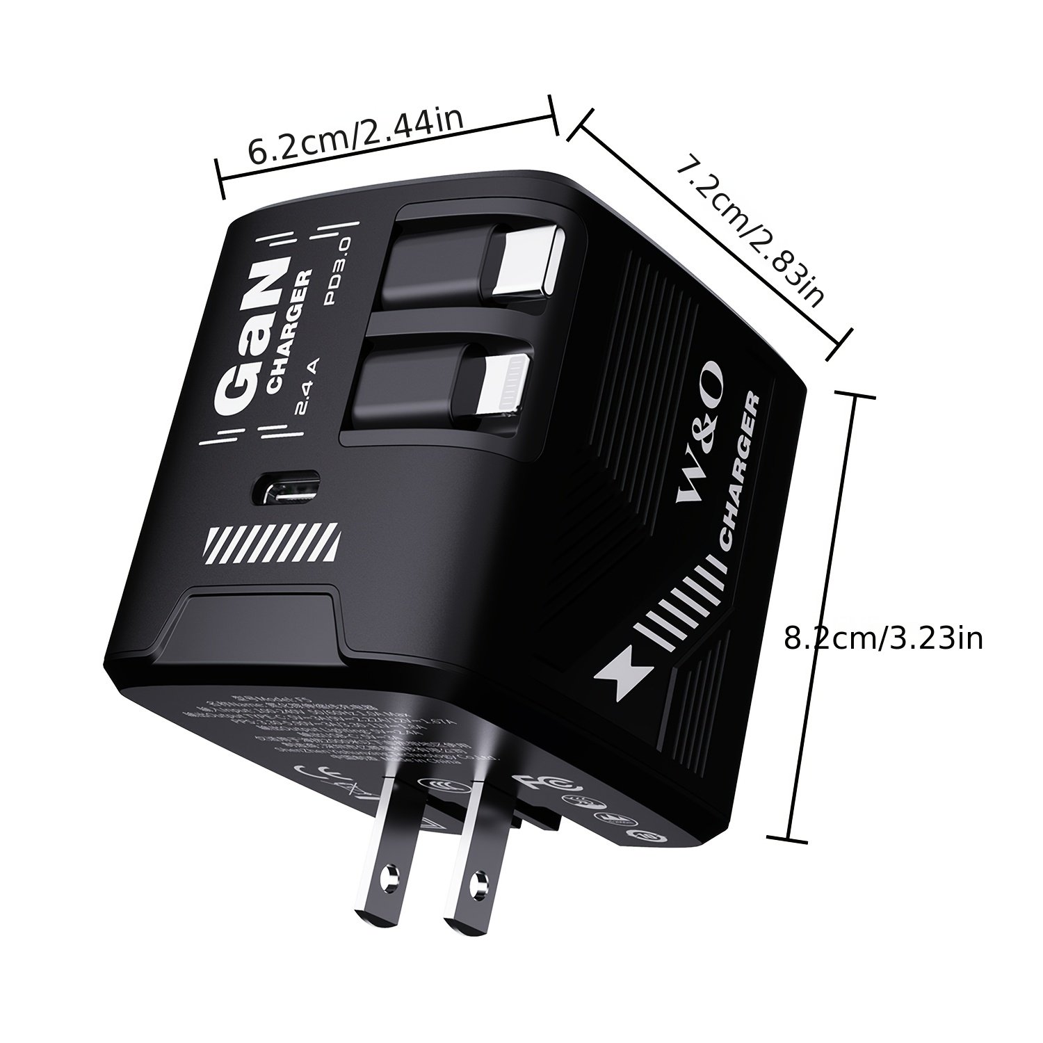 W&O 120W GaN Fast Charger, Dual 120cm/47inch Lightning+Type C Retractable Cable, Type C Output Ports, Foldable Plug – Adapter For IPhone 16/15/14/Plus/Pro Max, For S25/24 And Android Phone – Christmas Birthday Party Phone Charger.