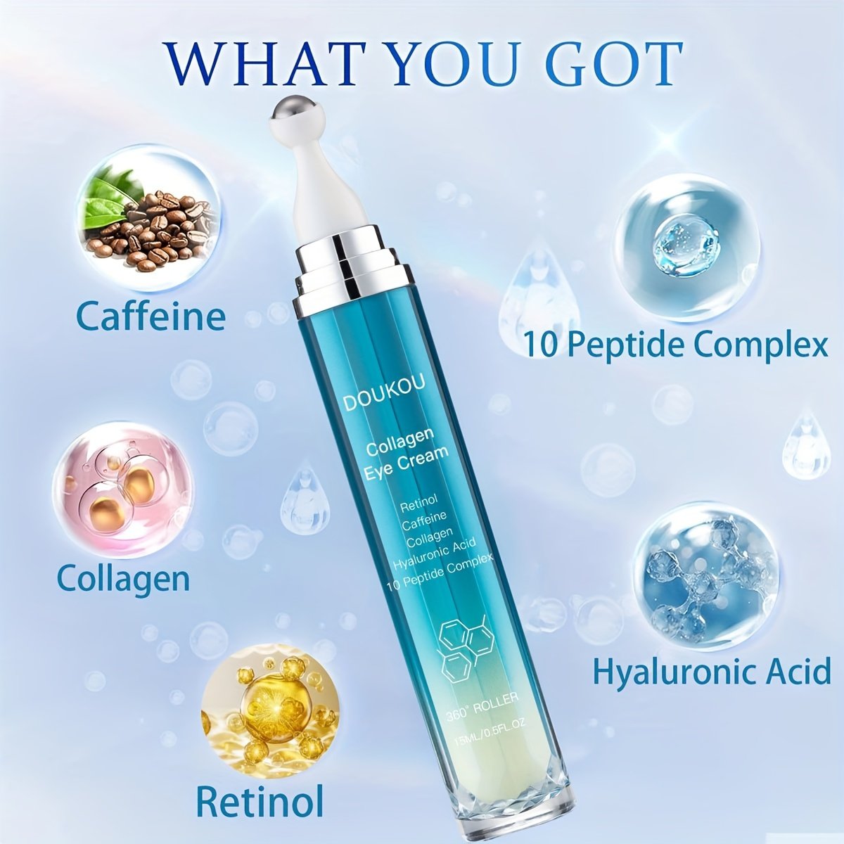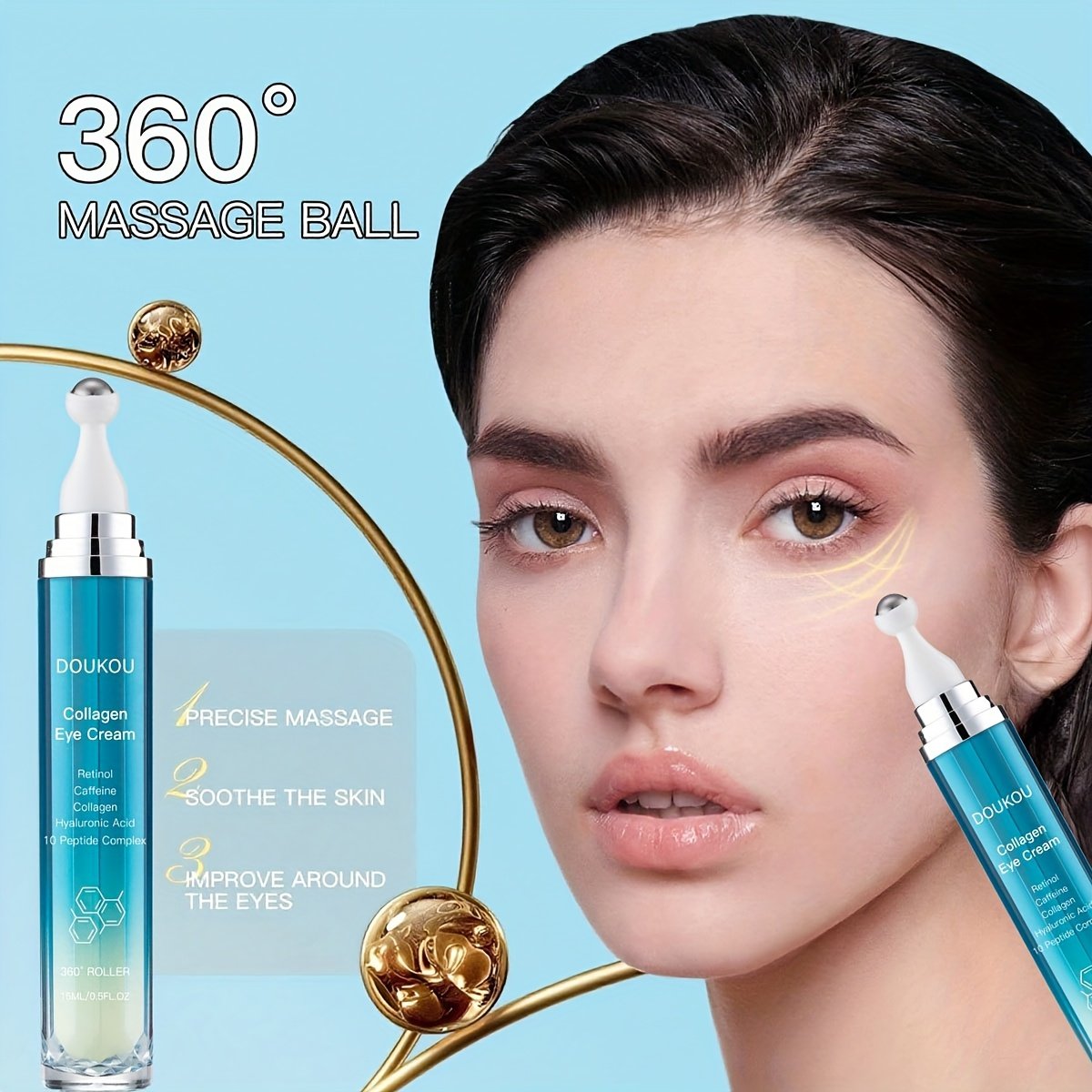 Eye Cream, Eye Serum, with Retinol, Caffeine, Collagen, Hyaluronic Acid, 10 Peptide Complex, 360°Roller Applicator, Smoothing, Tightening, Suitable Swollen Eye And Dark Circles, The Look Of Dulldark Circles Wrinkles Appear, Women Gifts, 0.5oz, Eye Tightening Cream, Dark Circle, Smoothing Formula, Nongreasy Texture, Fastabsorbing Texture, Retinol Serum, Collagen Boost, Peptide Complex Formula, Eye Lifting, Eye Cream For Dark, Eye Cream Under, Dark Circle Under Eye, Eye Serum, Under Eye