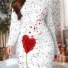 Women’s 3D Printed Dress – Full-Body Shaping Waist-Cinching Long Sleeve Bodycon Dress, Machine Washable All-Season Party Dress for Christmas, Valentine’s Gift, Thanksgiving (Non- Round Neck) – Year-Round Wear