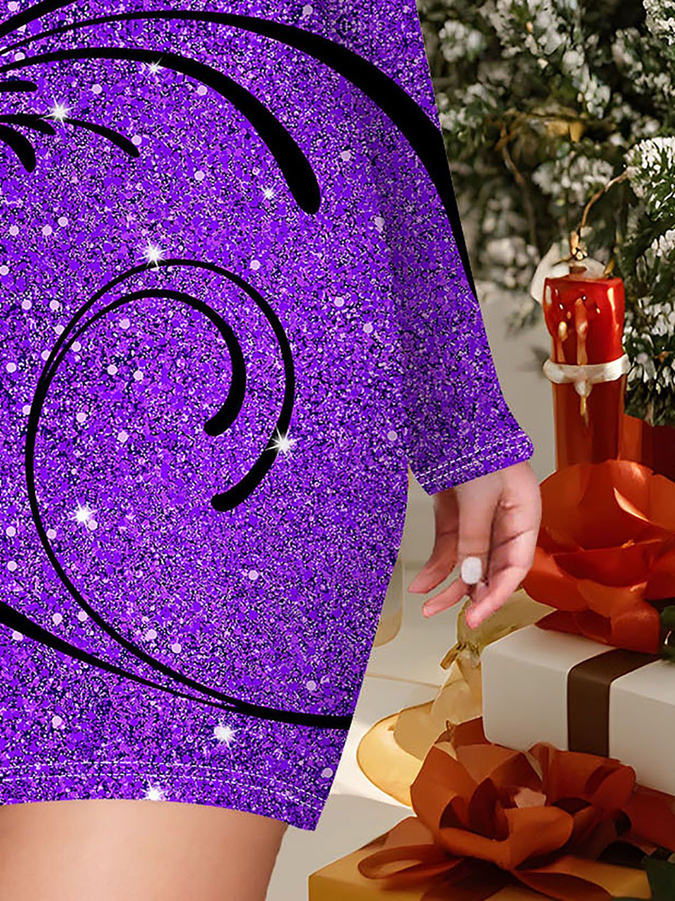 Women’S Elegant Retro 3D All-Over Print Mermaid Dress – Long Sleeve Round Neck H-Line Silhouette with Purple & Black Floral Pattern, Mid-Length Flowy Skirt – All-Season Party & Everyday Formal Attire – Birthday/Halloween/Christmas Gift – Comfortable & Flattering Fit (No Waistband/No Padding) – Stylish Party Outfit for Women – Sexy Vintage-Inspired 3D Full Body Print, Hip-Wrapped Design, Straight Hem, Loose Fit, Year-Round Wear, Perfect for Special Occasions & Casual Outings, Purple