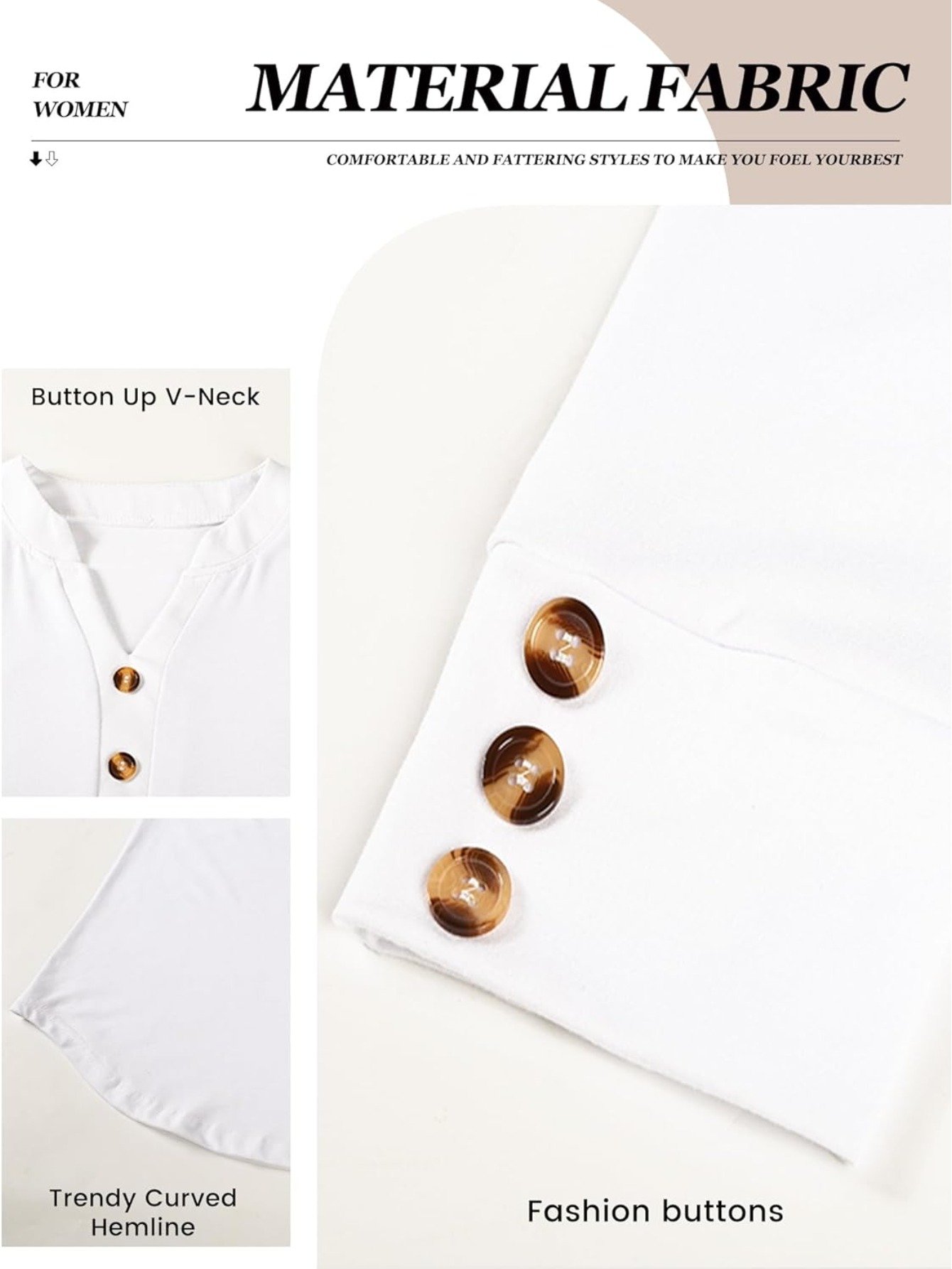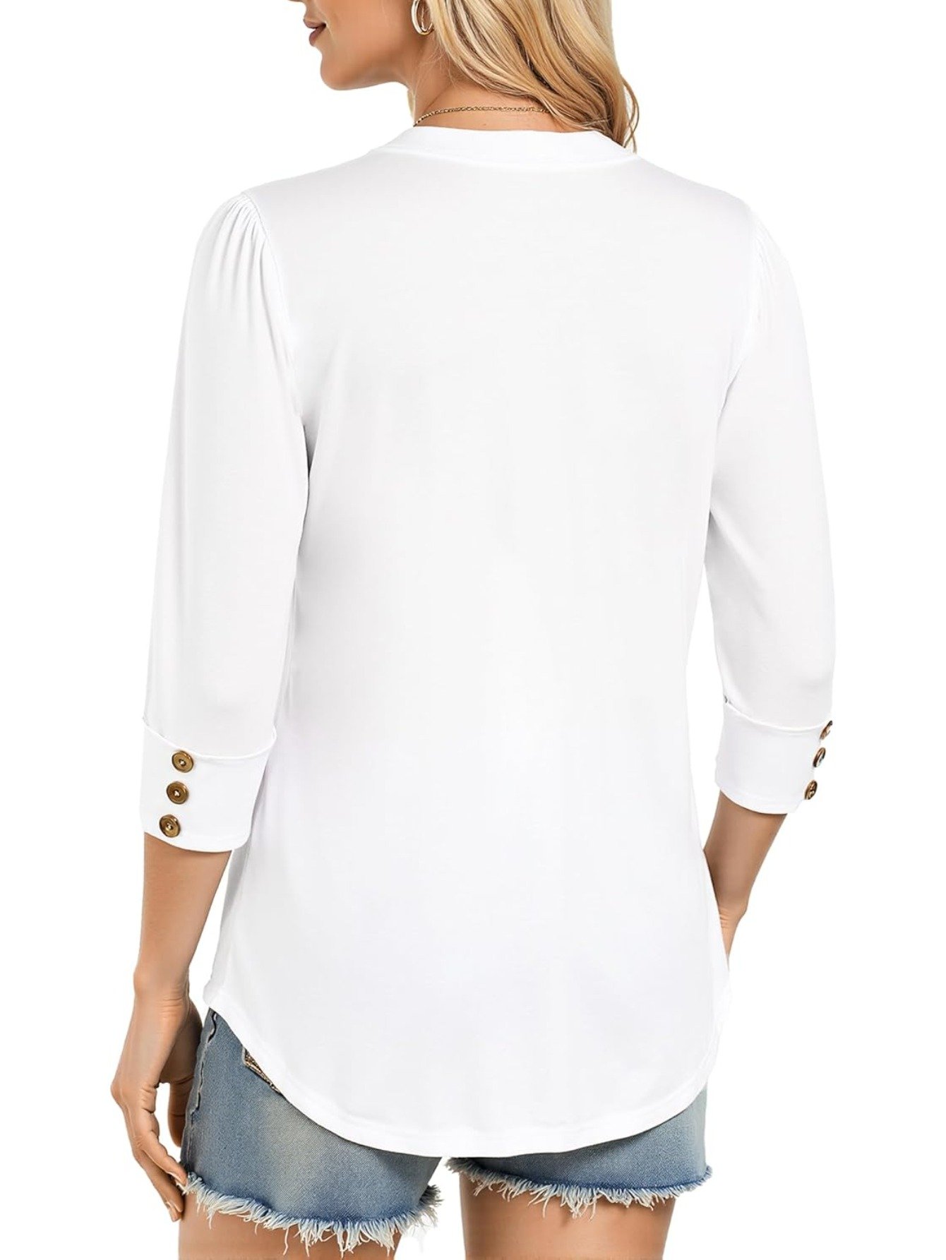 Women’S Elegant V-Neck Puff Sleeve 3/4 Sleeve Tunic Top with Button Cuffs – Long Sleeve Blouse, Button Front Closure, Solid Color, Regular Fit for Work & Casual Attire