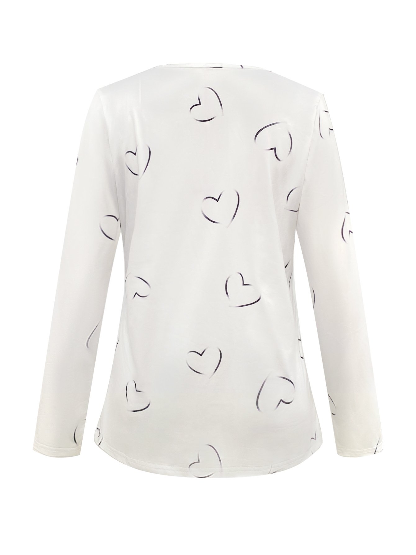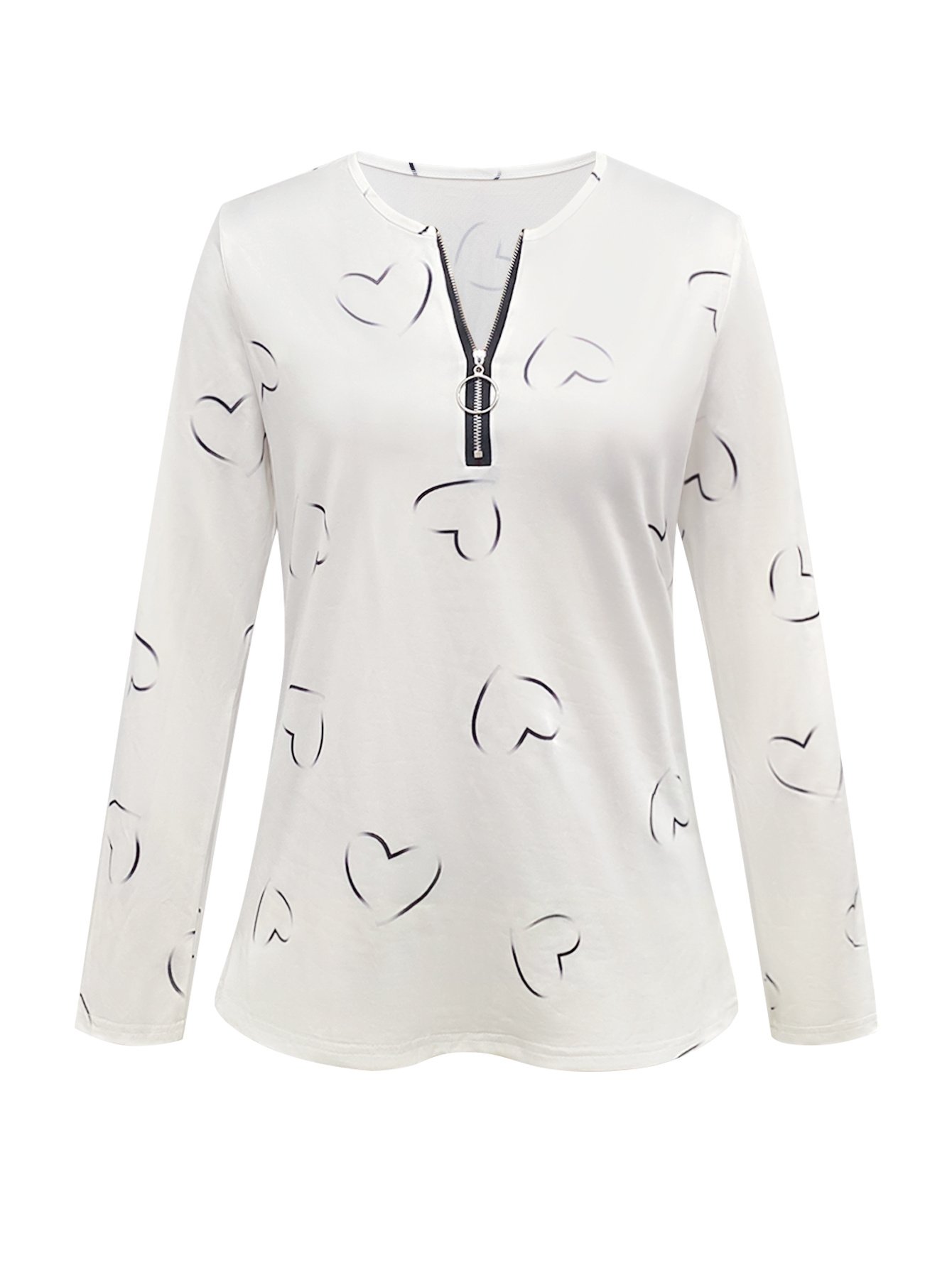 Women’s joyful Face & Heart Print Semi-Zip V-Neck Blouse – Long Sleeve Casual Layering Top, Machine Washable Fall/Winter Wardrobe Essential for, Commute & Everyday Outfits – Cozy Seasonal T-Shirt