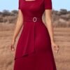 Women’s Short-sleeve Slim-fit Dress, Featuring a High-waisted Cinched-in Design, Double-row Decorative Button Detailing, and an A-line Silhouette That Flatters the Figure. Elegant and Sophisticated, Ideal for Commuting, Parties, and Casual Attire