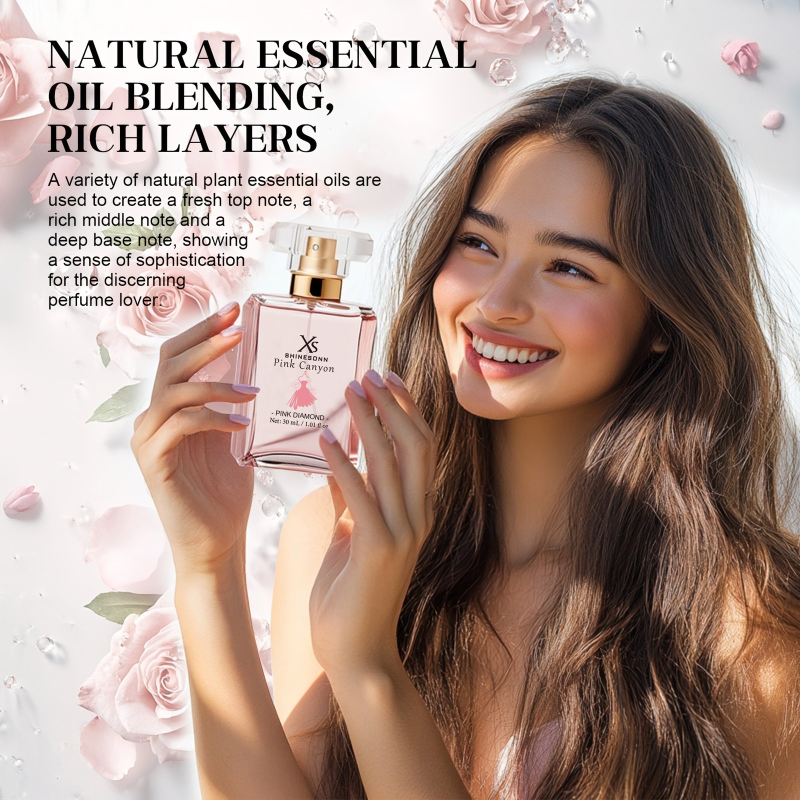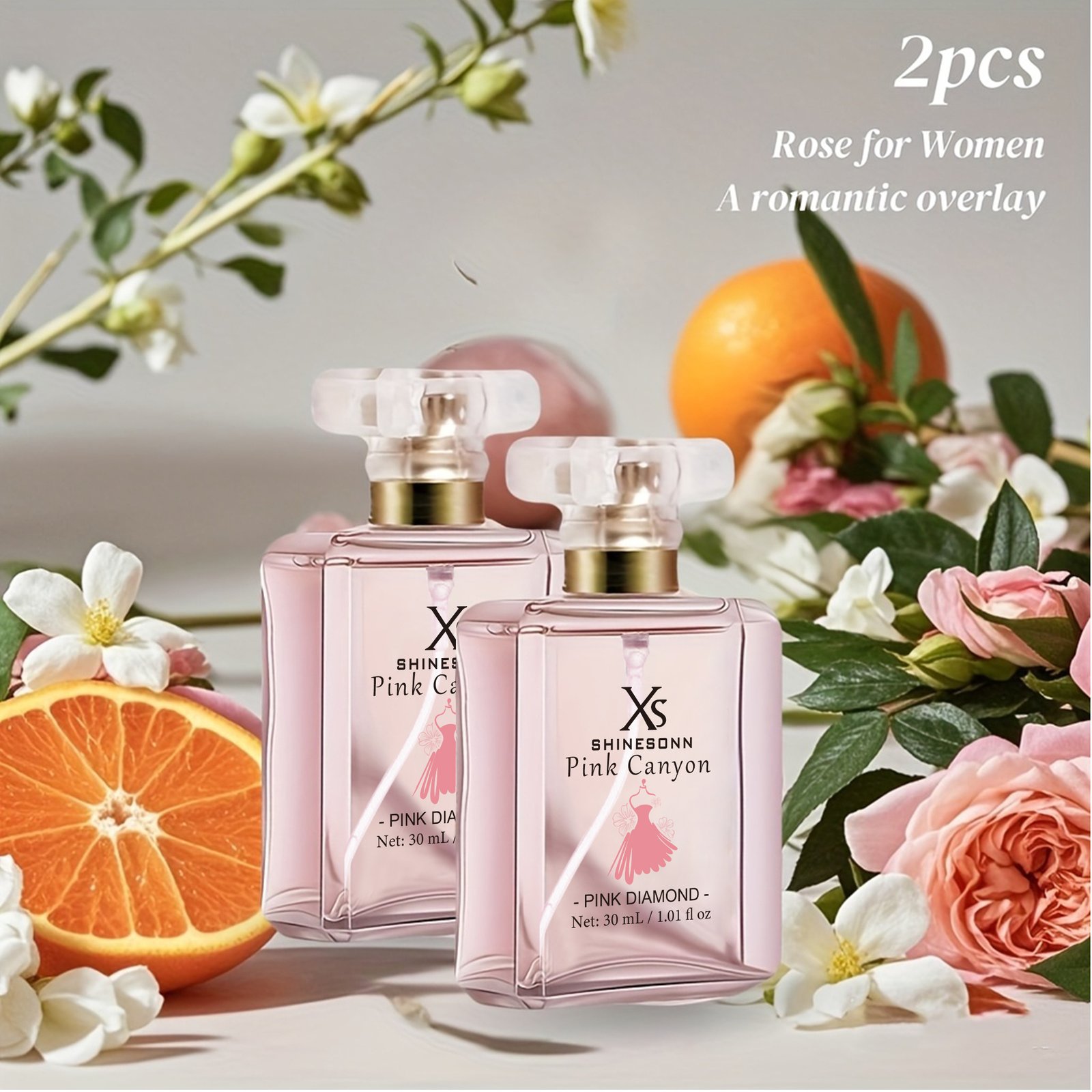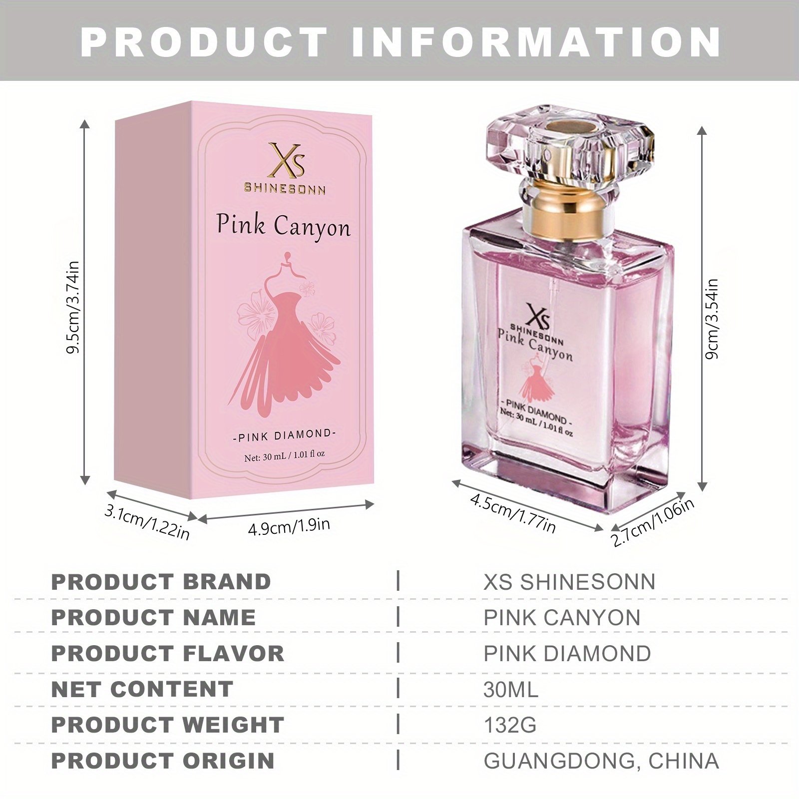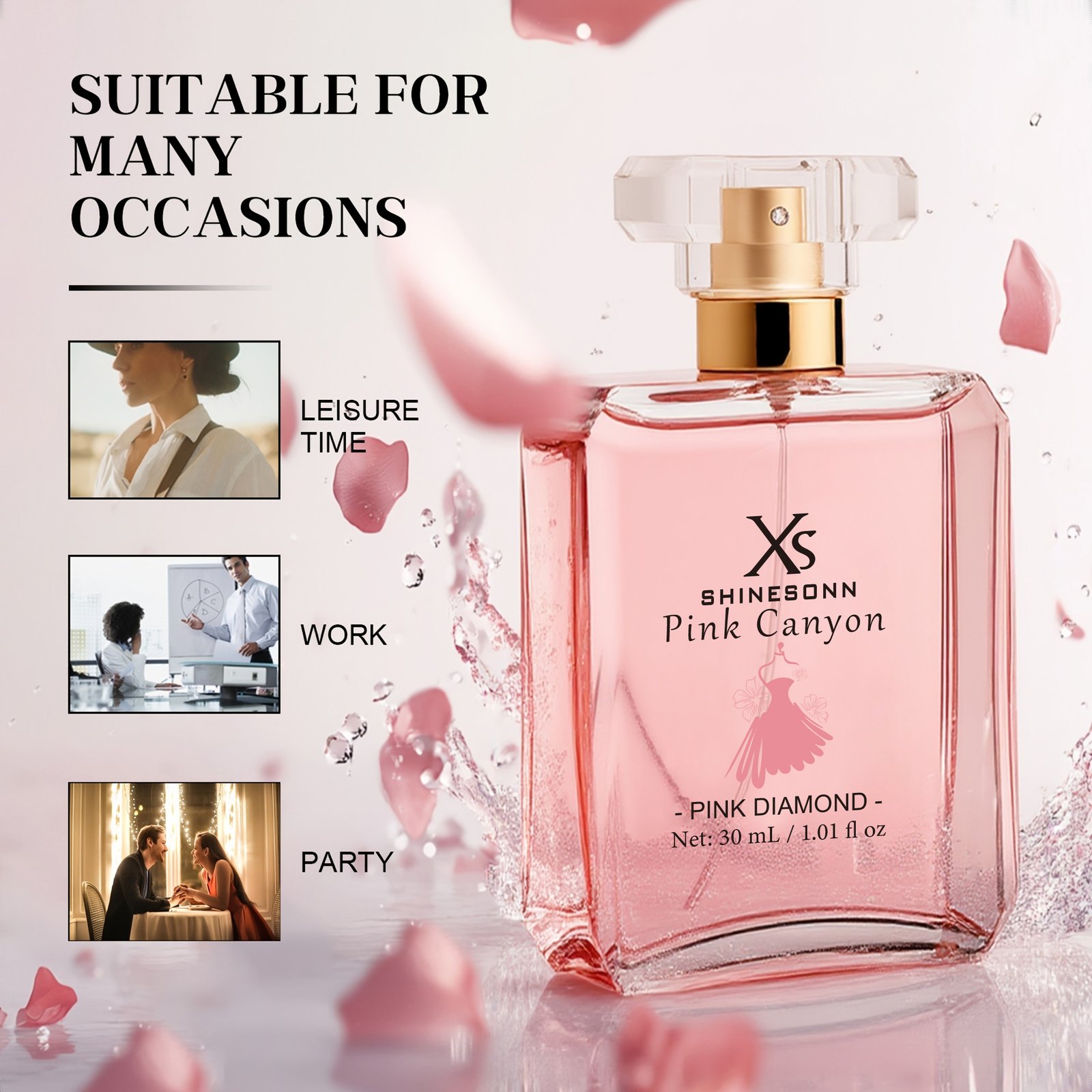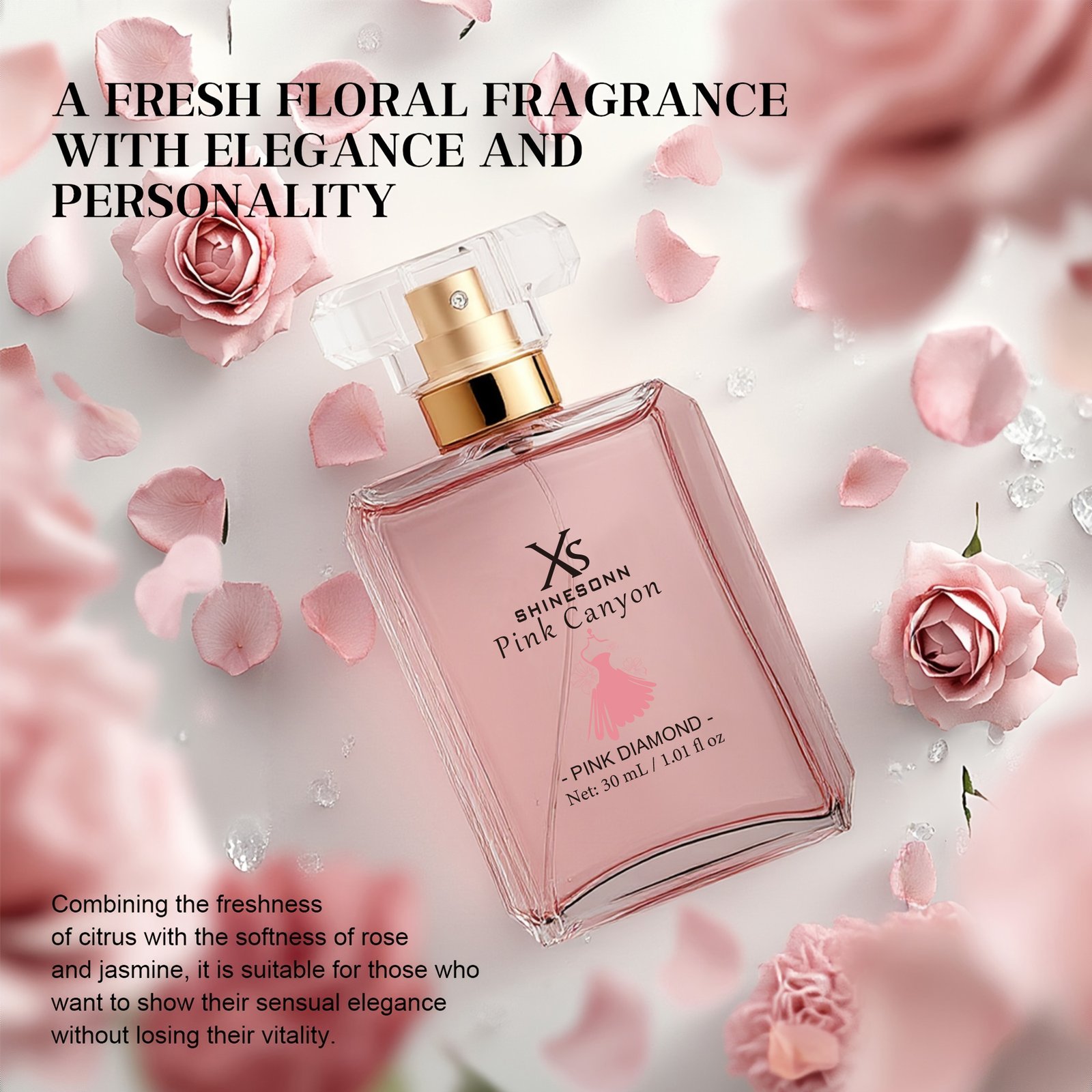 XS SHINESONN Pink Eau de Parfum for Women- Sleek -Capped Flask, Soft Pink Gradient Bottle,