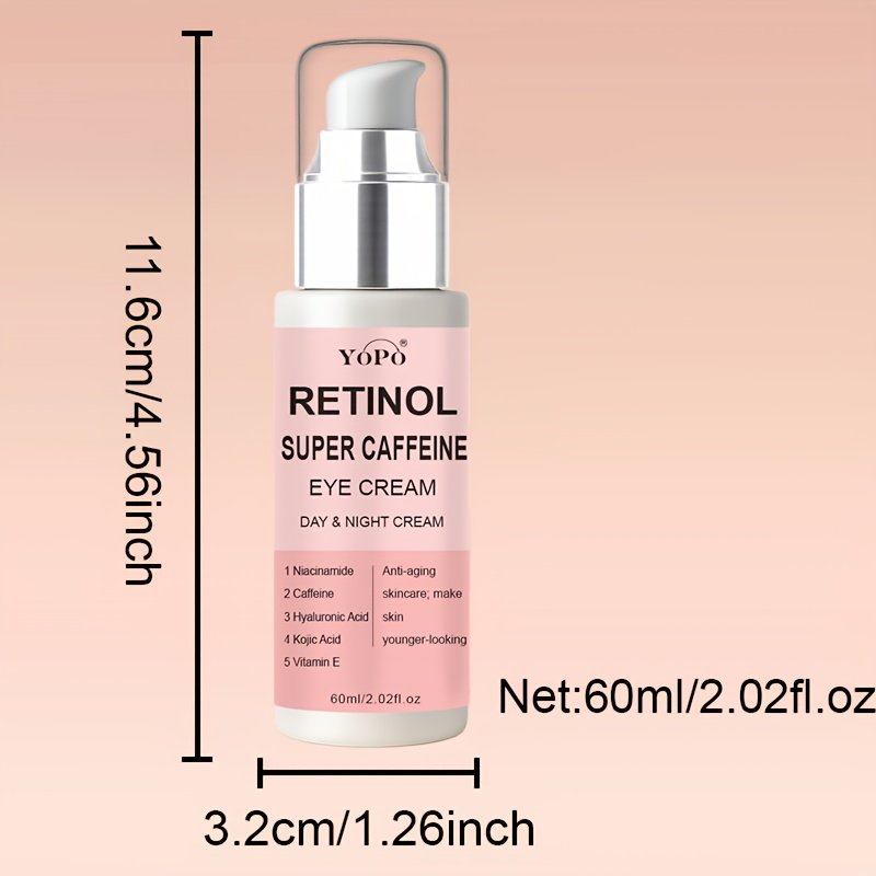 YOPO RETINOL SUPER CAFFEINE Eye Cream with Kojic Acid & Niacinamide | Diminishes Aging Signs, Lifts Eye Contour, Deeply Hydrates, Non-Greasy, Quick-Absorbing, Suitable for All Skin Types, Day & Night Use, 60ml/2.02fl.oz, Daily Eye Care Essential