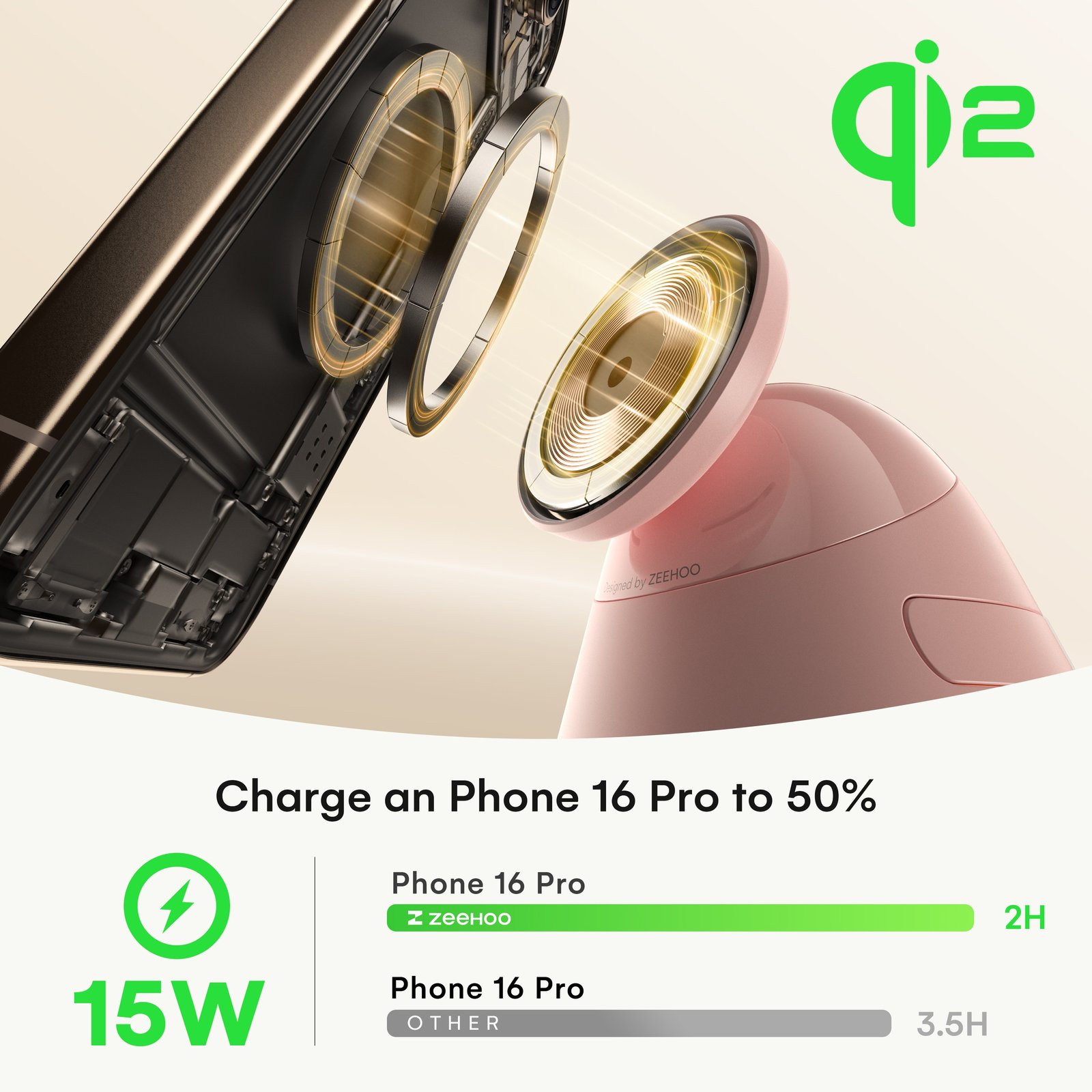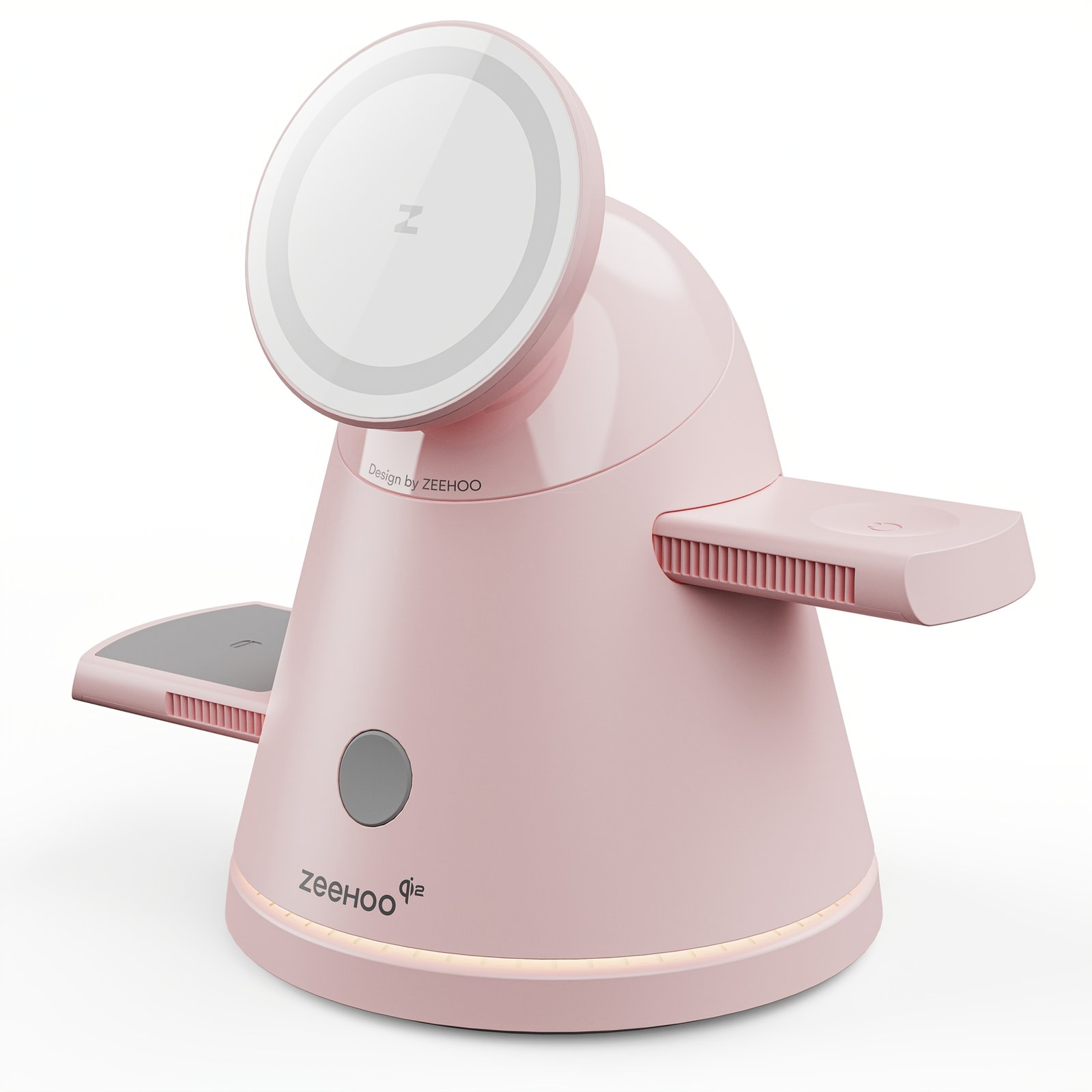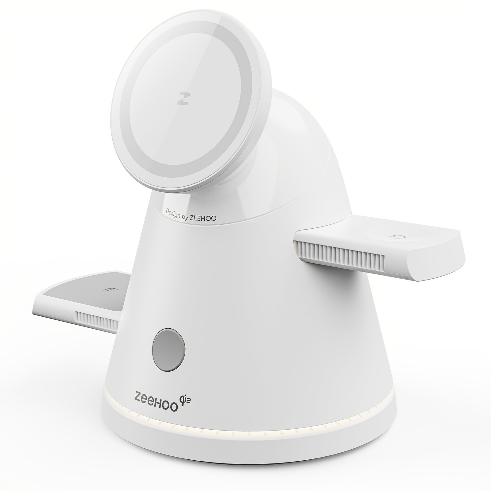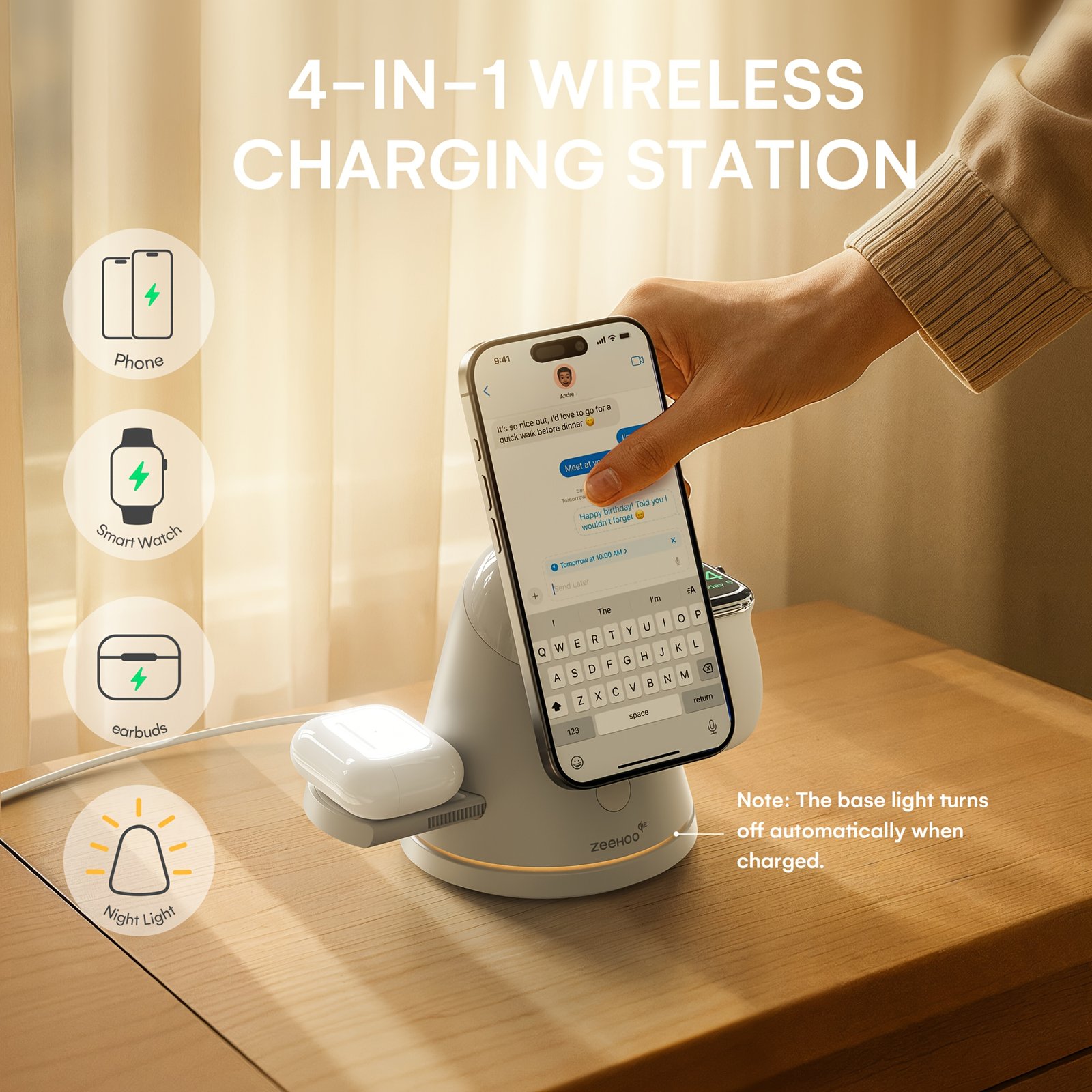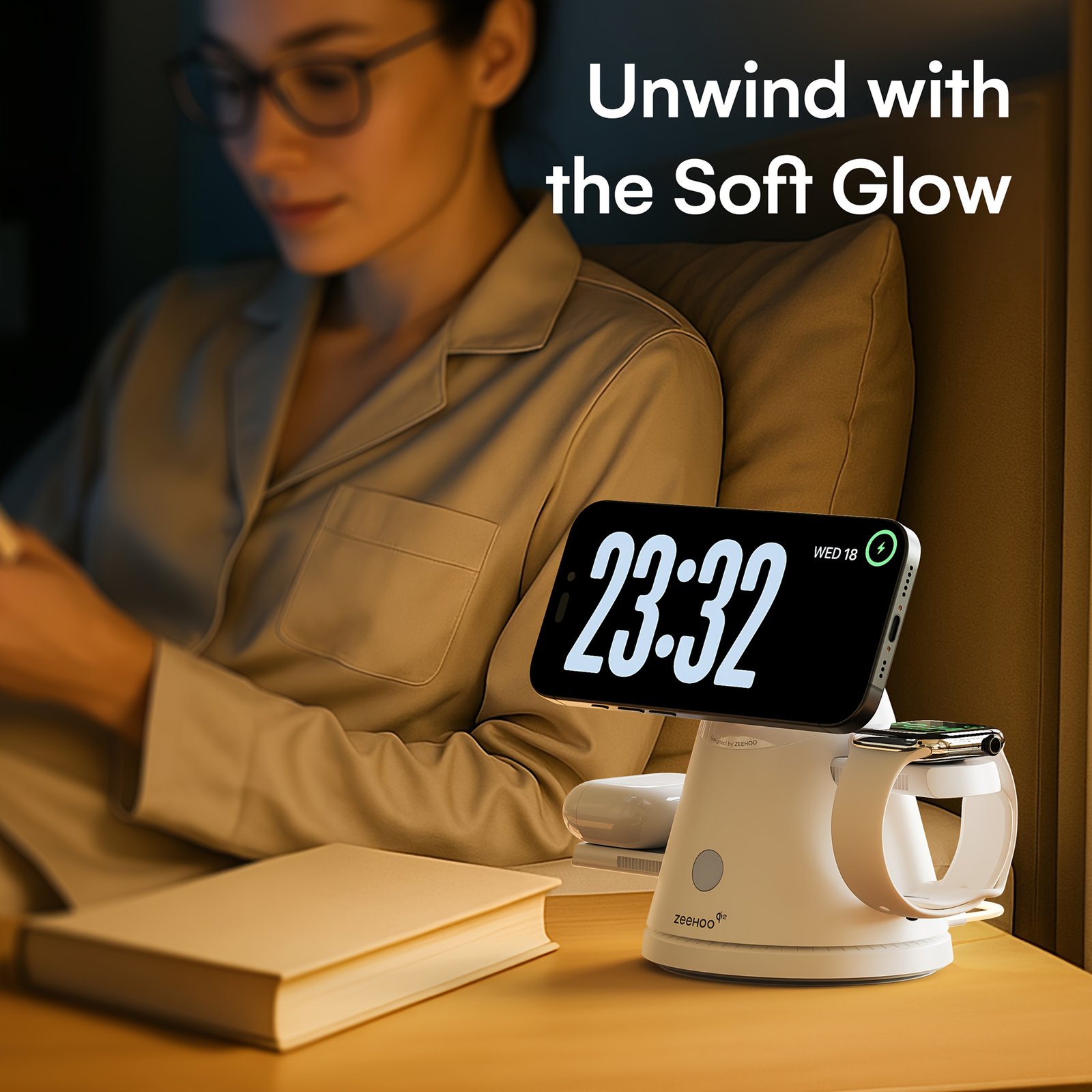 ZEEHOO LuminoCore 4in1 Wireless Charging Station | Magnetic Charger with Dimmable Light, Qi2 15W Rotating Phone Stand for Phone, Earbuds, – USB Type-C Fast Charging