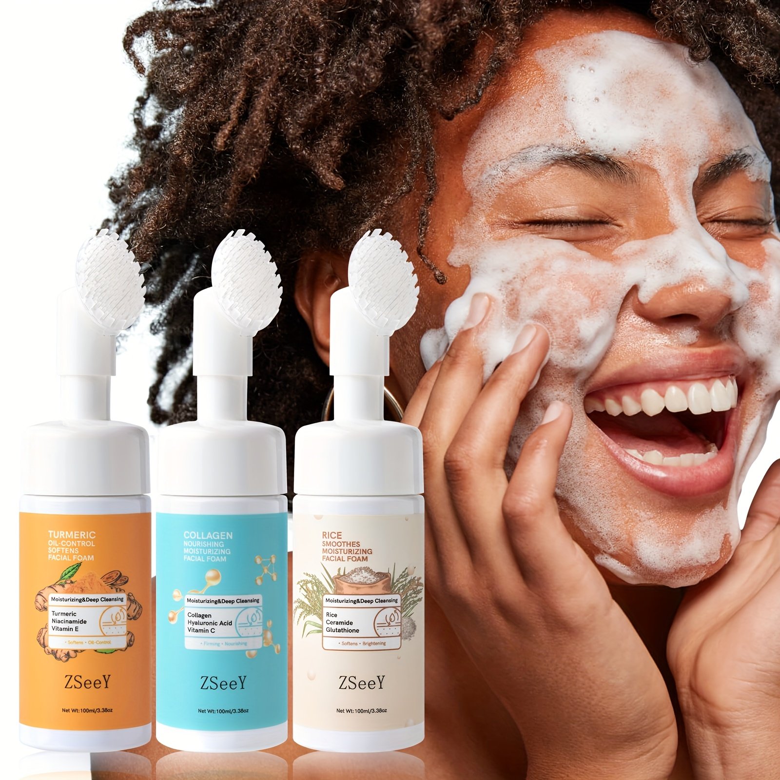 ZSEEY Large Capacity Turmeric Cleansing Foam Face Wash with Collagen, Gentle Deep Cleansing Bubble Mousse for Oil and Dirt Removal, Refreshing Rice Essence Foam Bar, Face Cleansing Foam, Face Cleansing Gel, Face Cleansing Set, Face Cleanser, Face